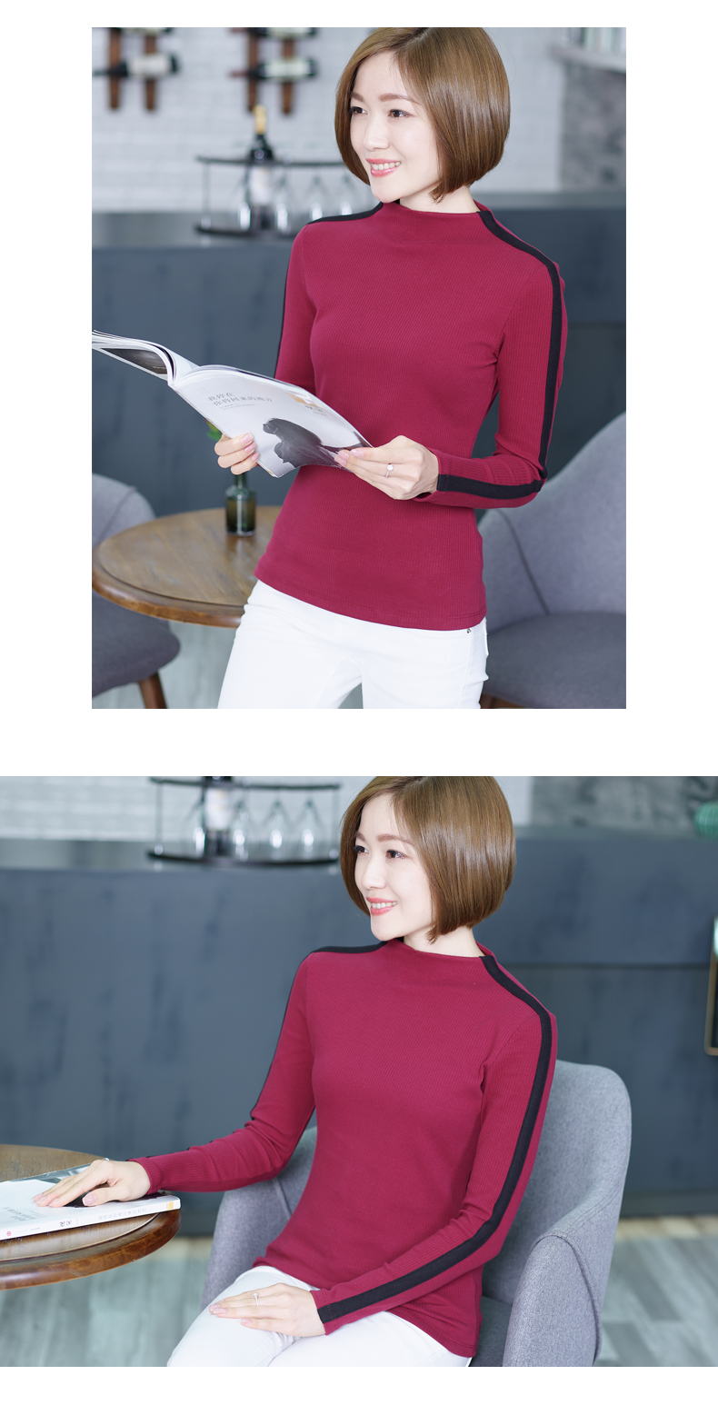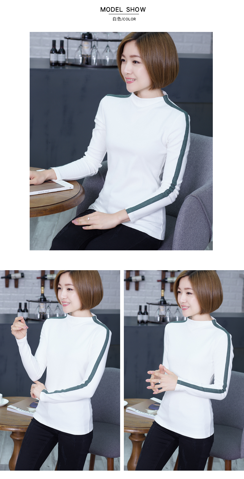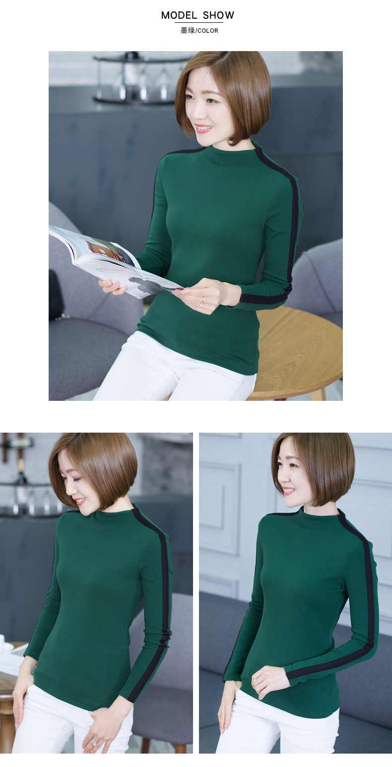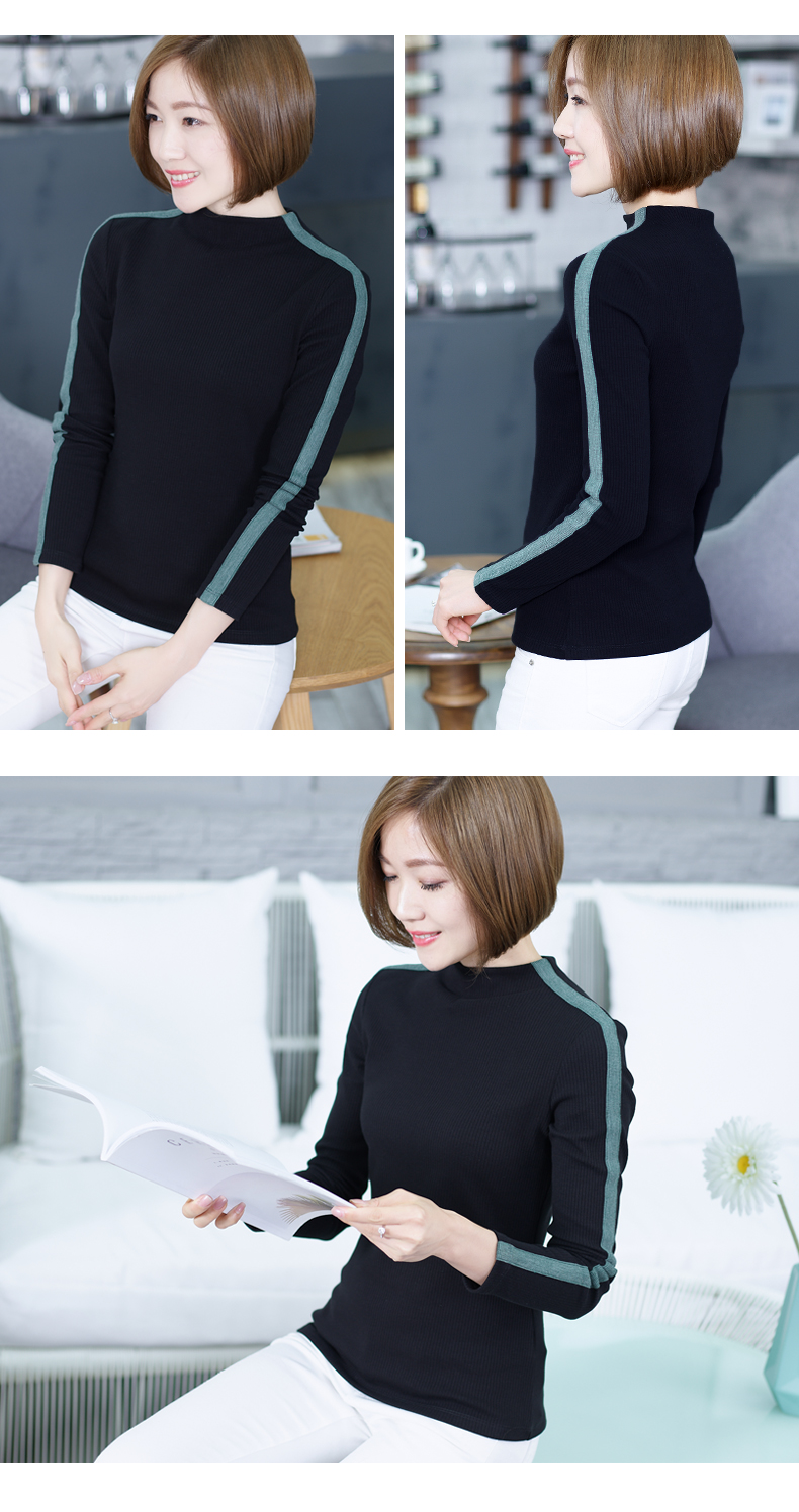 2019新款女裝半高領黑色長袖T恤上衣服秋冬裝打底衫外穿小衫秋裝1入