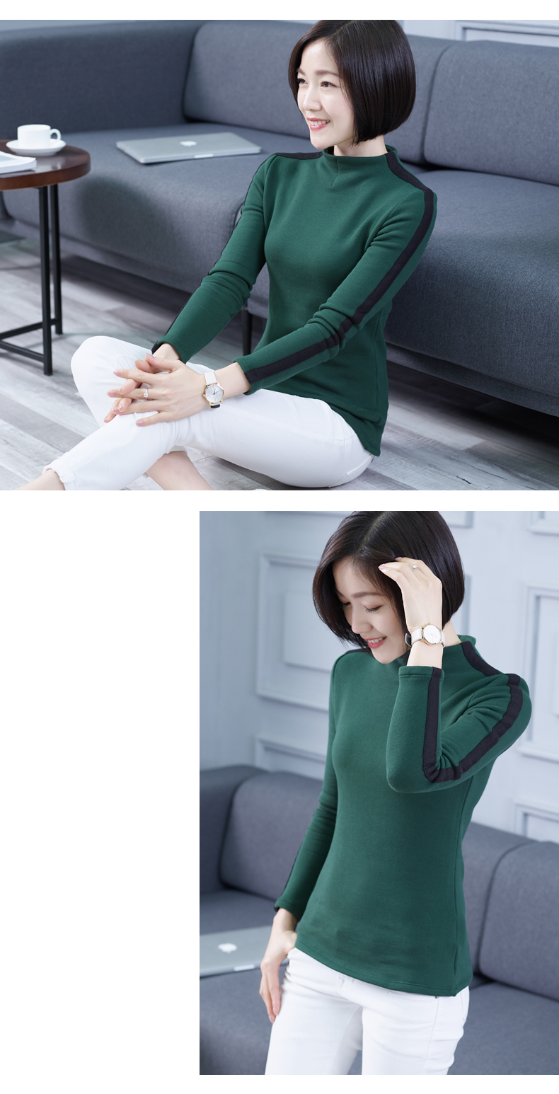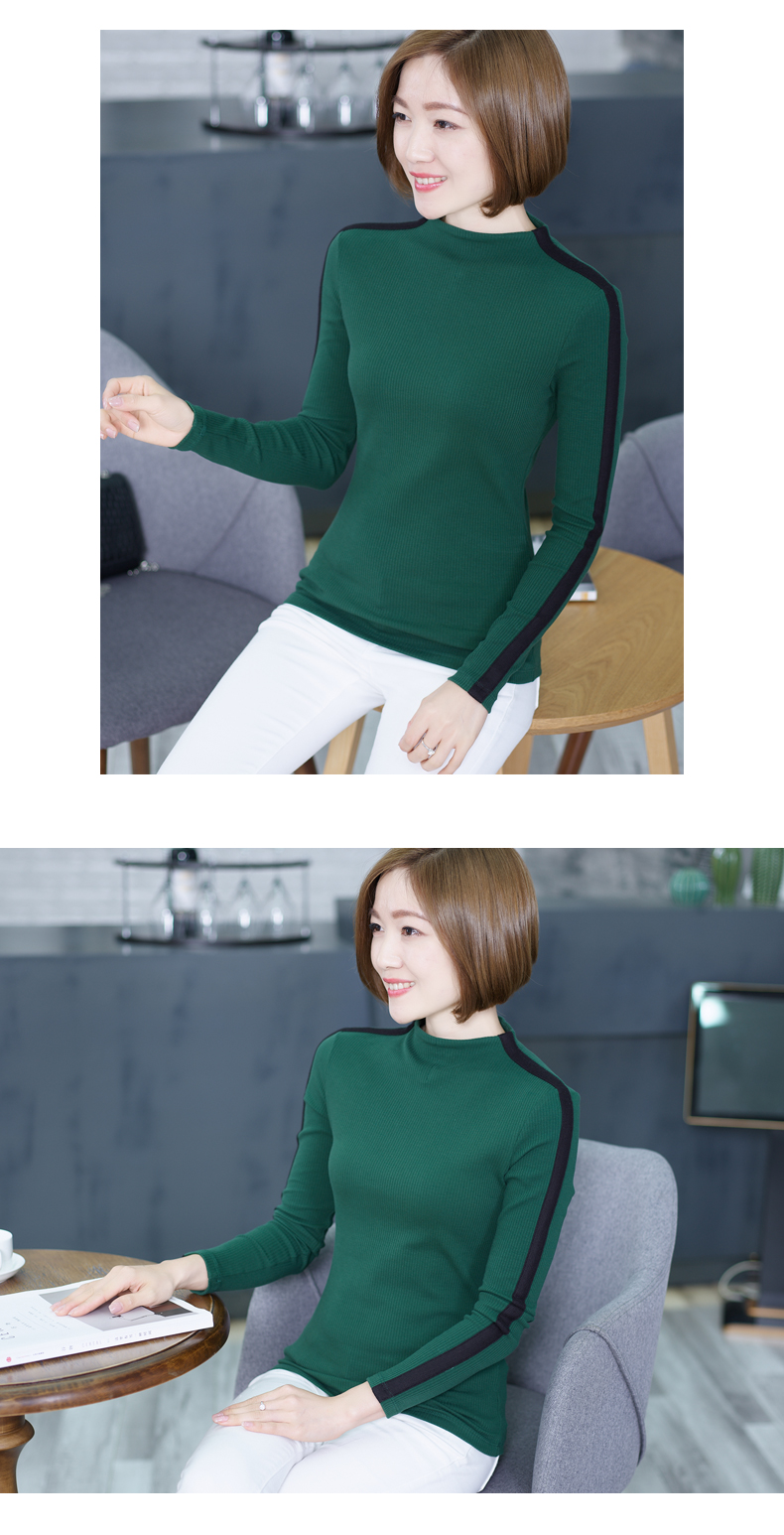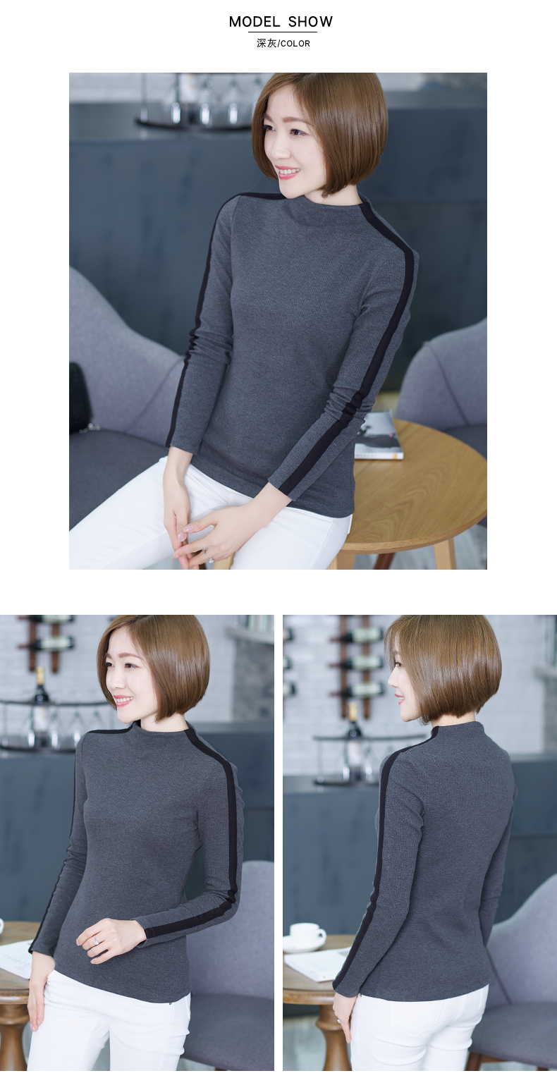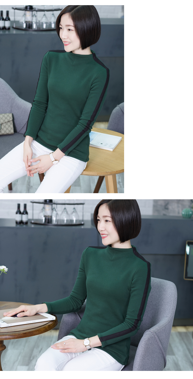2019新款女裝半高領黑色長袖T恤上衣服秋冬裝打底衫外穿小衫秋裝1入