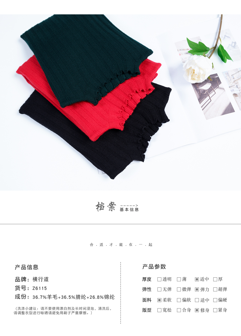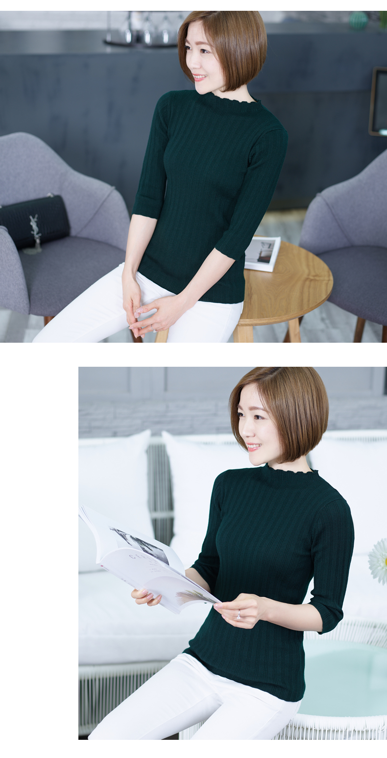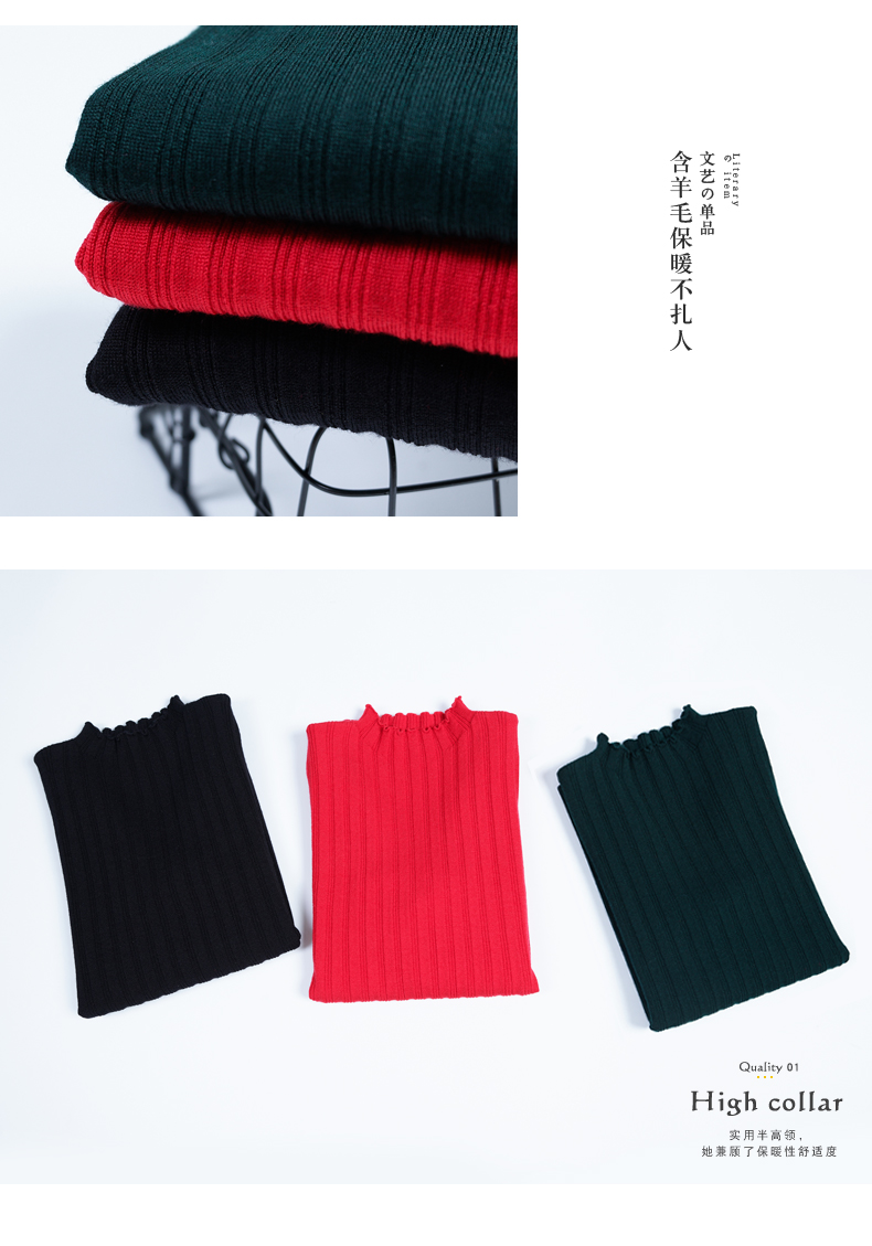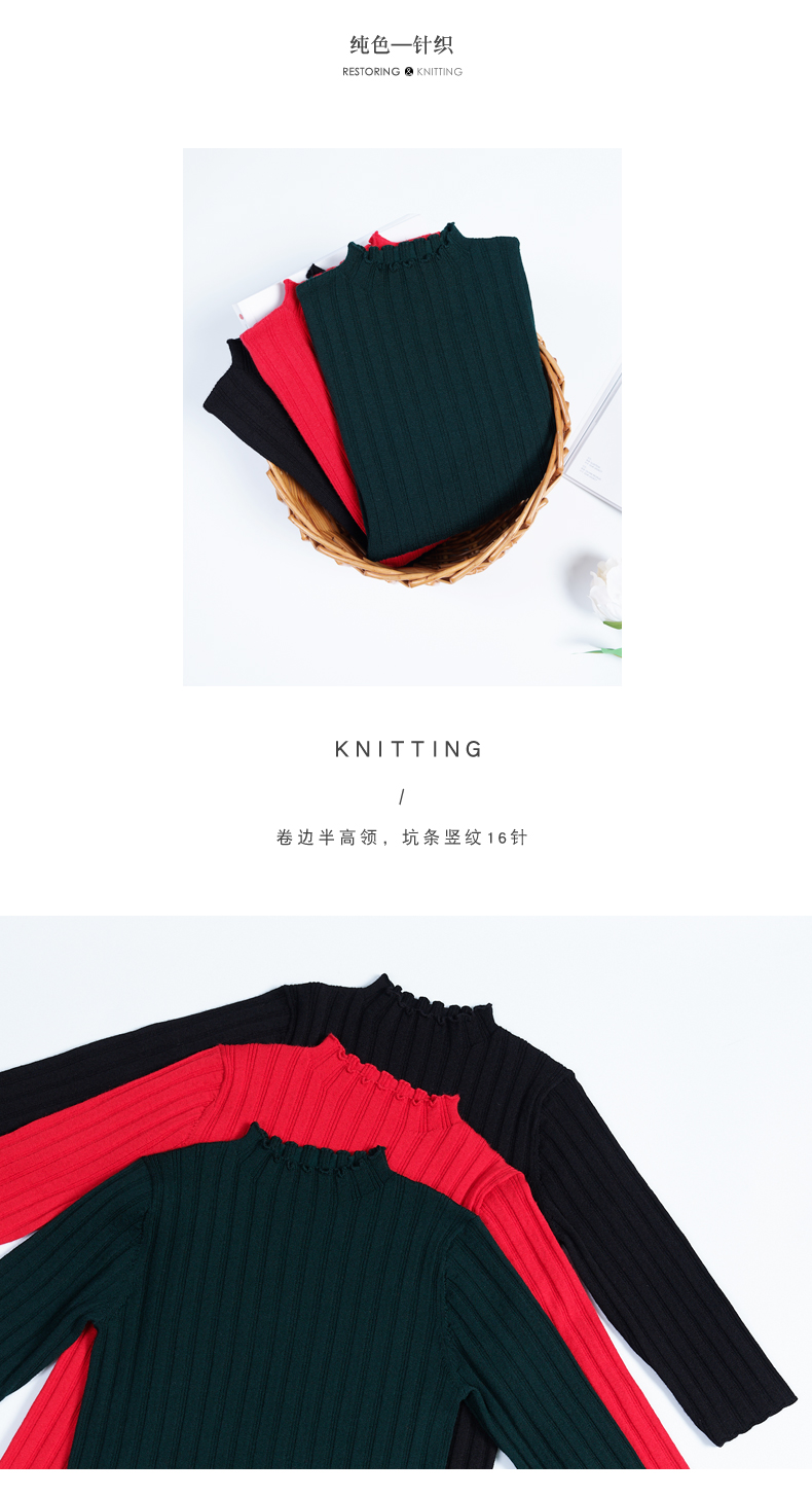 2019秋季半高領中袖針織衫女黑色上衣羊毛衫七分袖打底衫套頭毛衣1入
