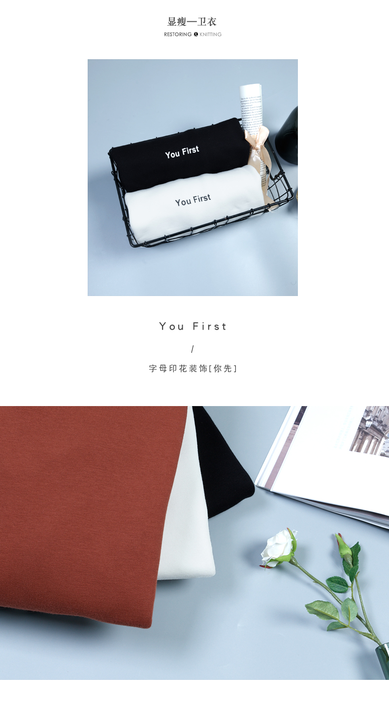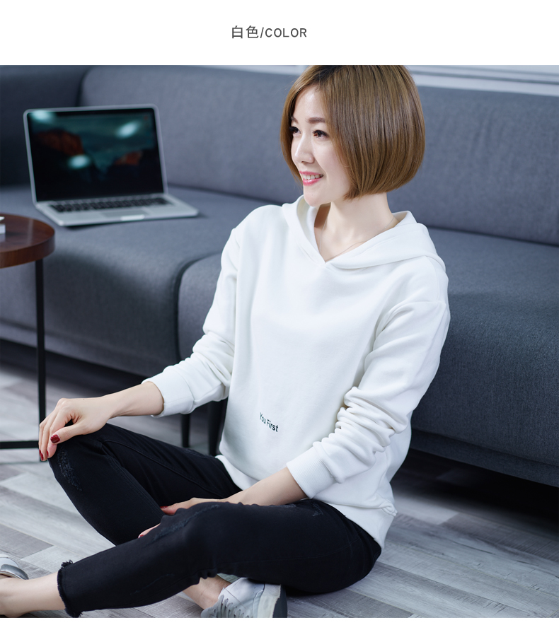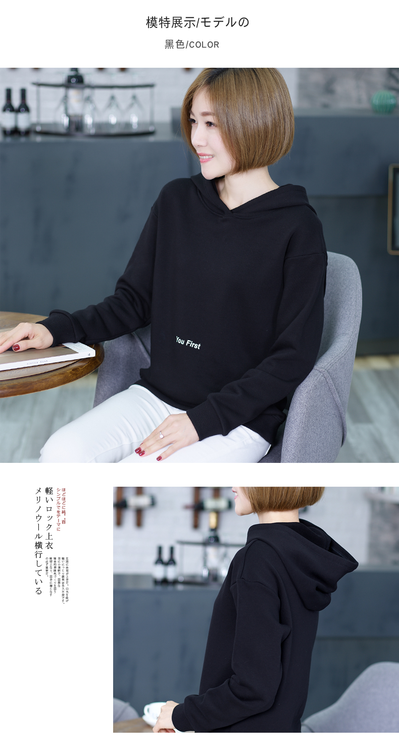 2019秋裝加厚韓版大碼女裝休閑寬松連帽衛衣字母印花長袖上衣服1入