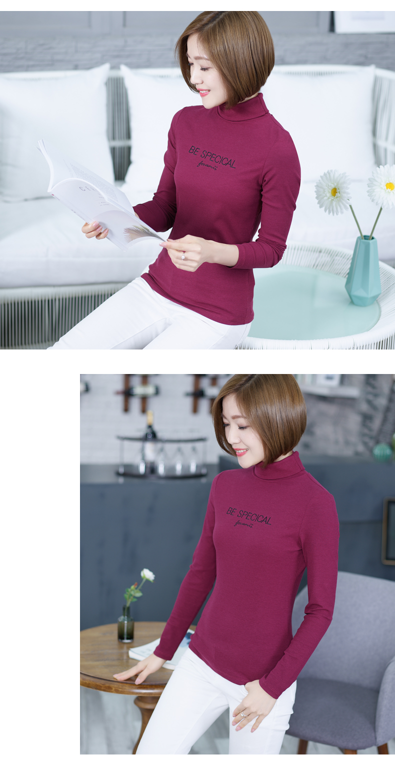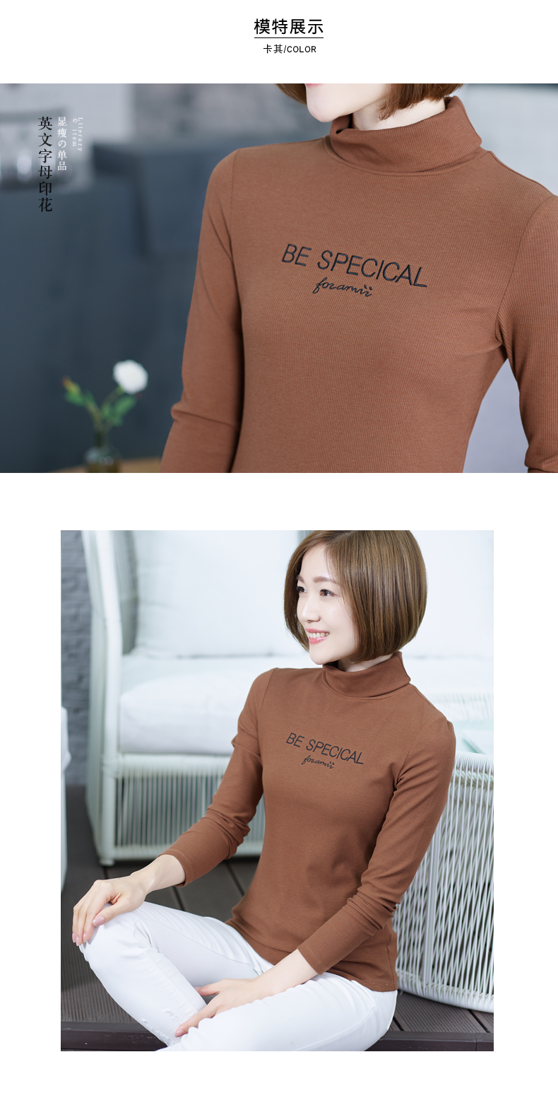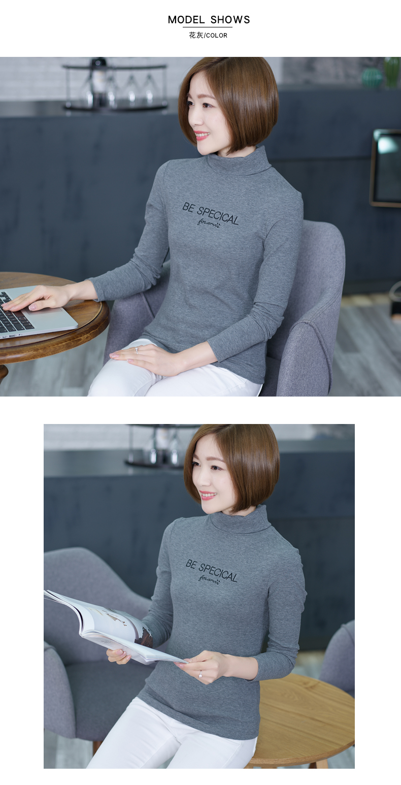 高領打底衫女裝2019秋裝字母黑色長袖t恤韓版上衣刺繡體恤小衫女1入