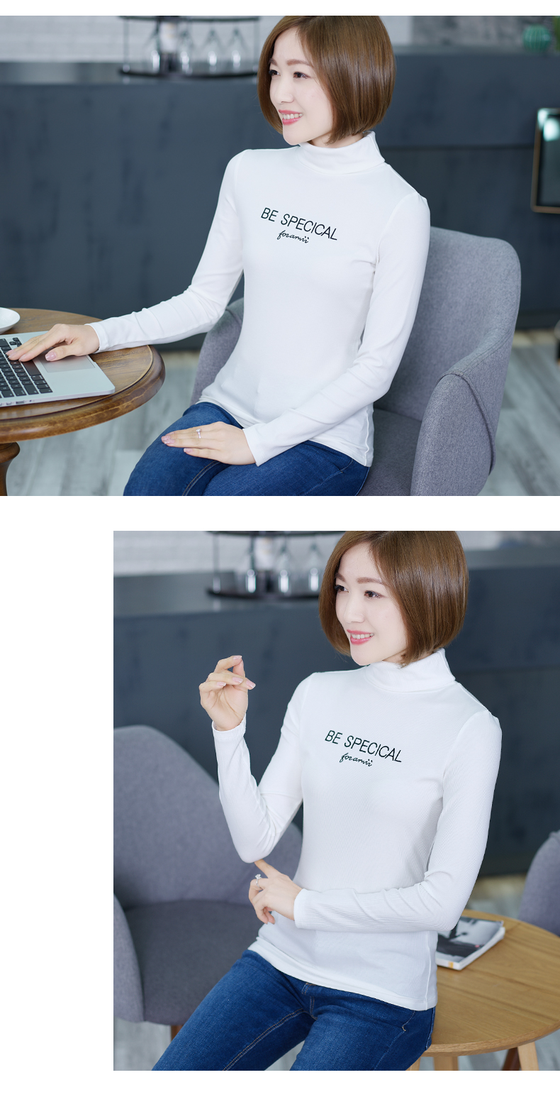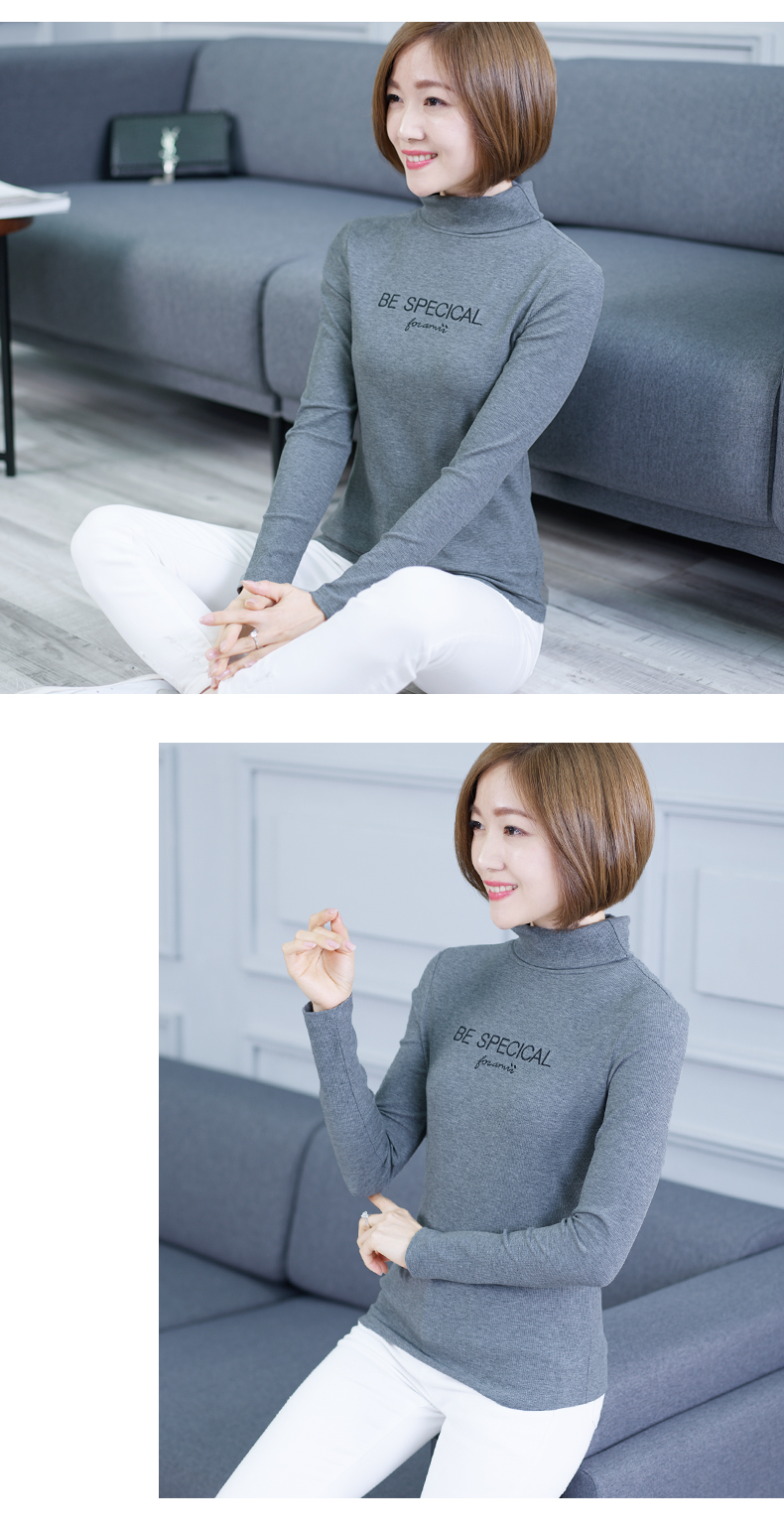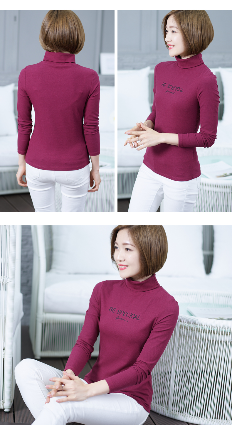 高領打底衫女裝2019秋裝字母黑色長袖t恤韓版上衣刺繡體恤小衫女1入