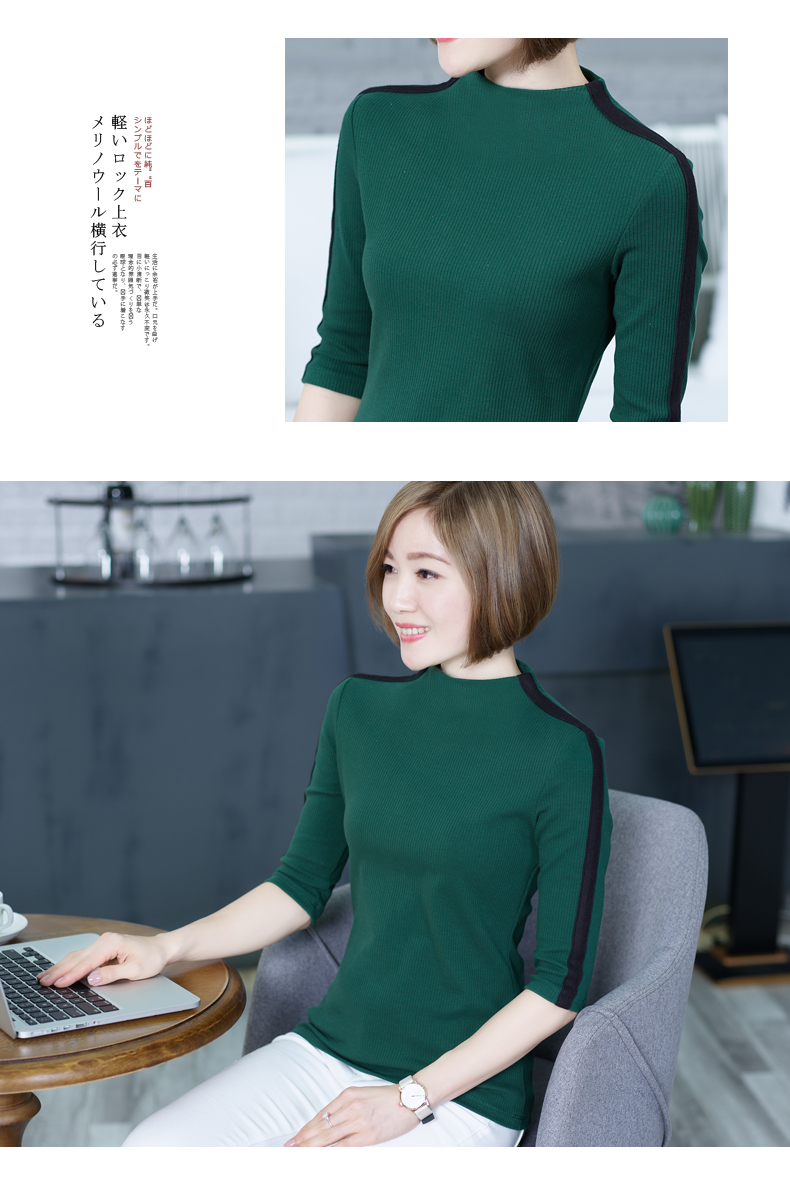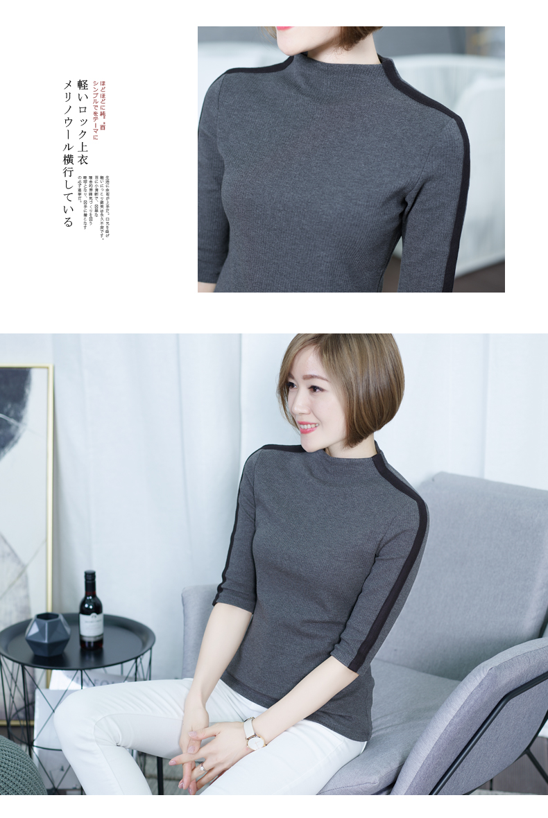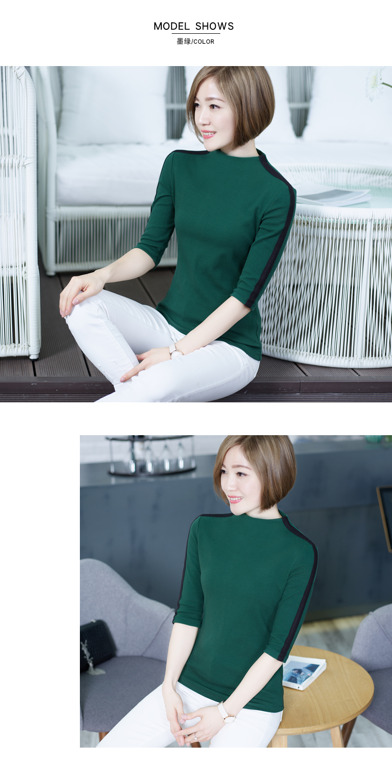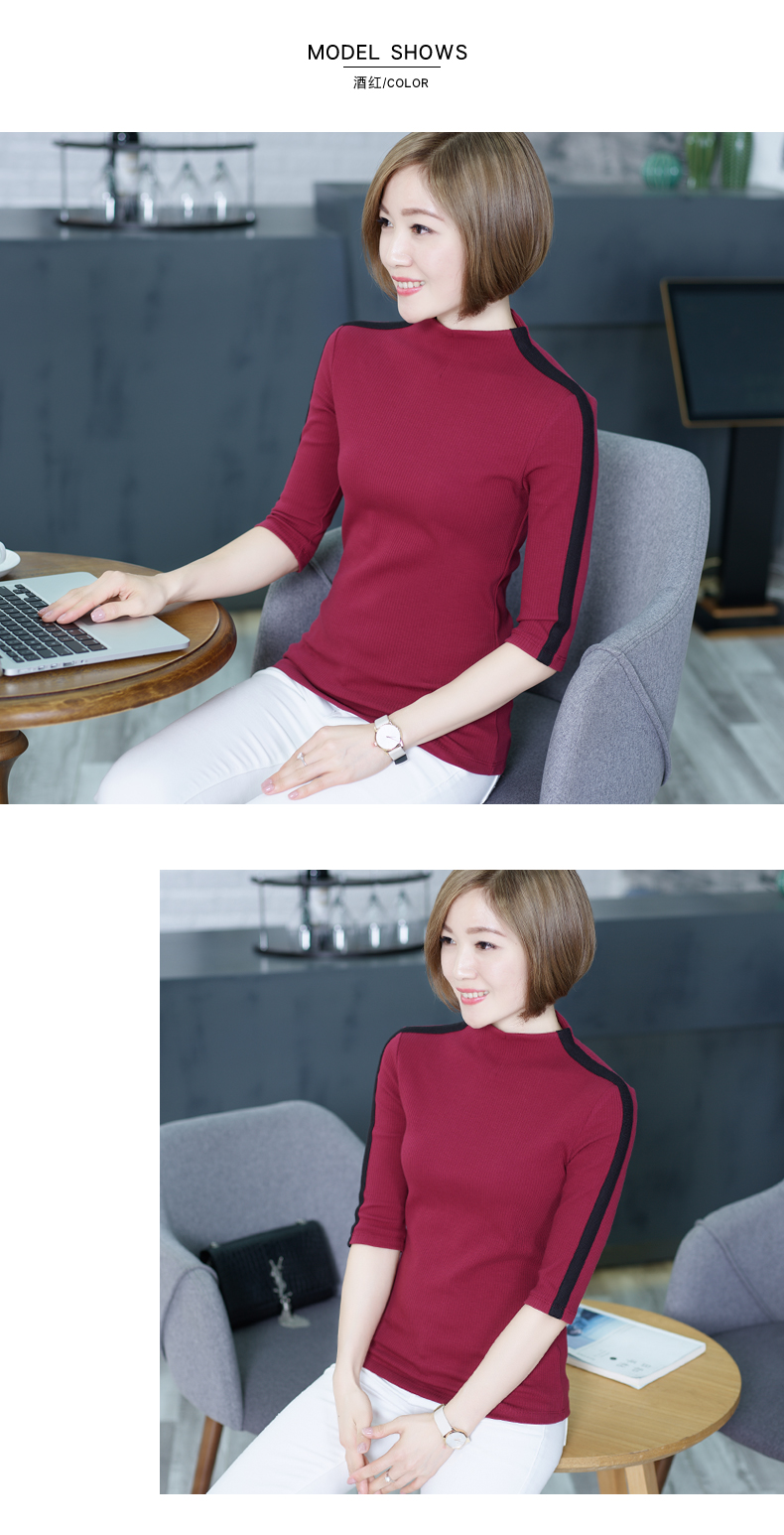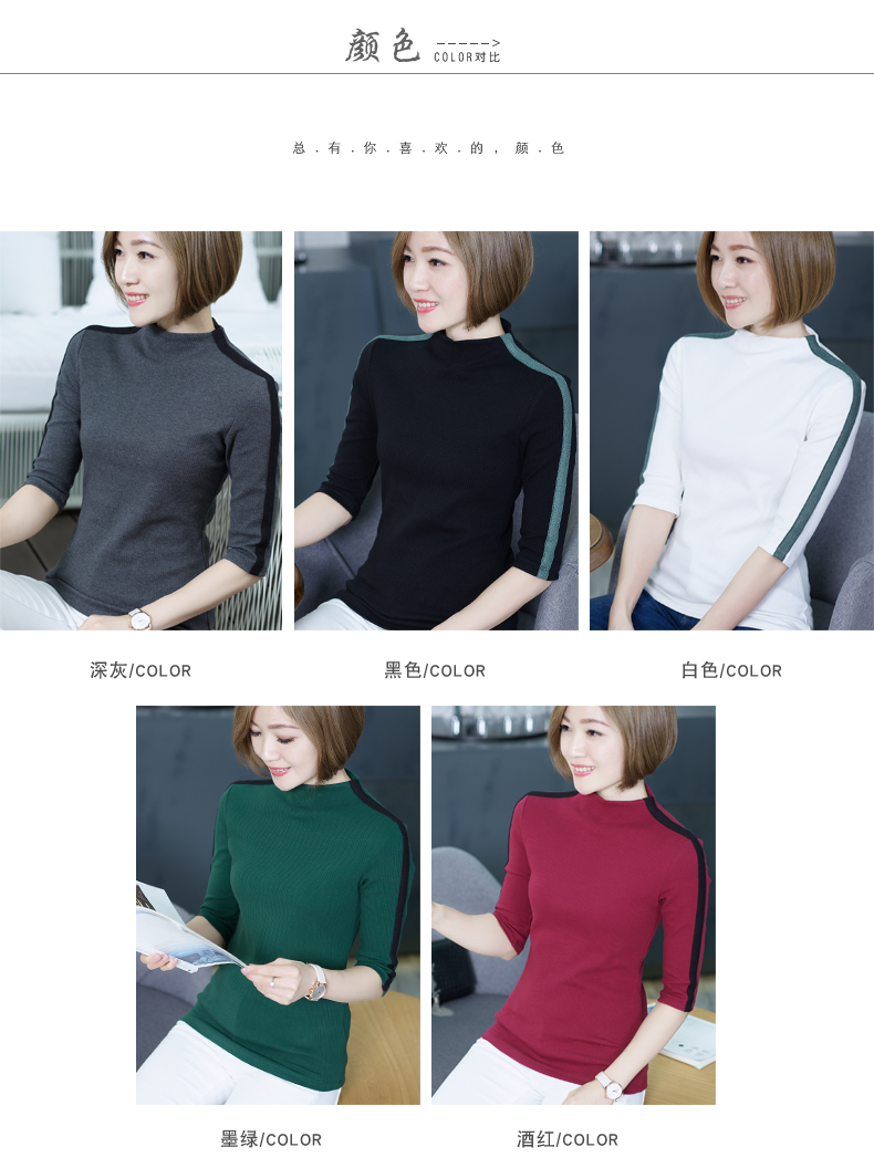 2019秋裝新款半高領七分袖打底衫女士秋款體恤中袖女裝上衣服t恤1入