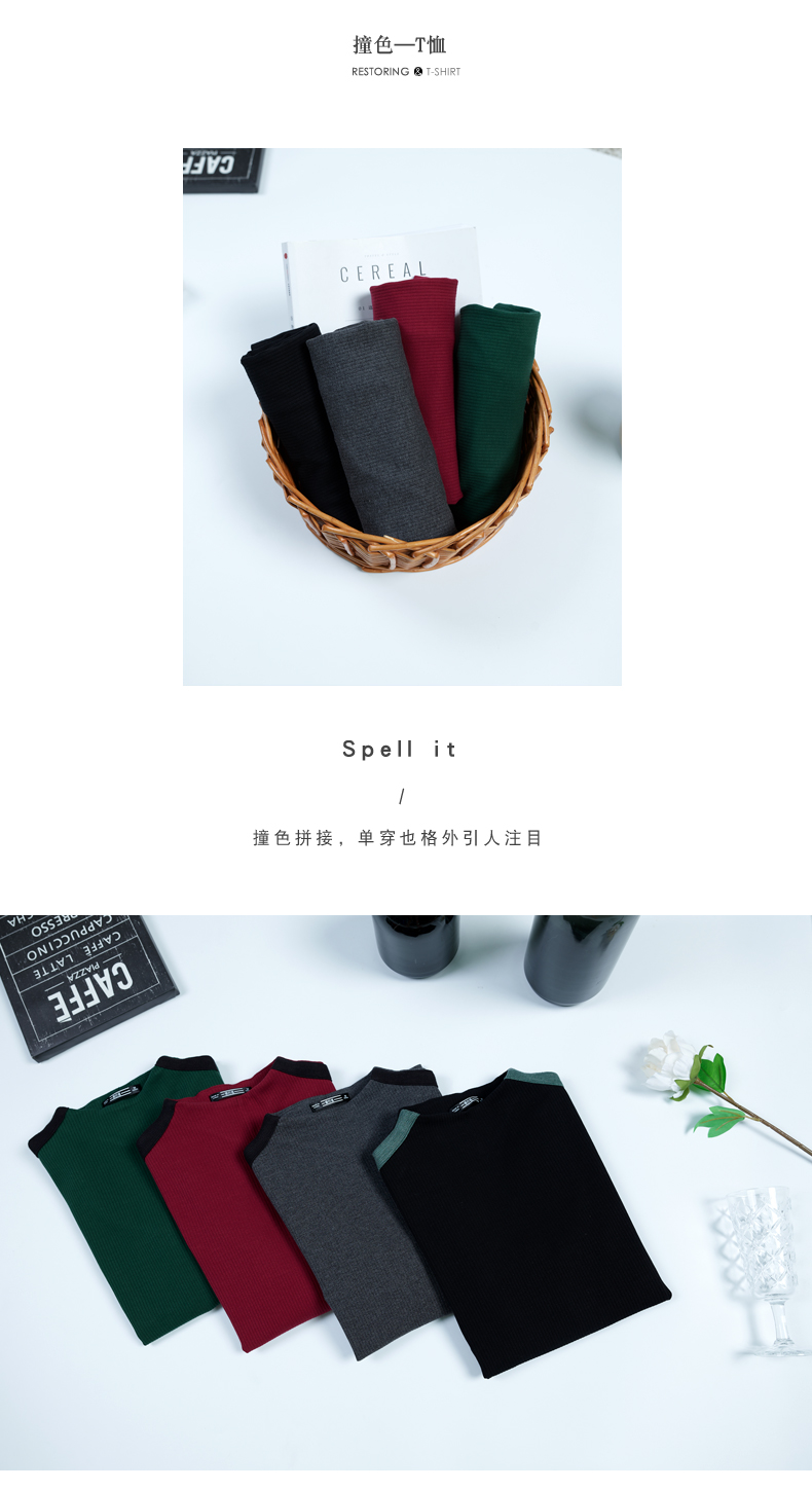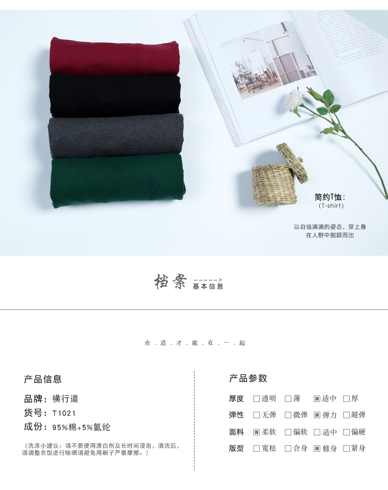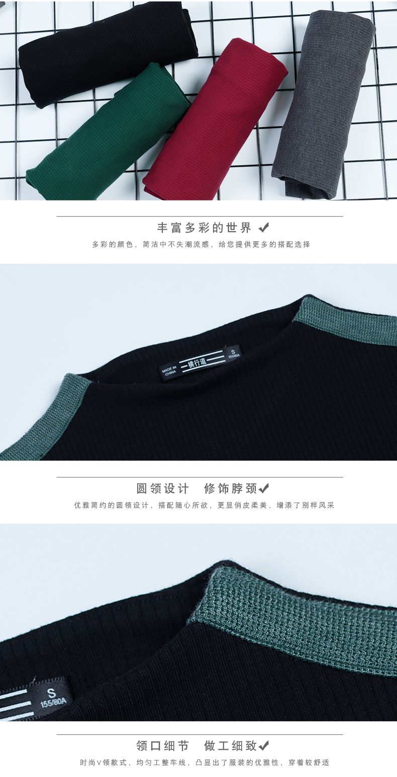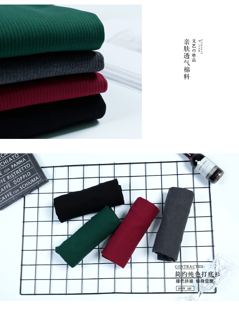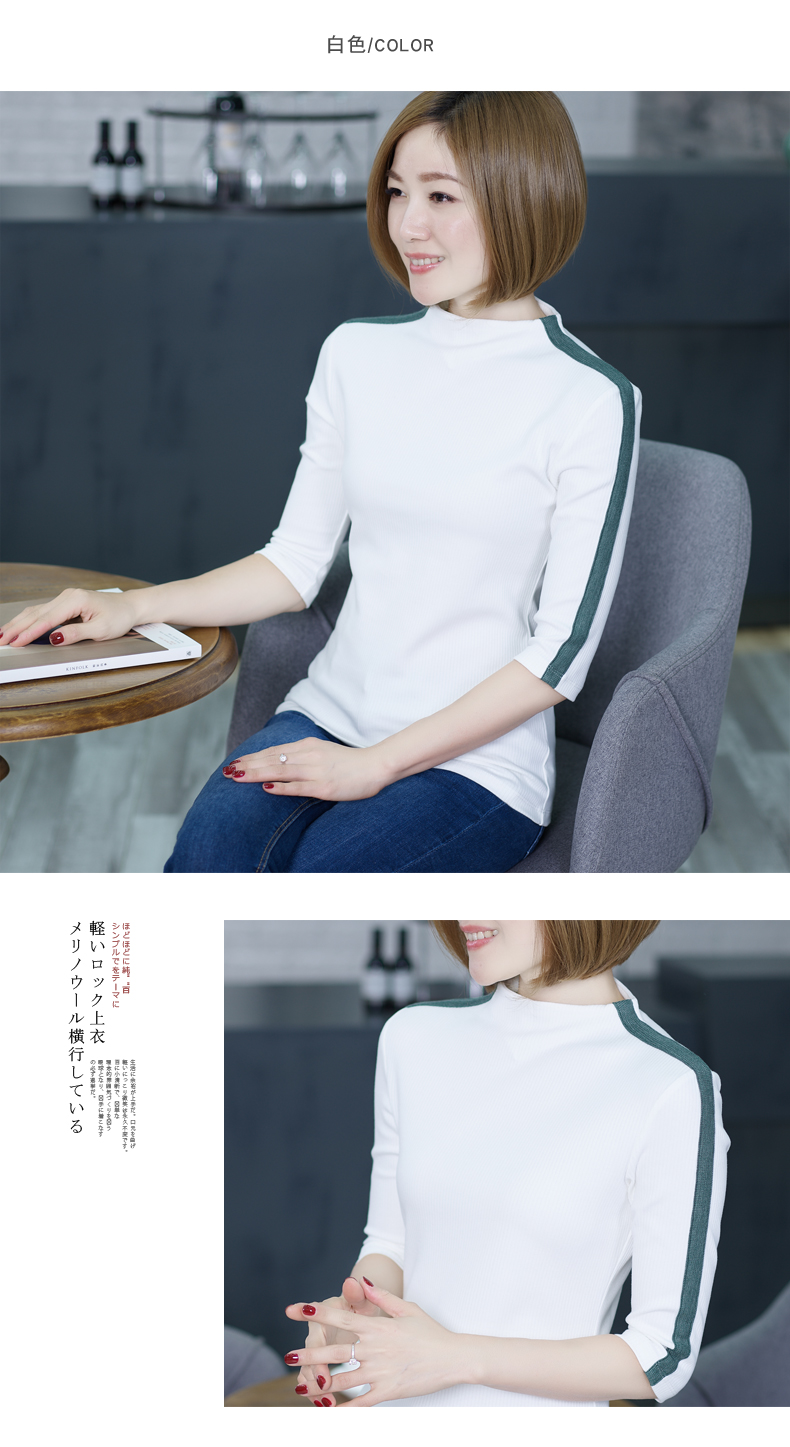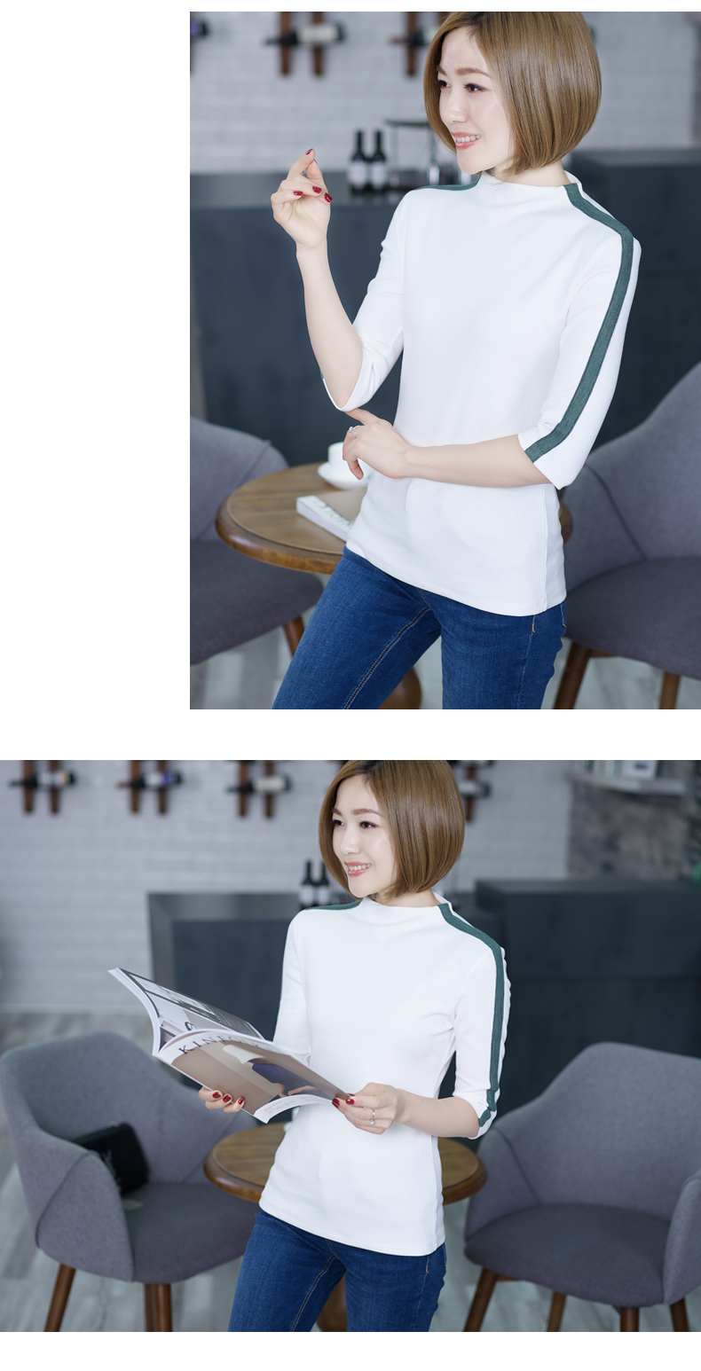 2019秋裝新款半高領七分袖打底衫女士秋款體恤中袖女裝上衣服t恤1入