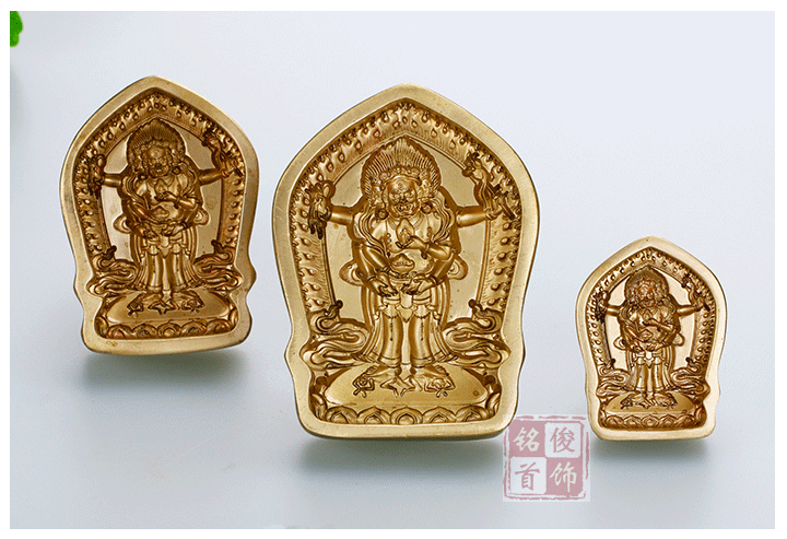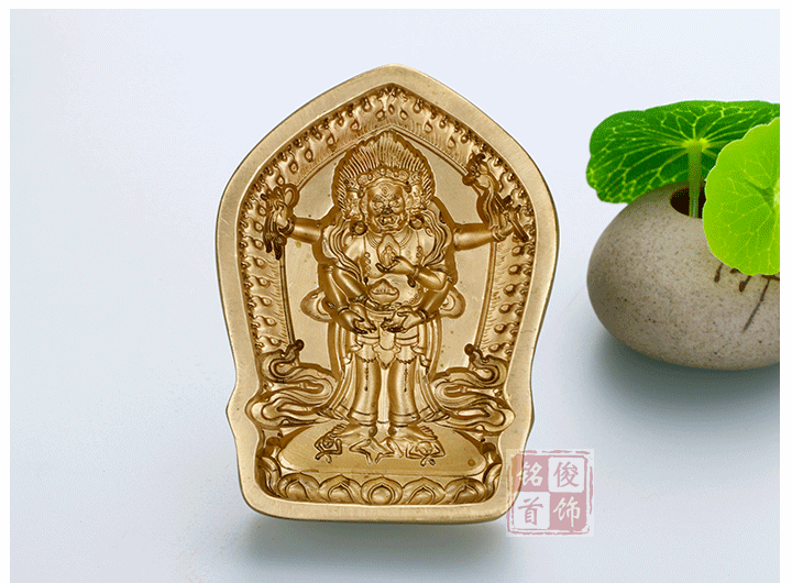 藏傳佛教精品紅財神擦擦佛擦么貢黃銅 模具泥擦擦供奉收藏擺件1入