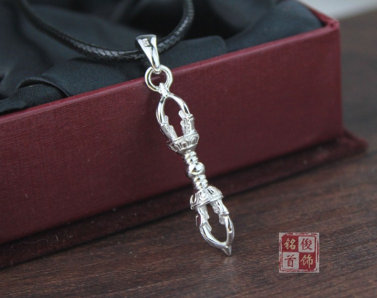 銘俊首飾 金鋼降魔杵S925純銀情侶轉運法器吊墜項鏈 掛件精品1入