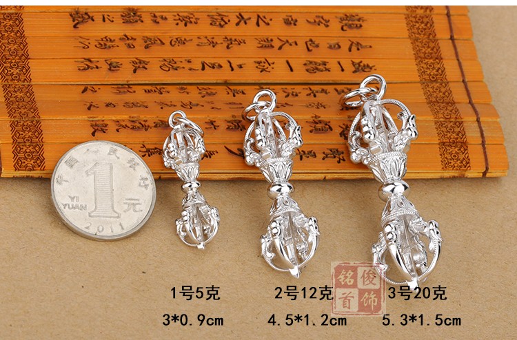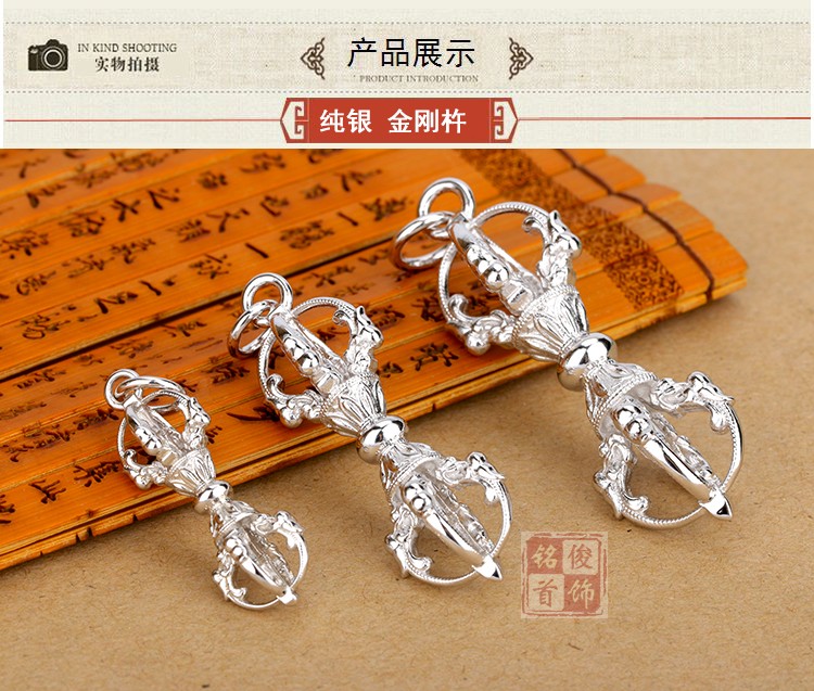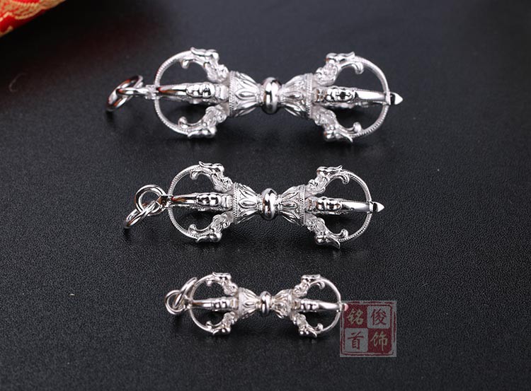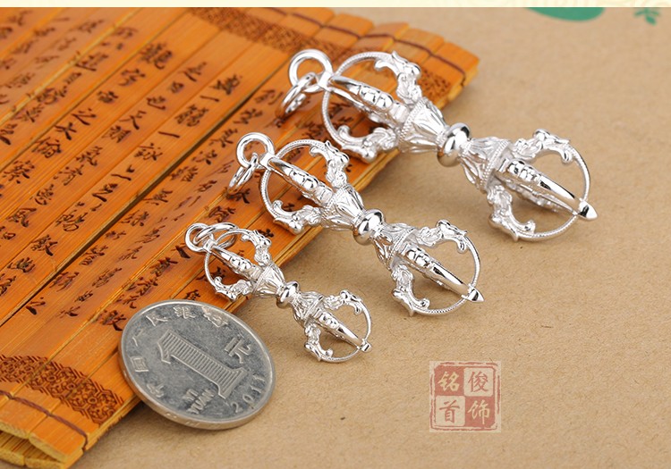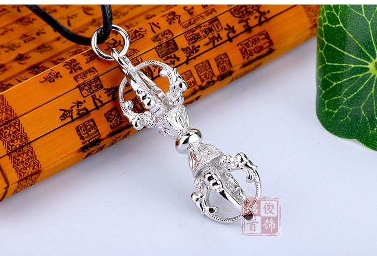 金剛杵純銀S925五股降魔杵轉運男女士護身符辟邪項鏈佛教法器掛件1入