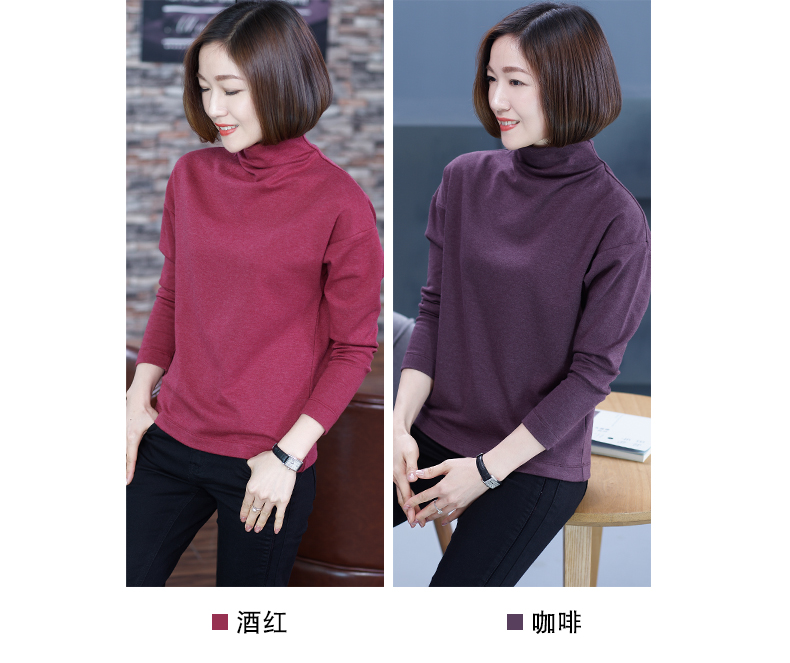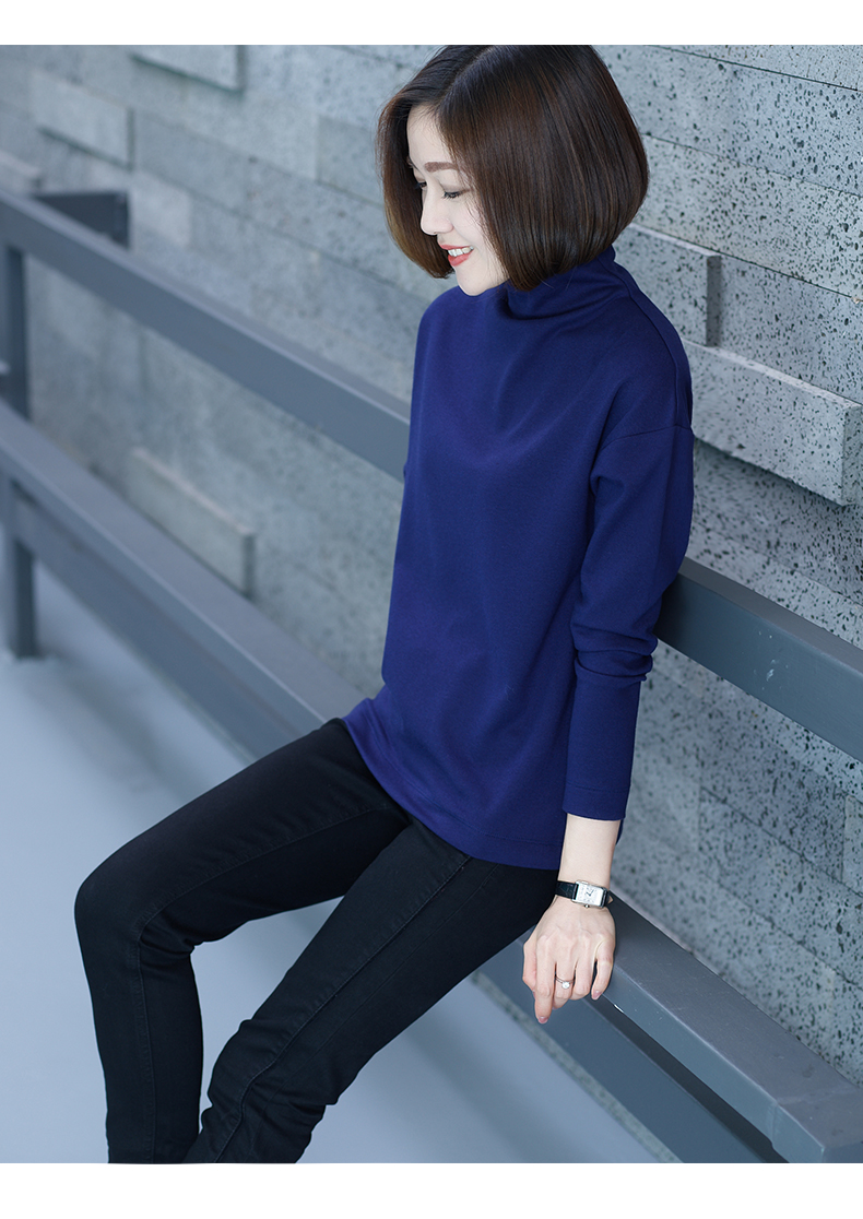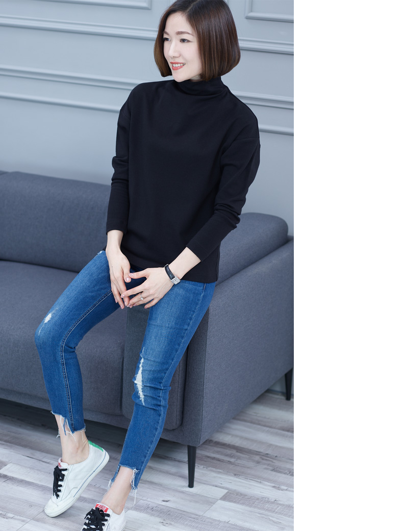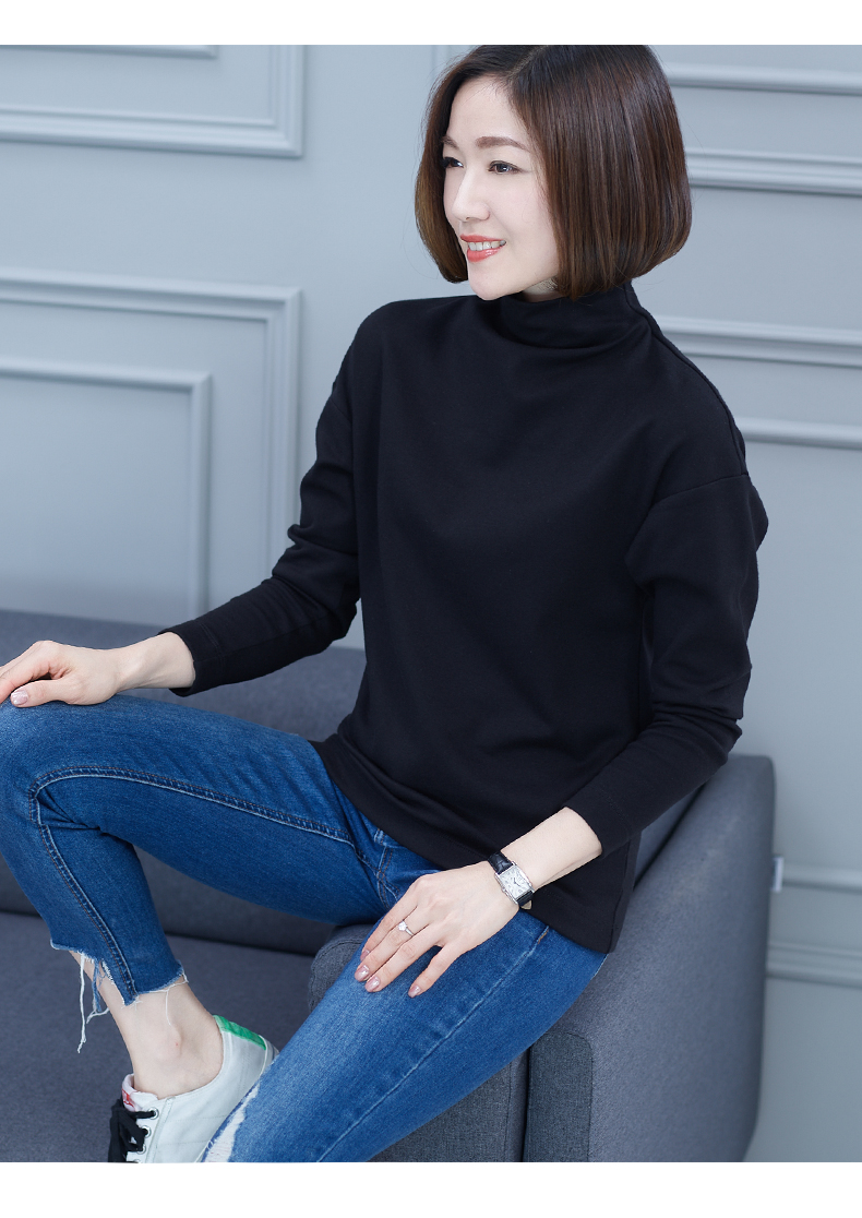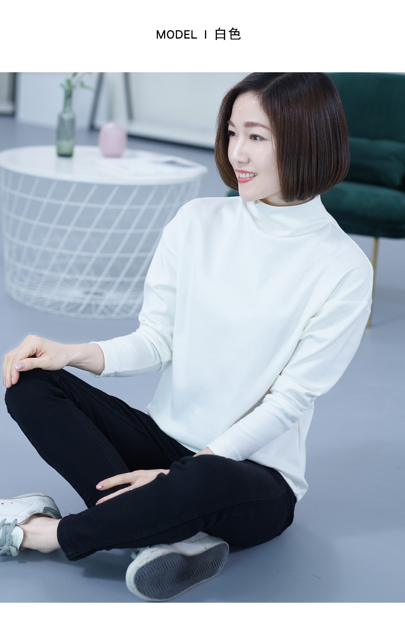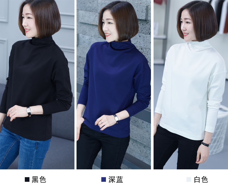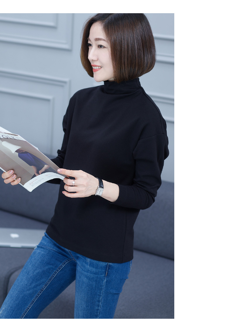 2019秋冬裝加厚長袖半高領寬松大碼女裝純色長袖上衣女t恤打底衫1入