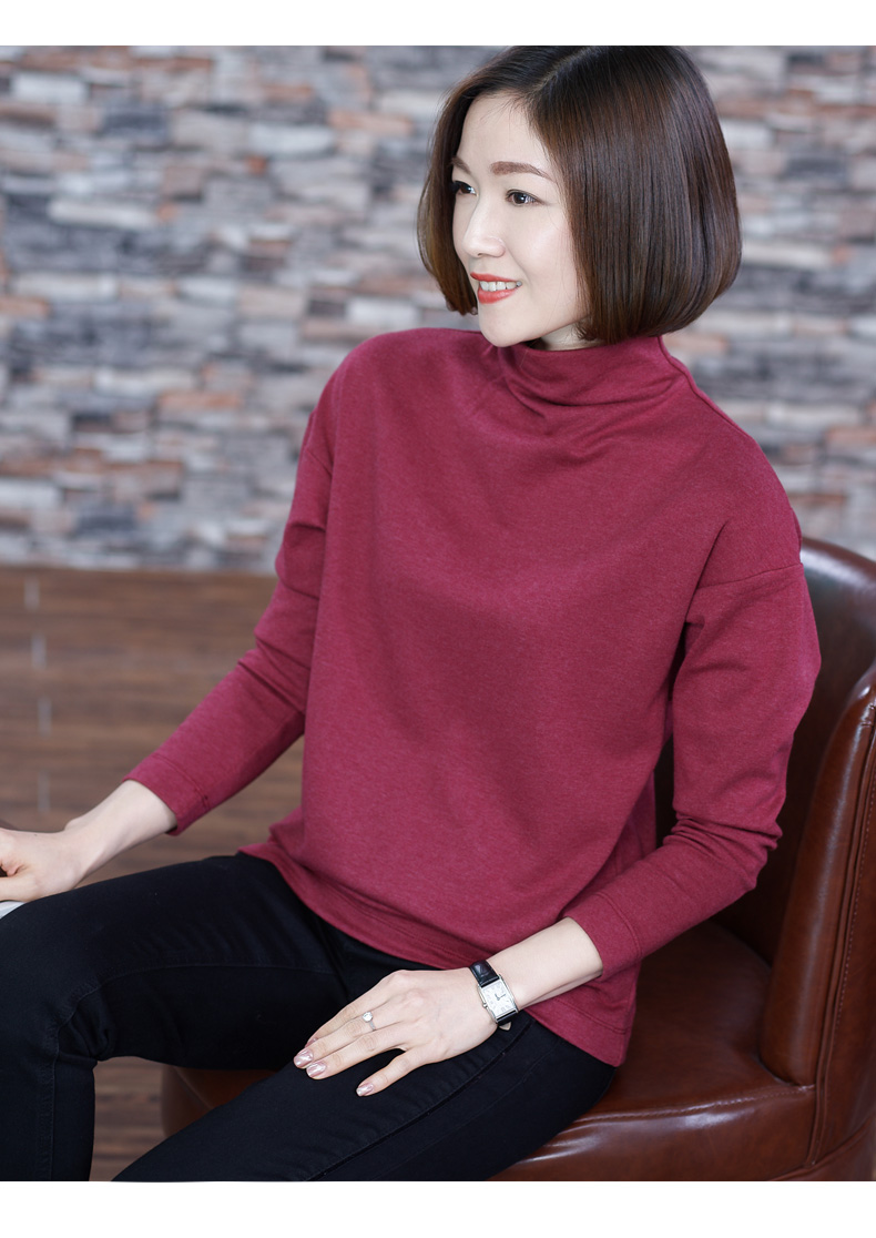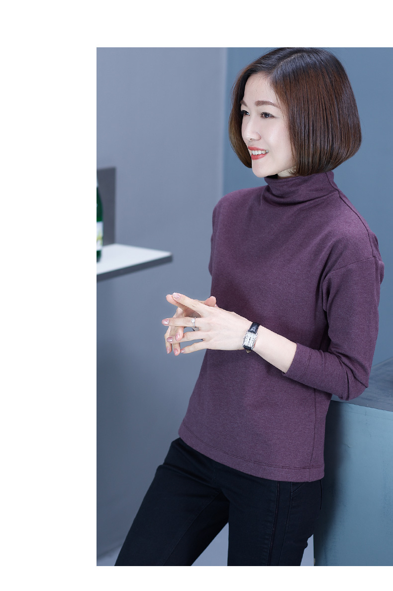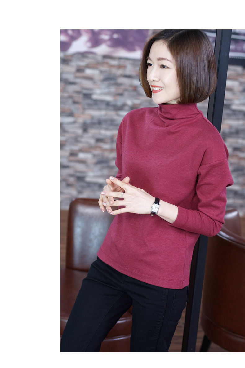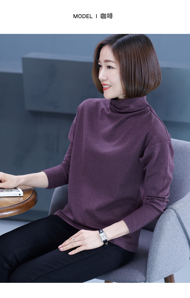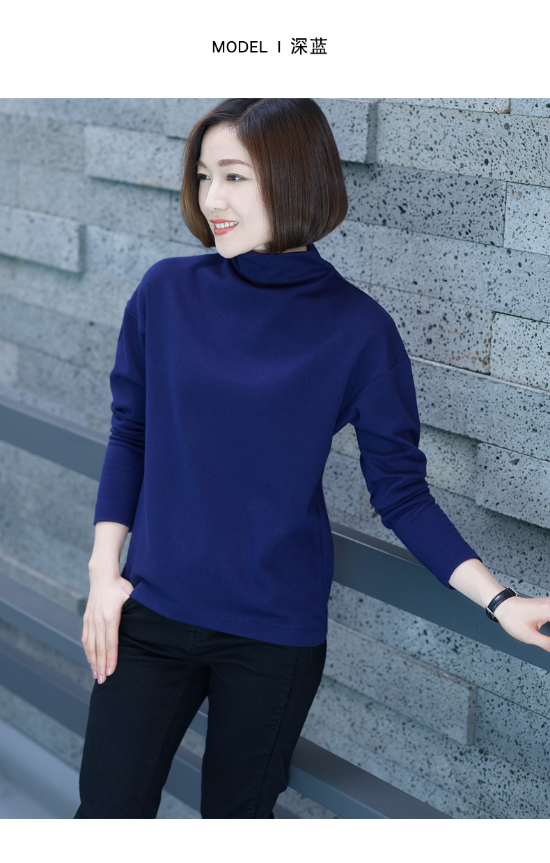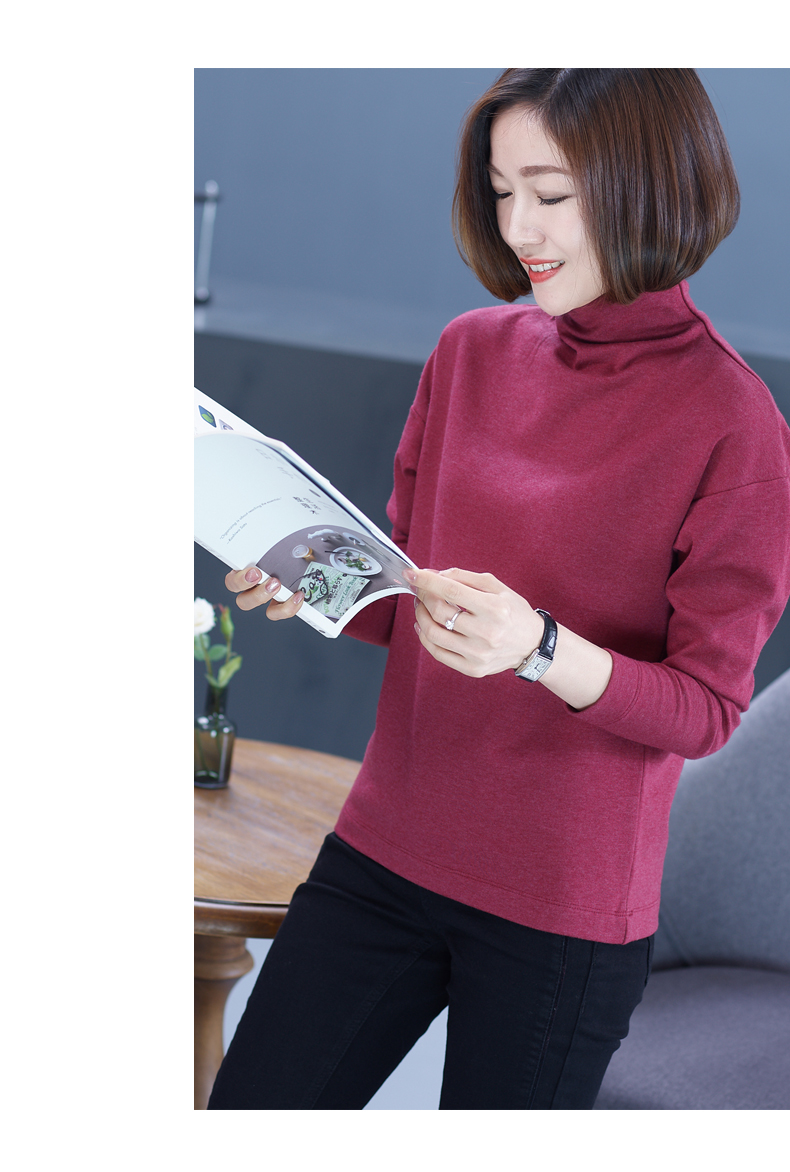 2019秋冬裝加厚長袖半高領寬松大碼女裝純色長袖上衣女t恤打底衫1入