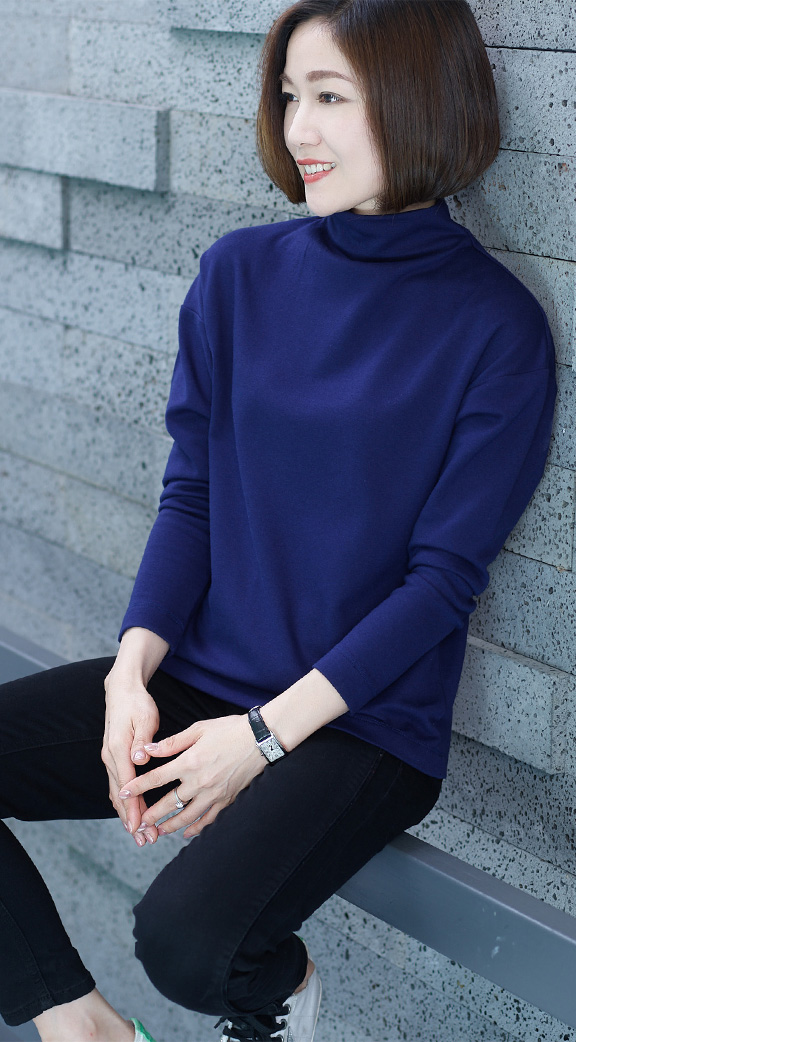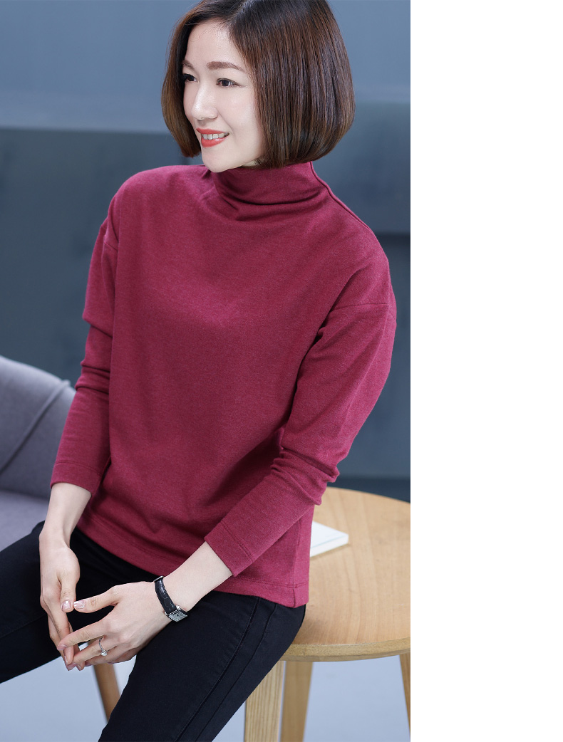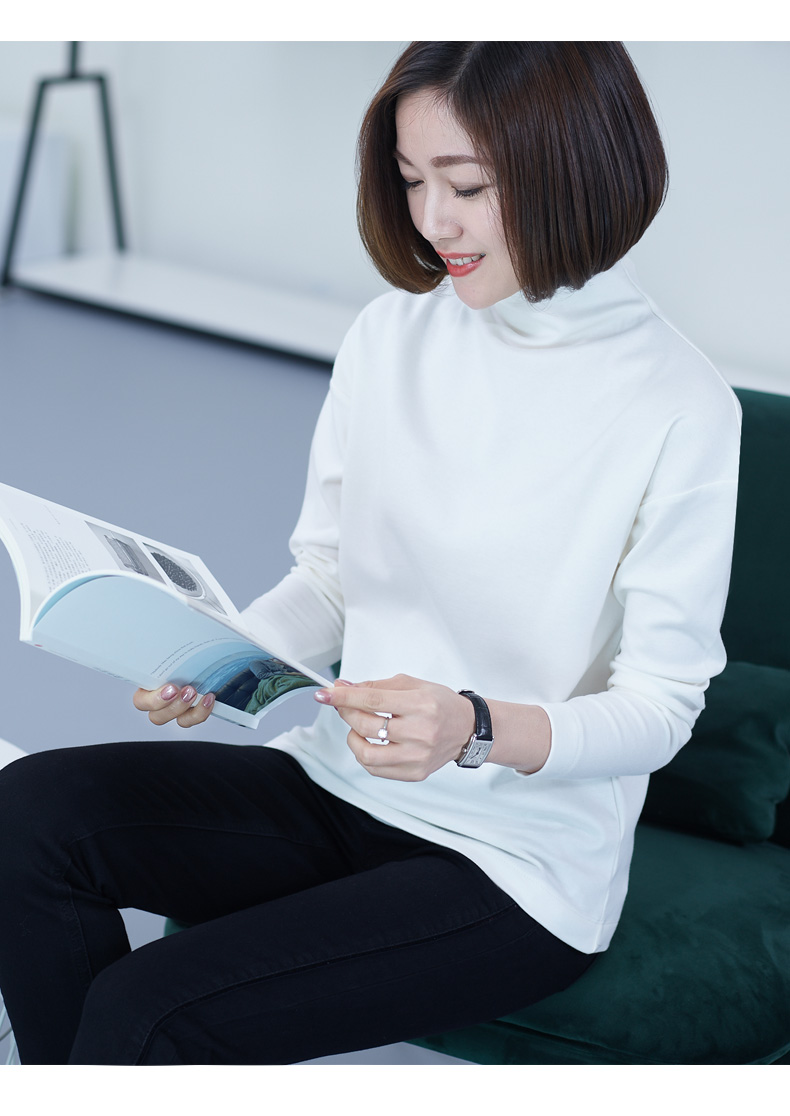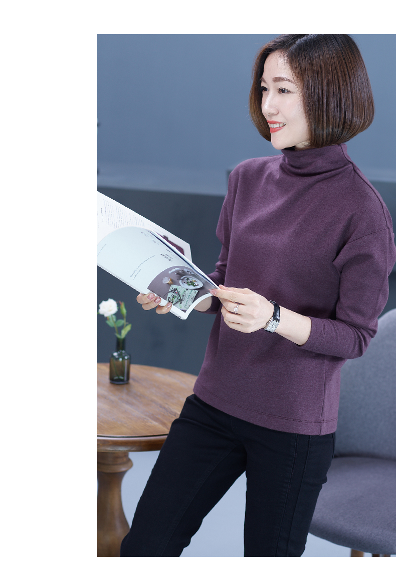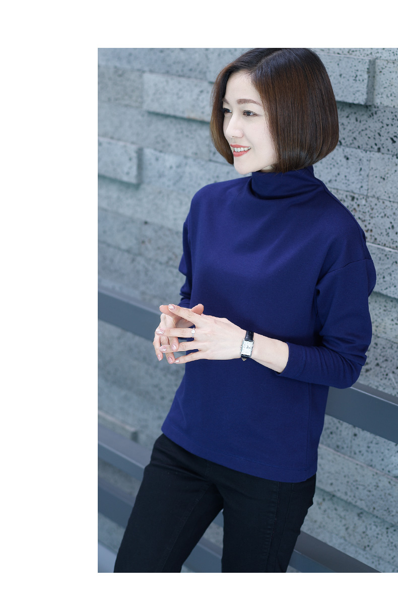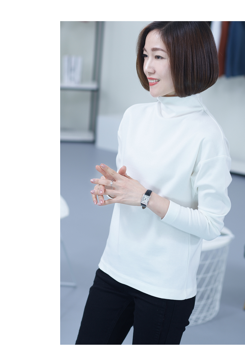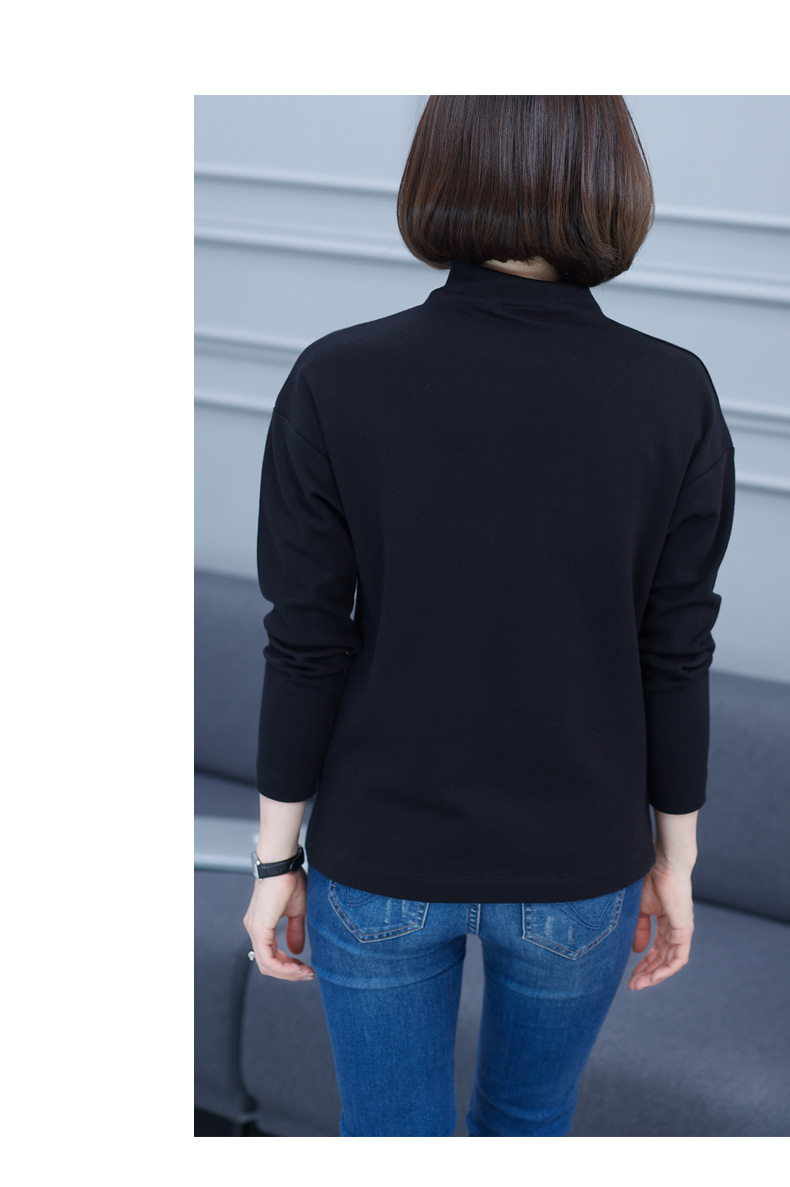 2019秋冬裝加厚長袖半高領寬松大碼女裝純色長袖上衣女t恤打底衫1入
