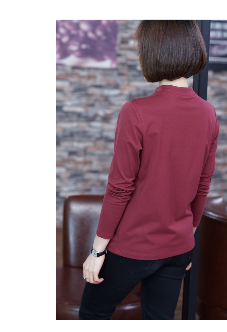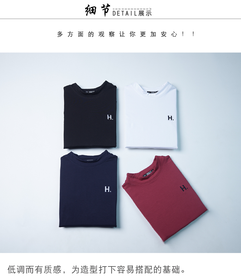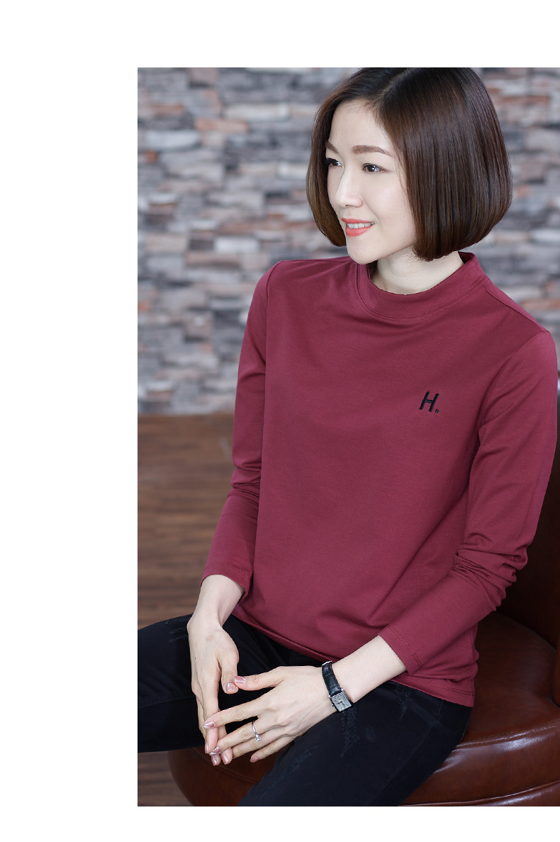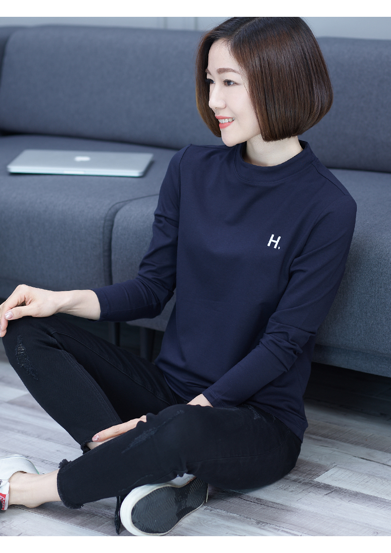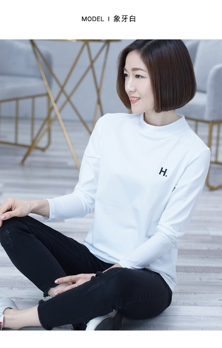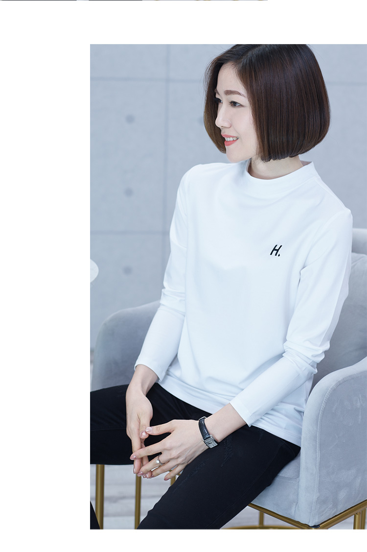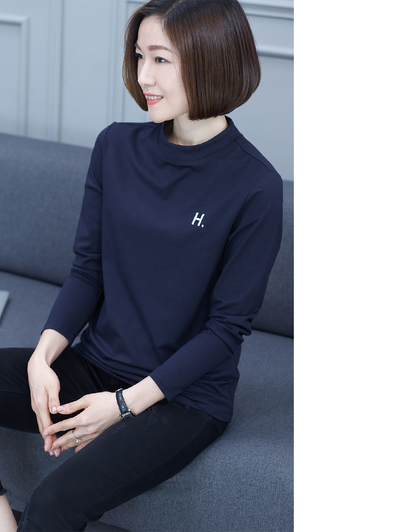 2019秋季大碼女裝半高領純色長袖黑色字母刺繡打底衫上衣t恤小衫1入