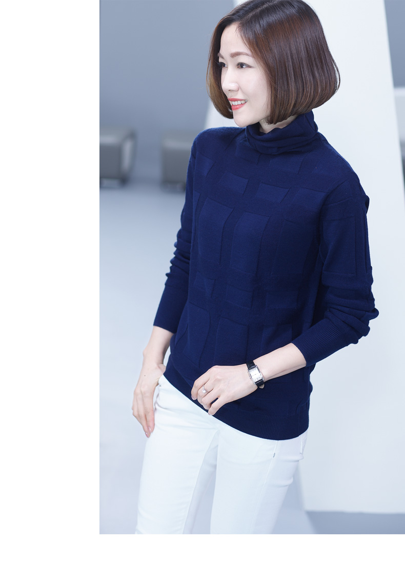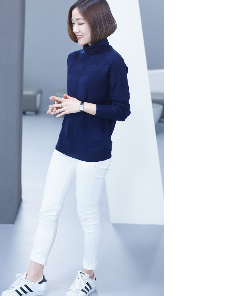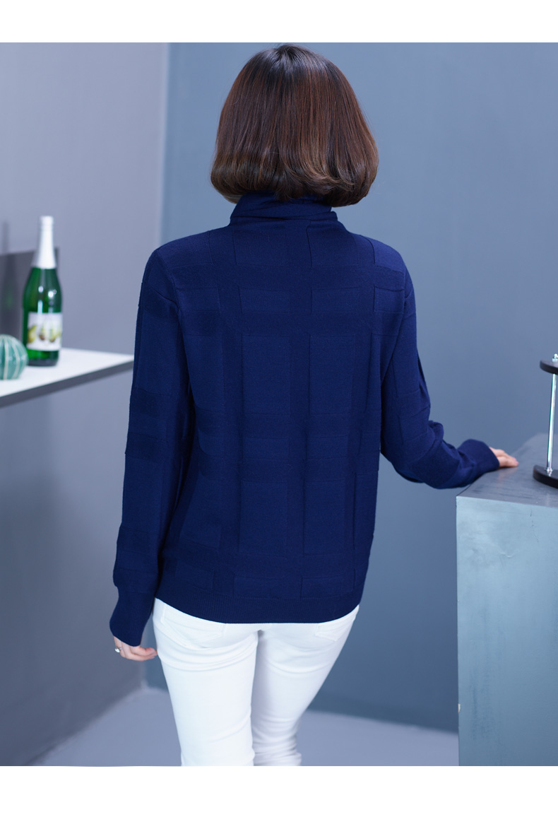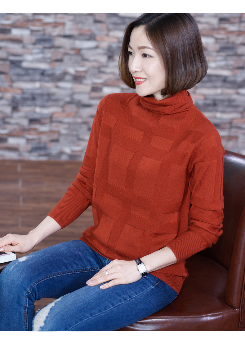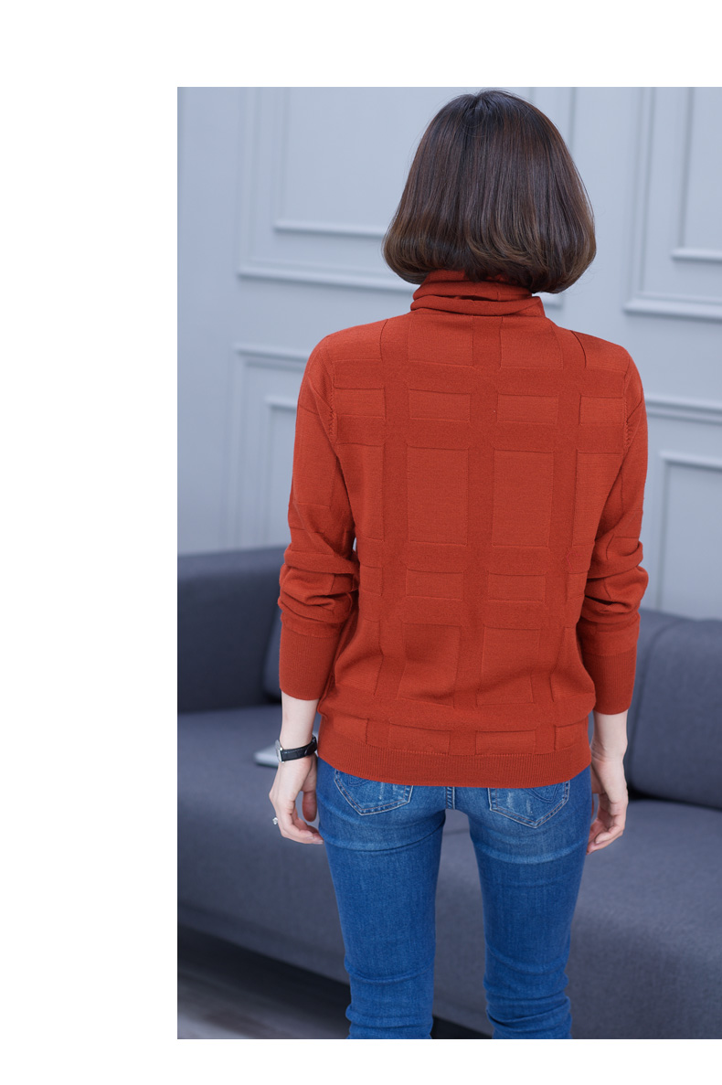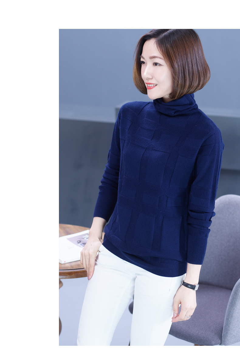 2019秋裝新款大碼女裝高領長袖羊毛衫純色針織衫毛衣寬松上衣外穿1入
