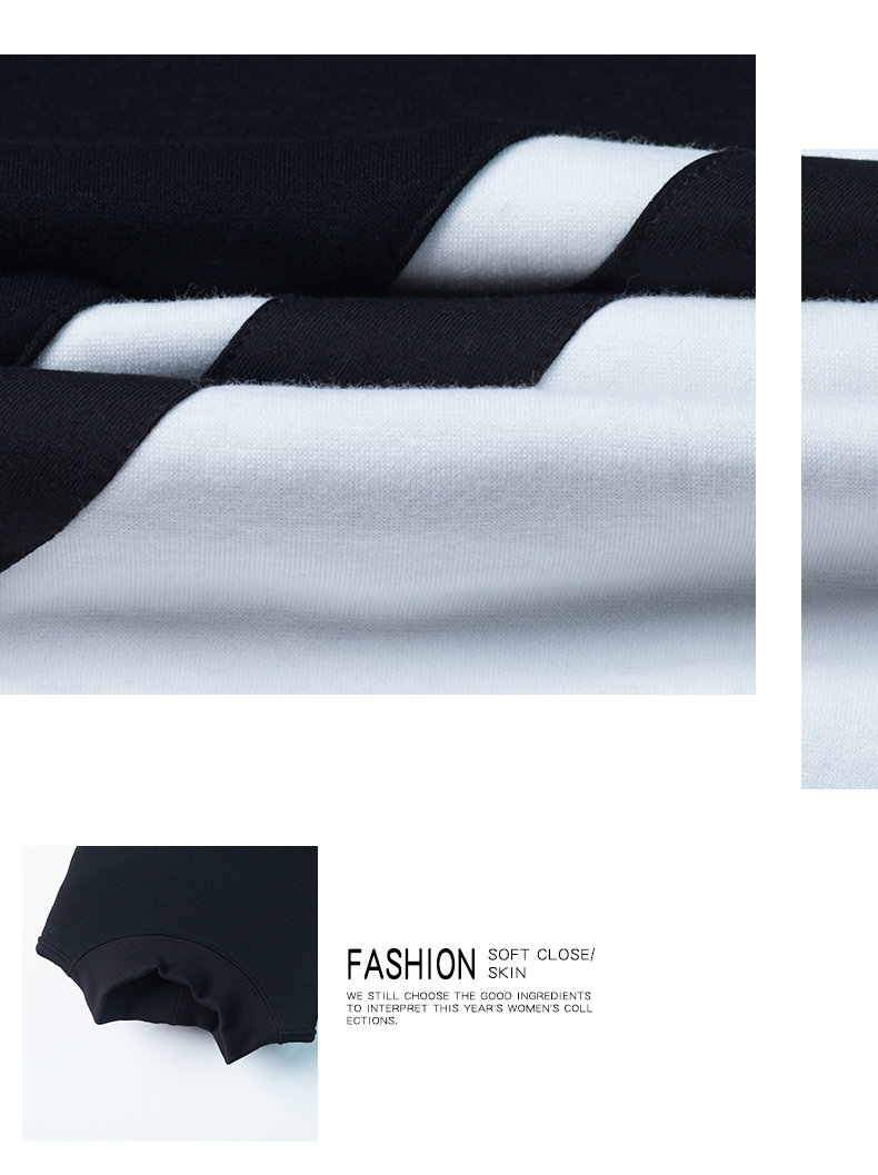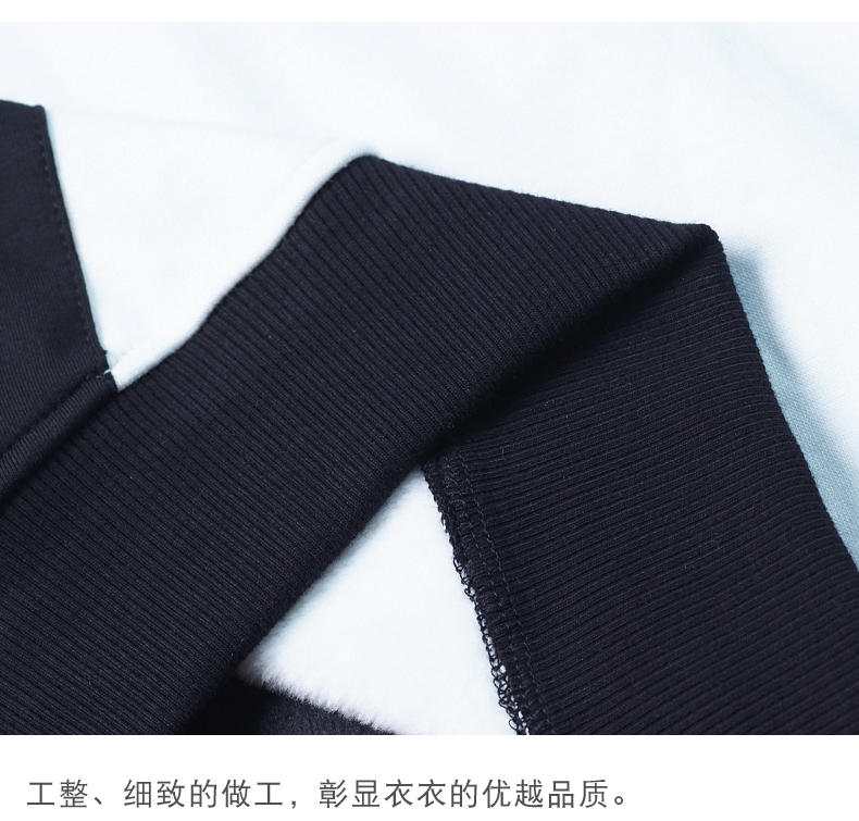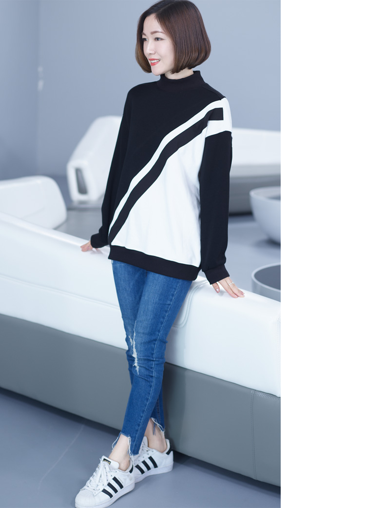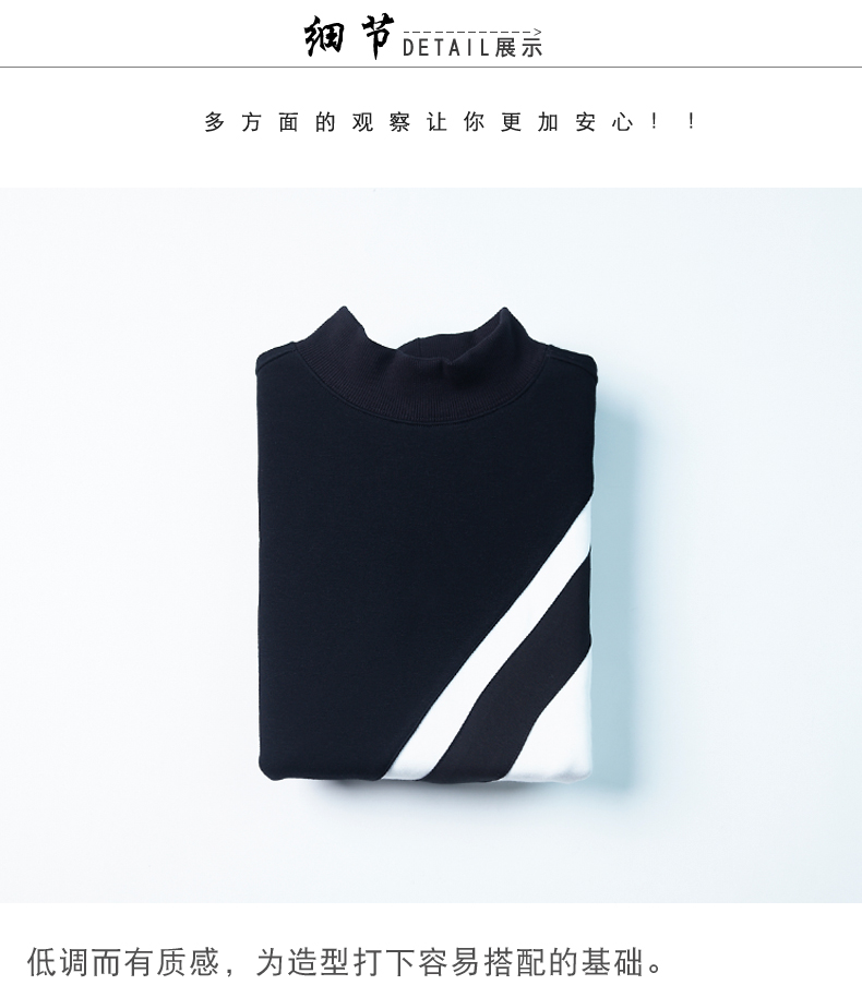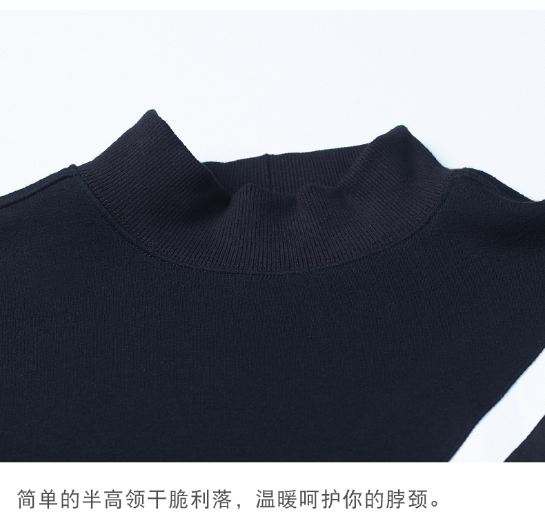 2019秋冬裝半高領加絨加厚撞色寬松大碼女裝長袖套頭黑色衛衣外穿1入