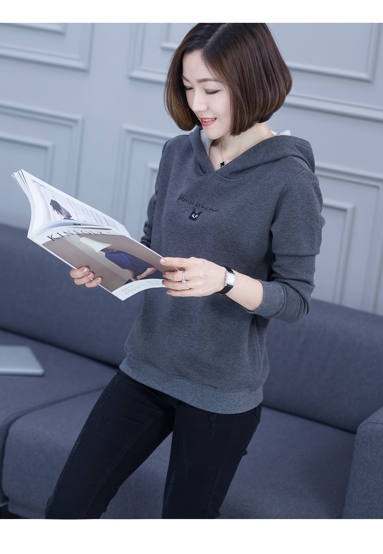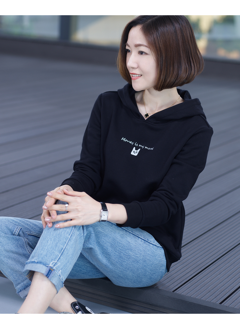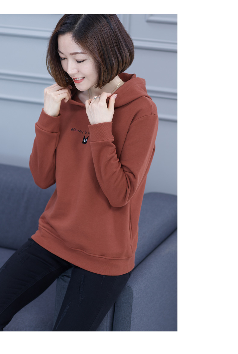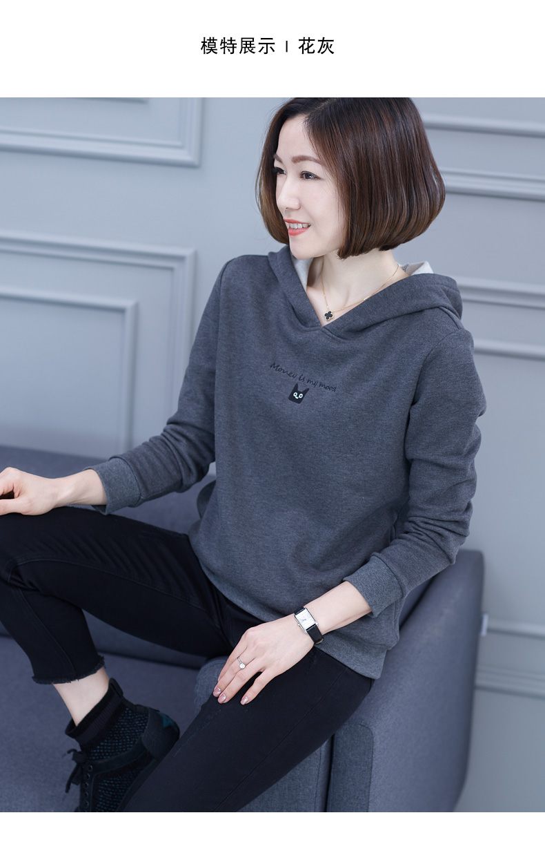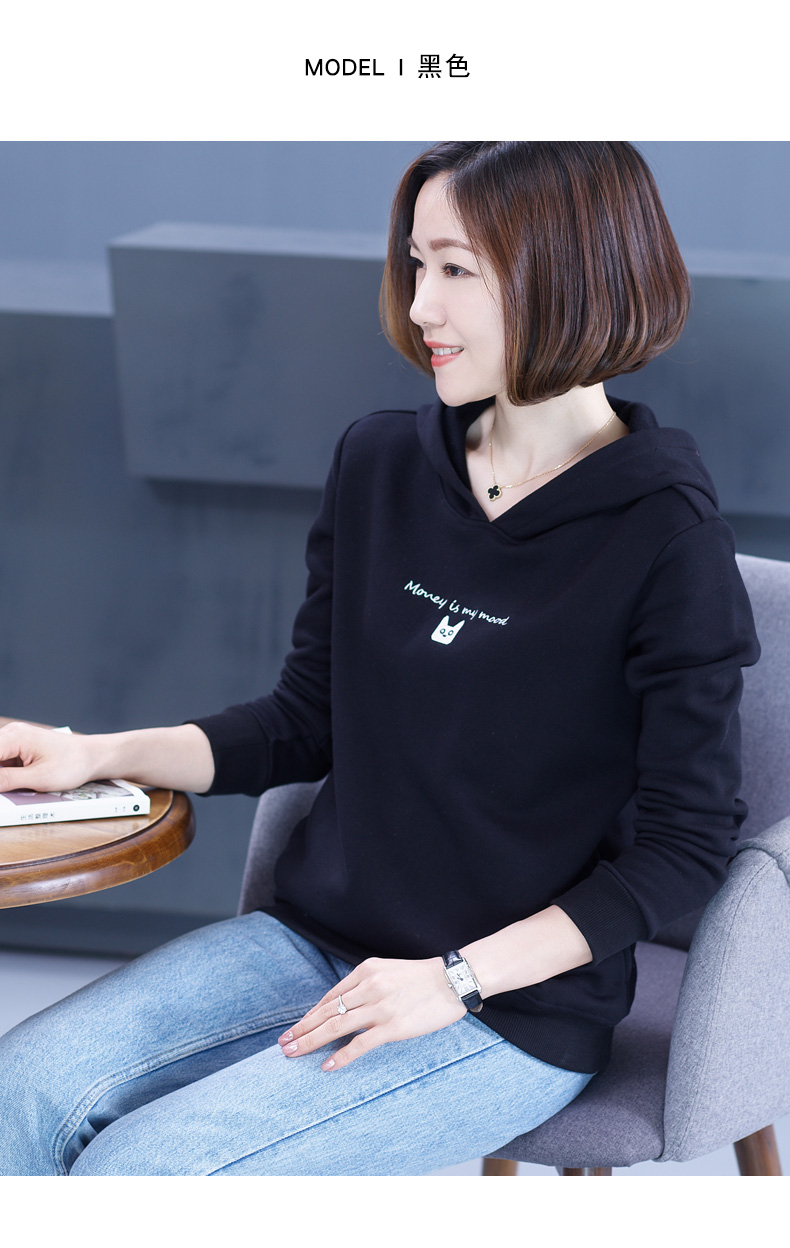 2019秋冬裝加厚連帽字母刺繡長袖衛衣寬松大碼女裝純棉上衣服帽衫1入