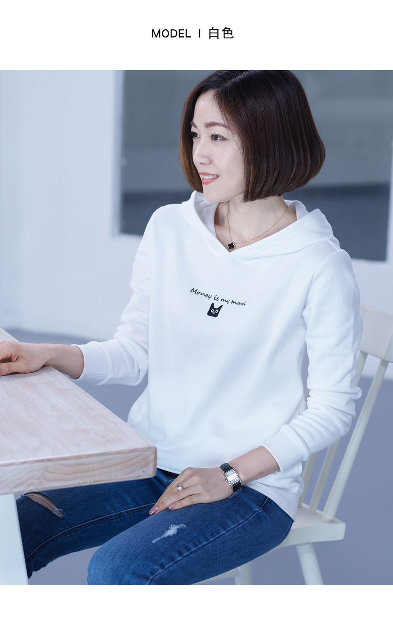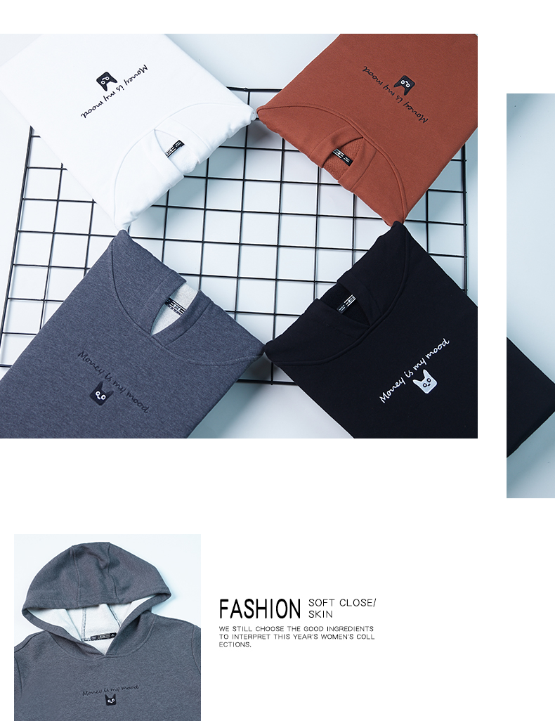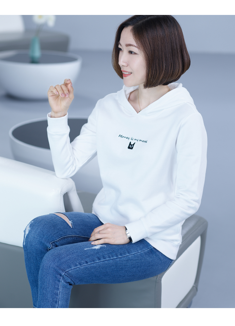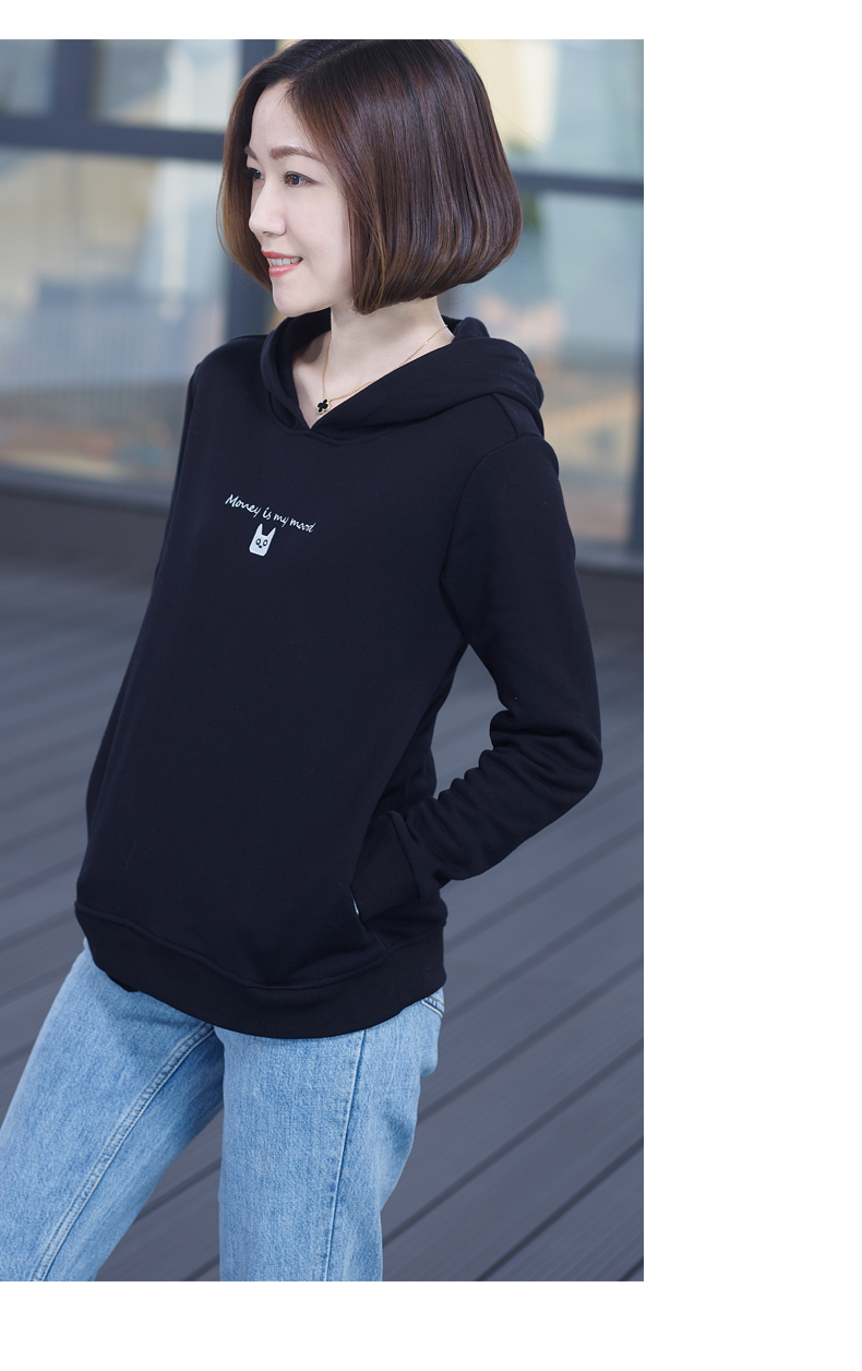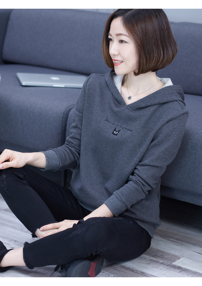 2019秋冬裝加厚連帽字母刺繡長袖衛衣寬松大碼女裝純棉上衣服帽衫1入