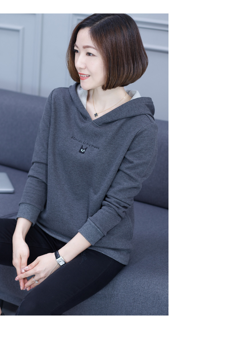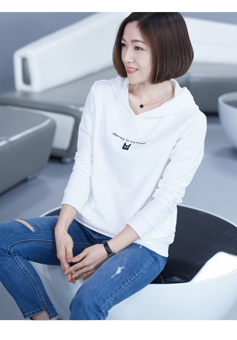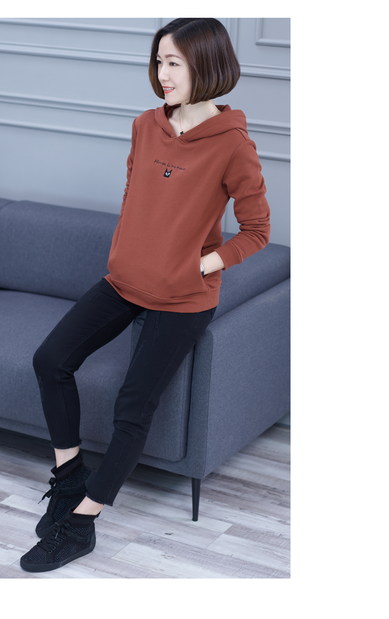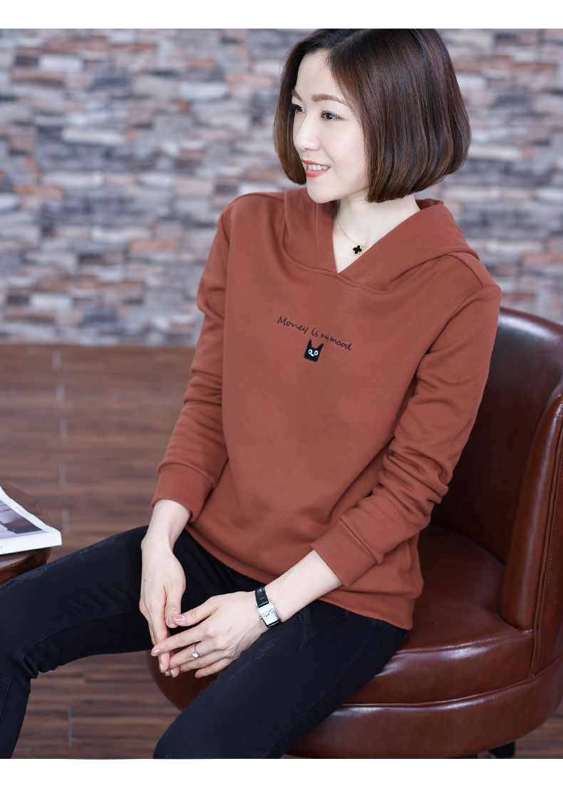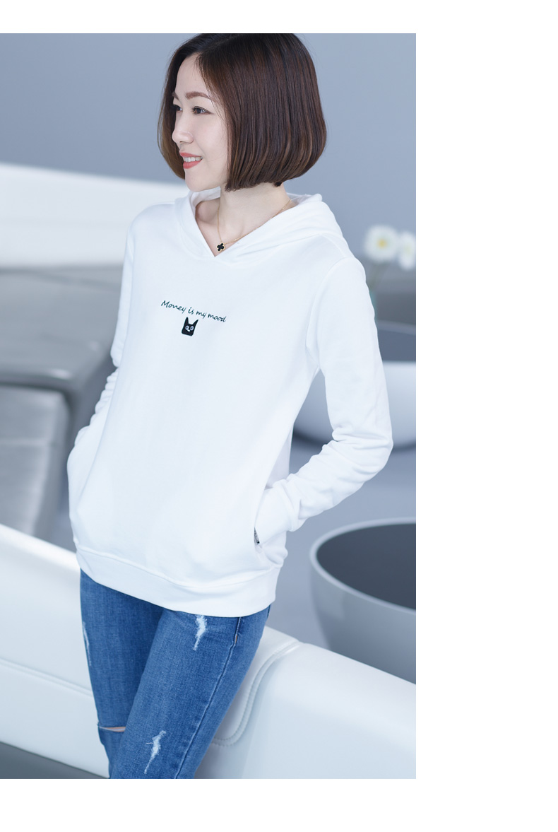 2019秋冬裝加厚連帽字母刺繡長袖衛衣寬松大碼女裝純棉上衣服帽衫1入