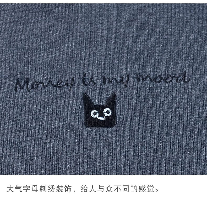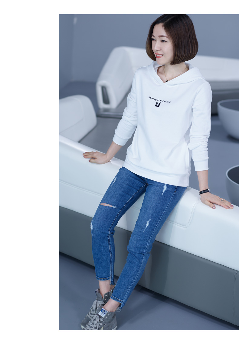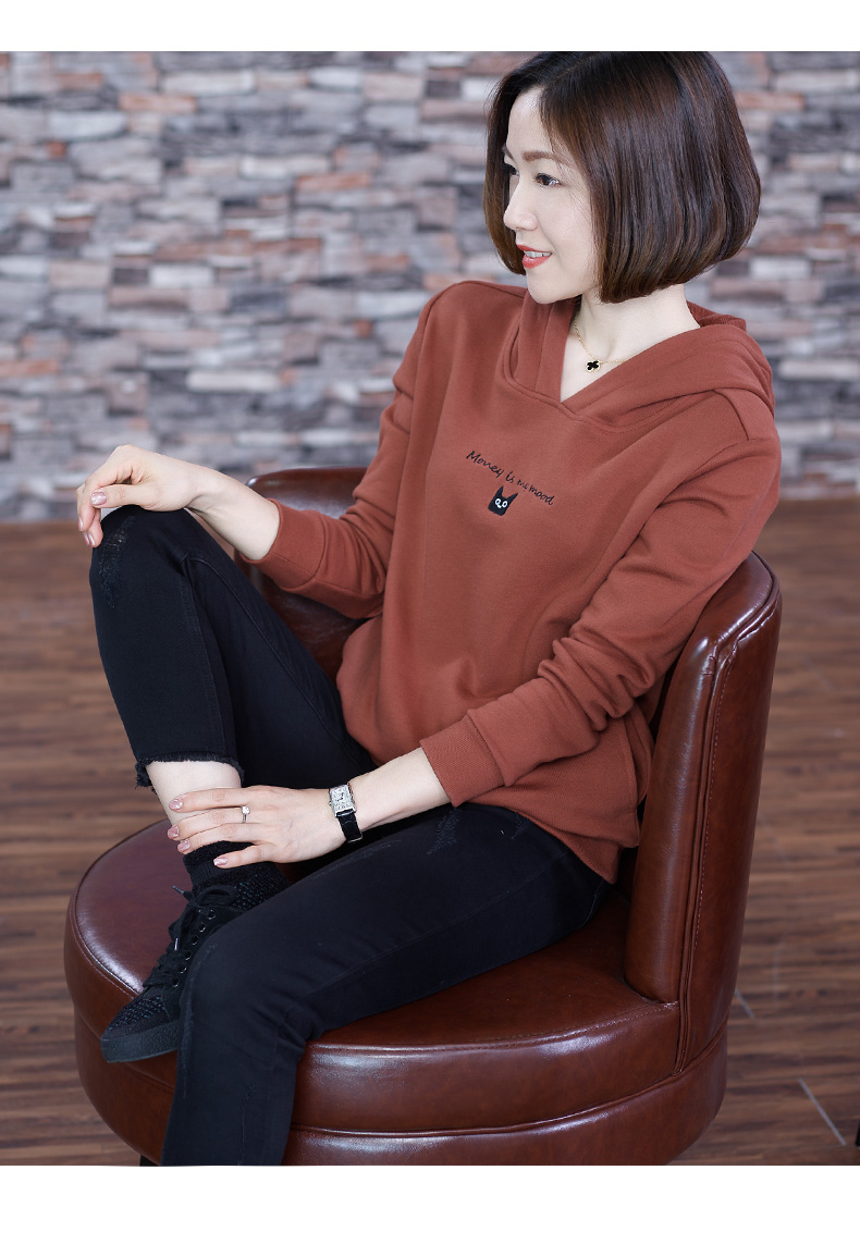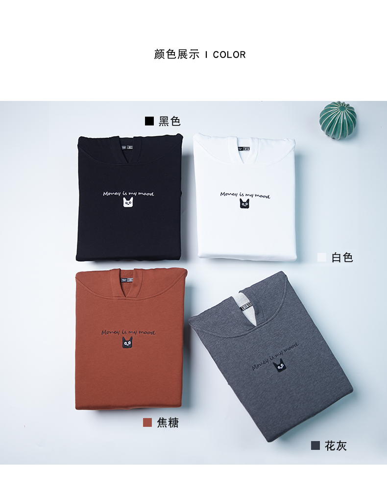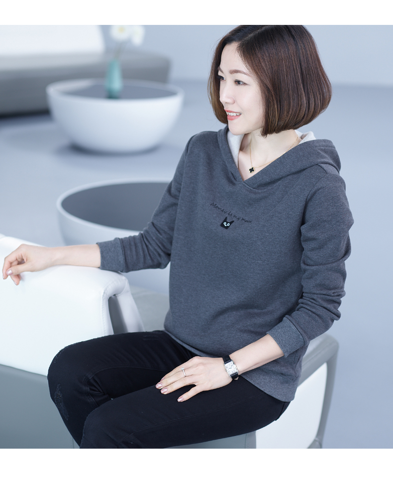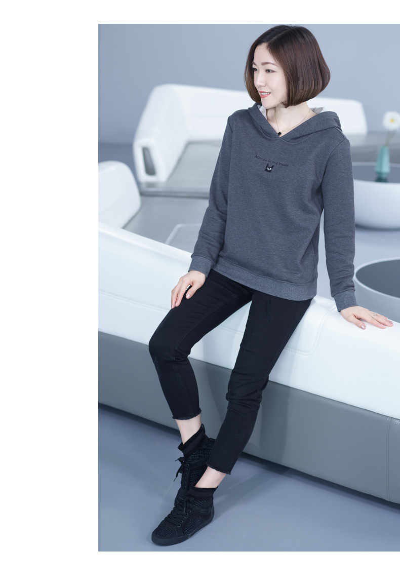 2019秋冬裝加厚連帽字母刺繡長袖衛衣寬松大碼女裝純棉上衣服帽衫1入