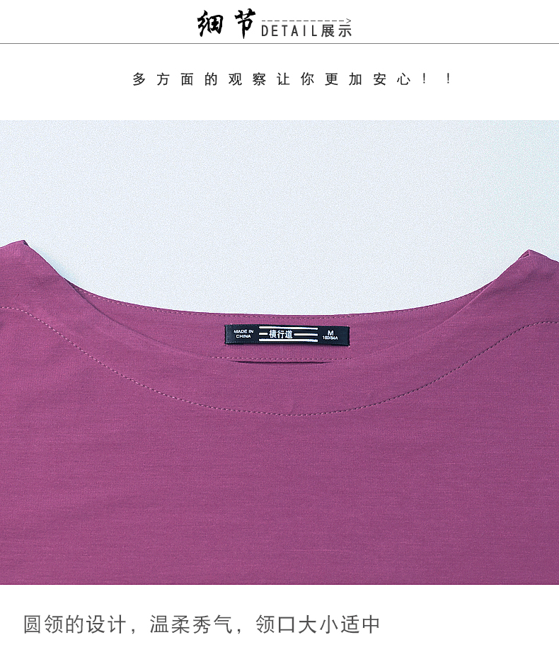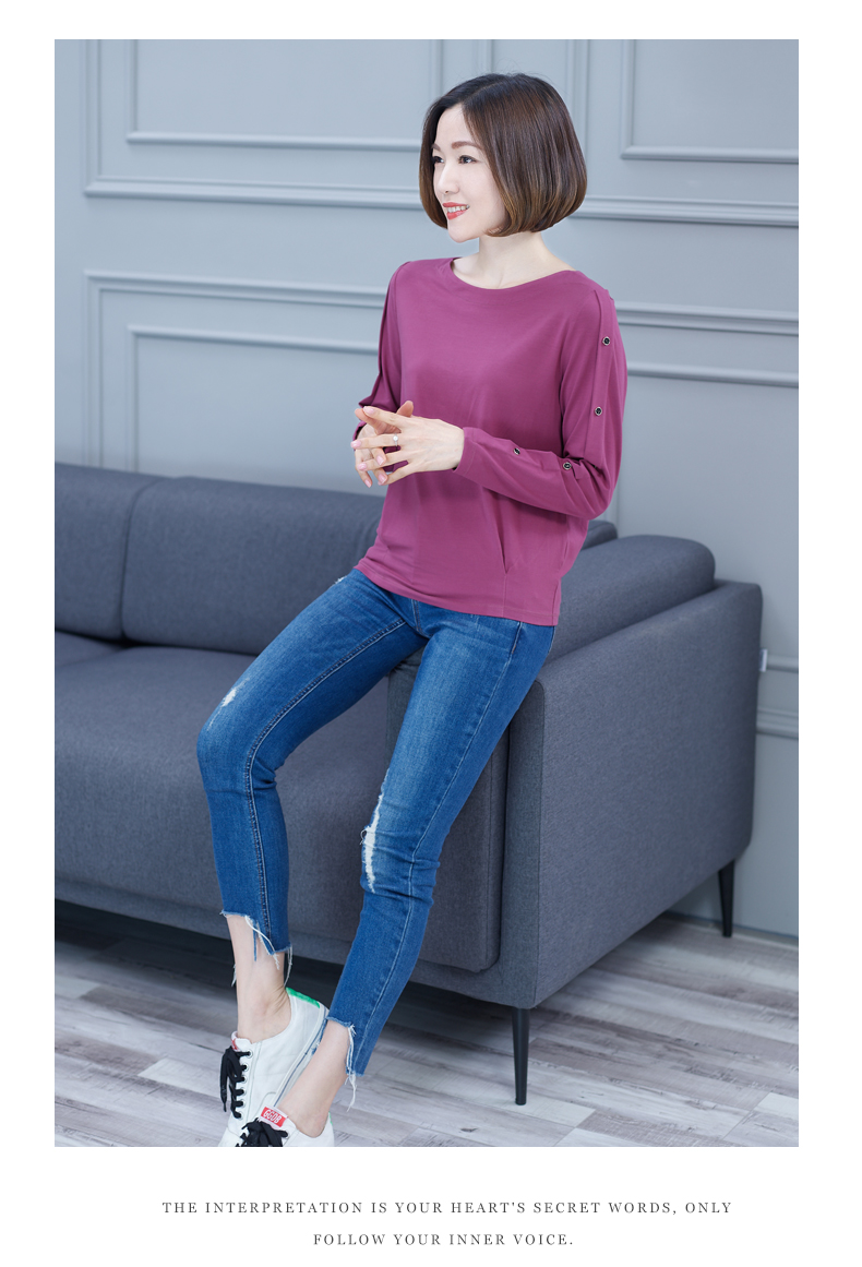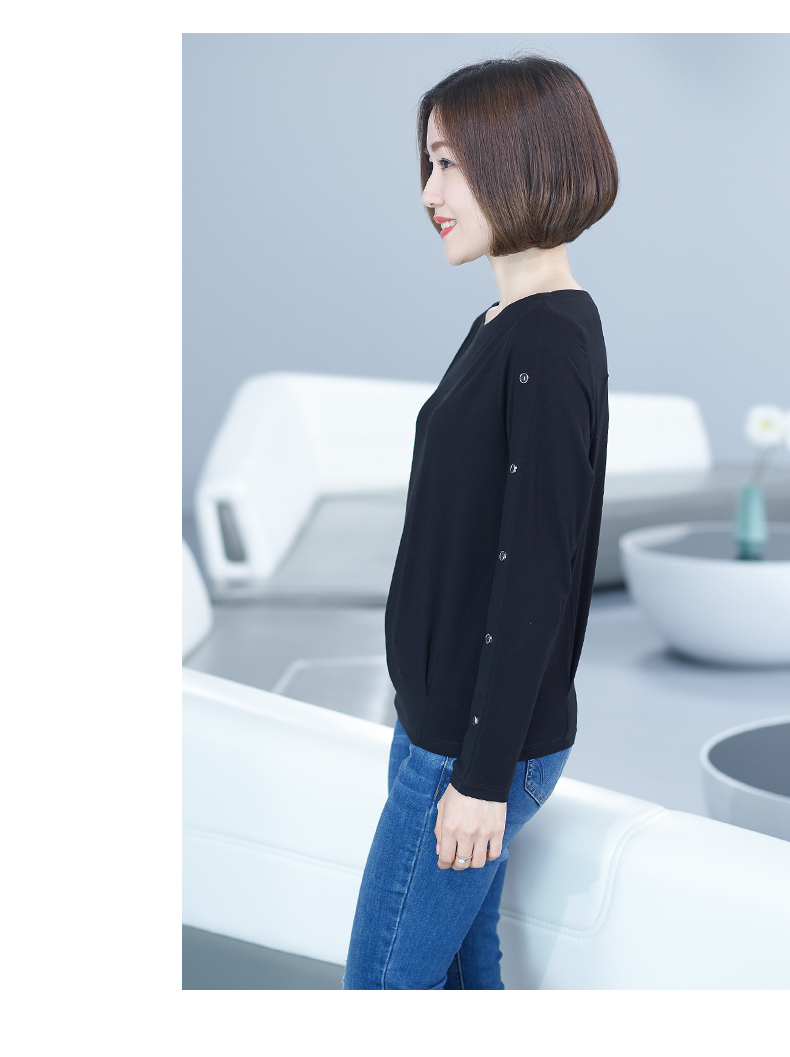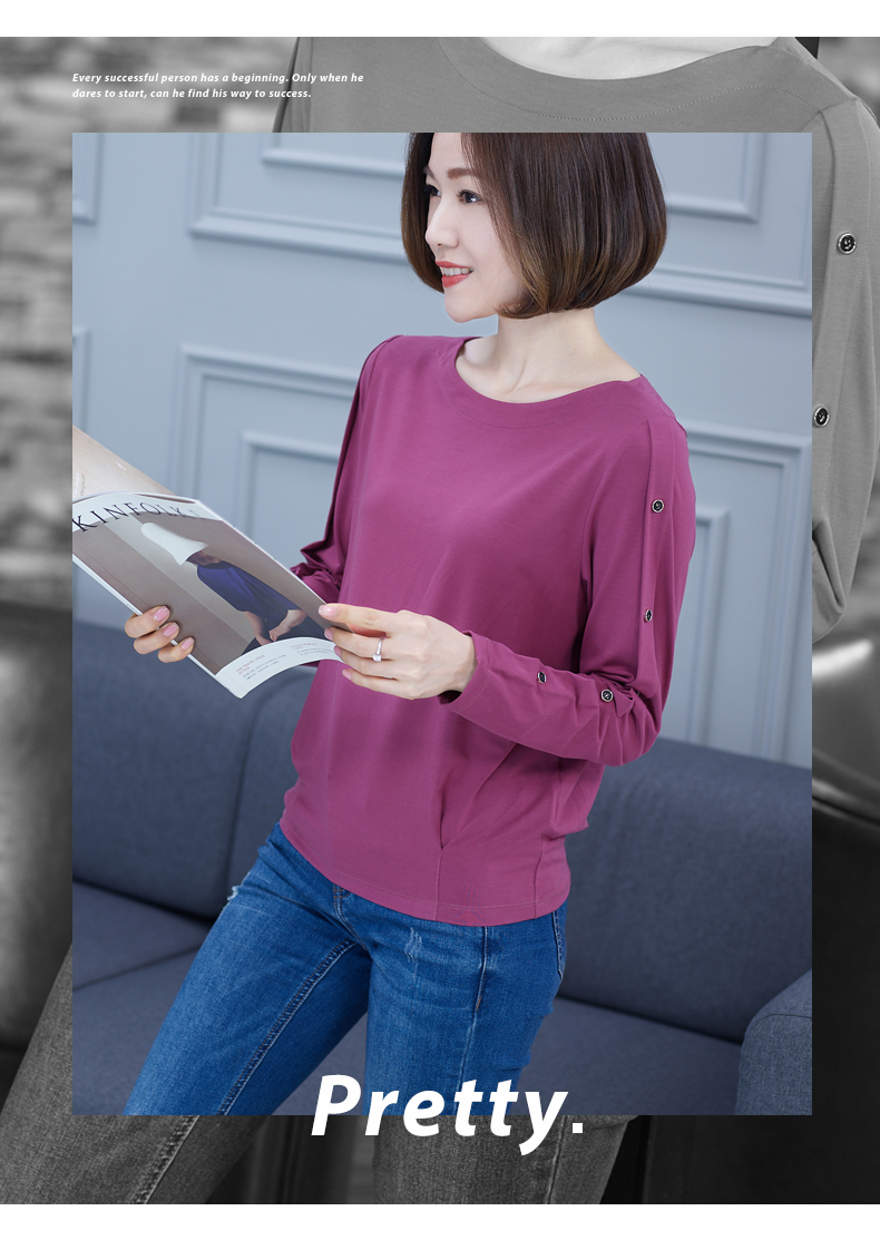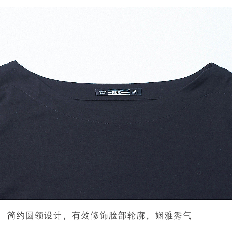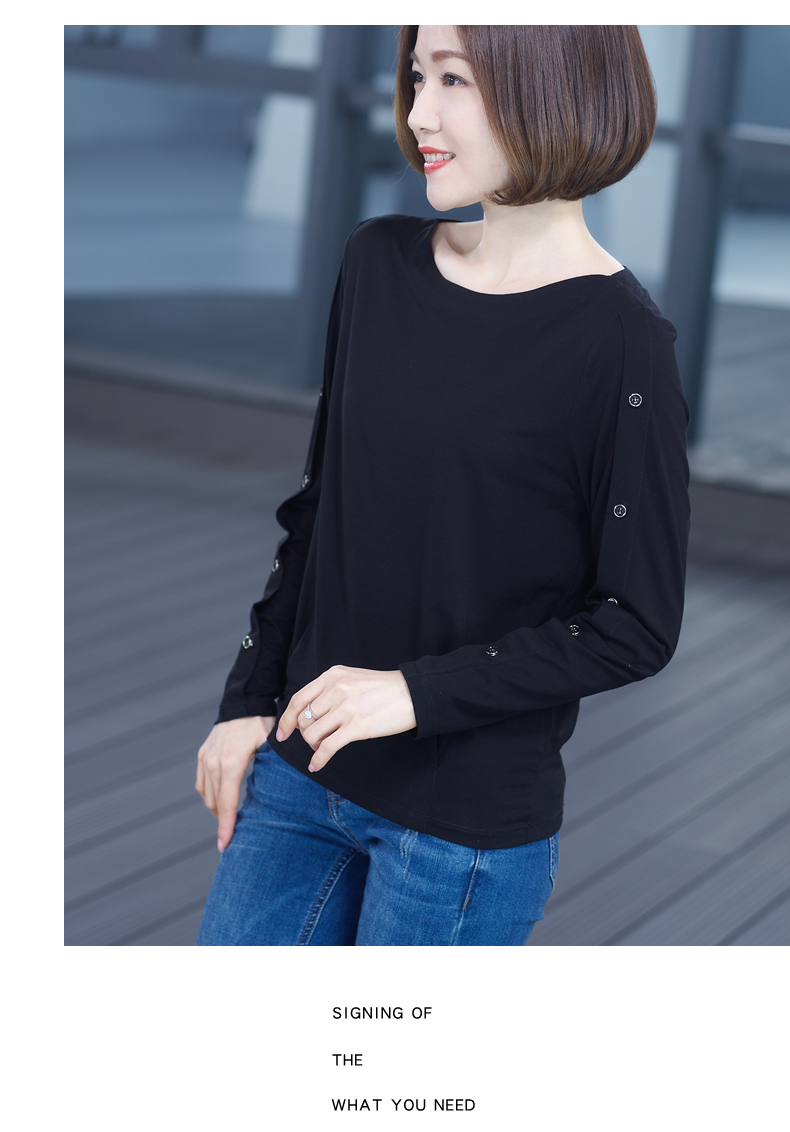 2019早秋新款圓領純色長袖休閑寬松大碼女裝黑色上衣t恤小衫體恤1入