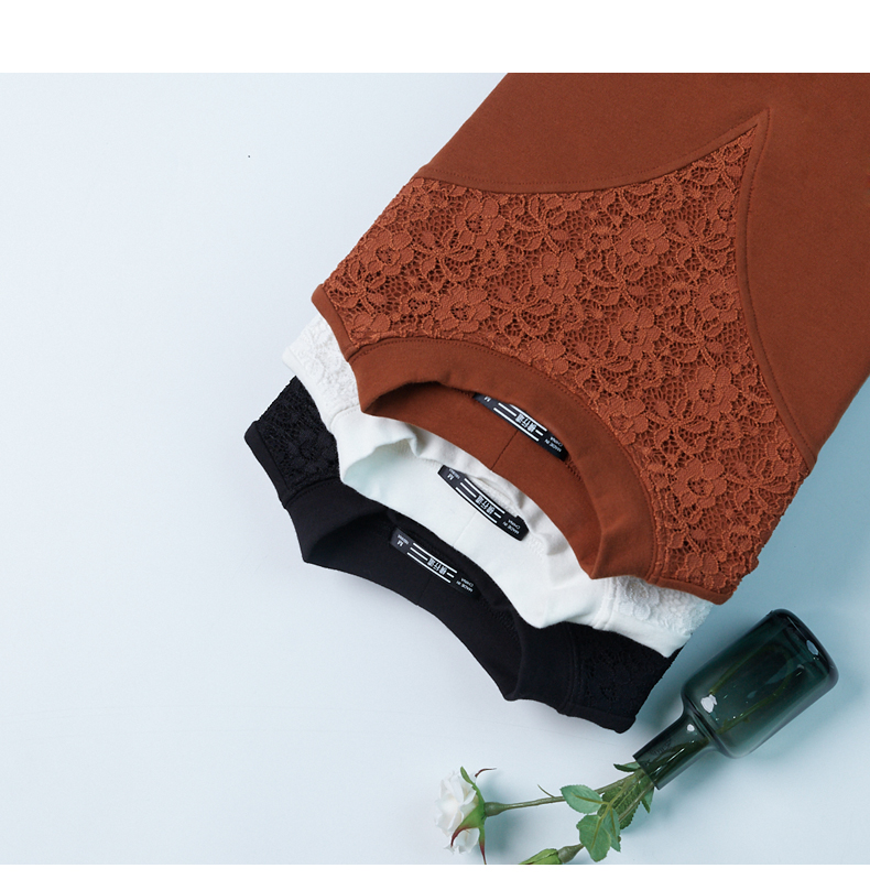 2019初秋新款半高領蕾絲黑色長袖女士打底衫t恤上衣小衫純色體恤1入