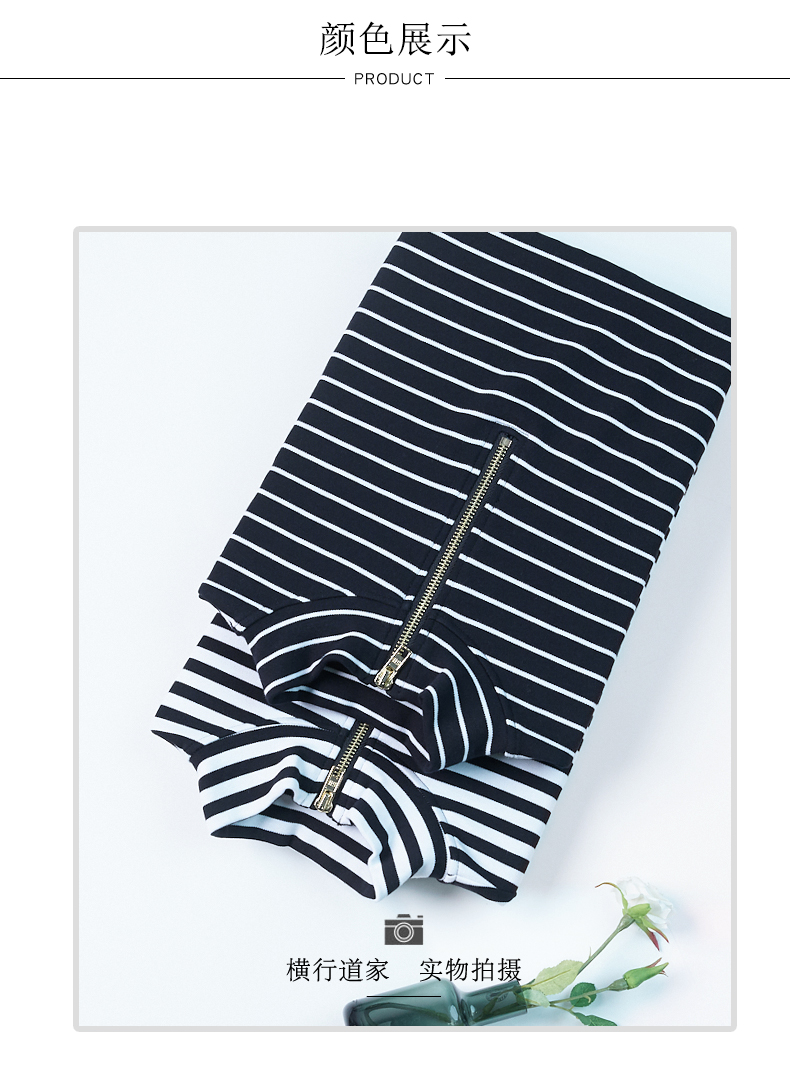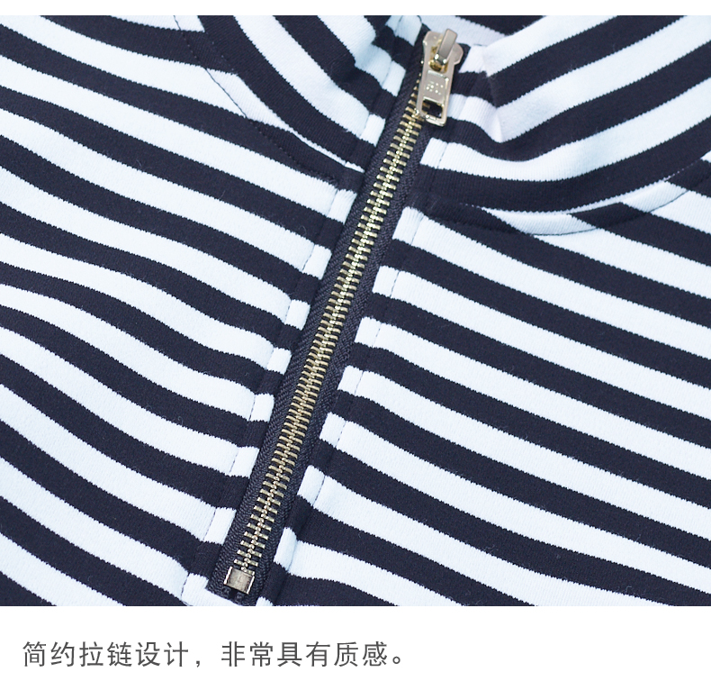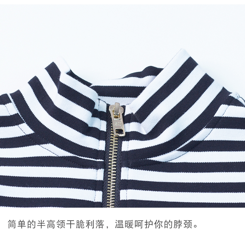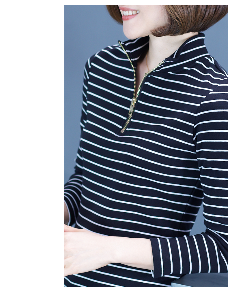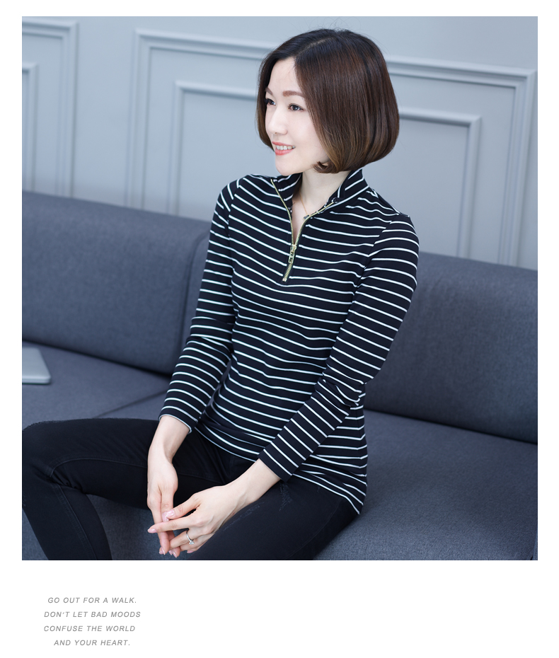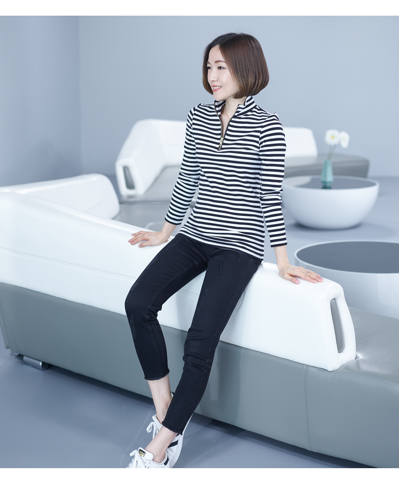 2019秋裝半高領條紋長袖女士加厚打底衫體恤拉鏈上衣t恤小衫外穿1入