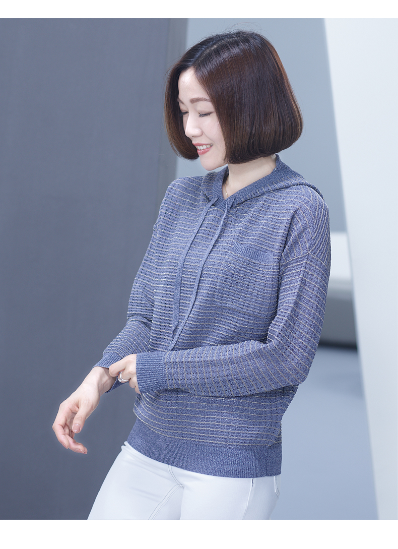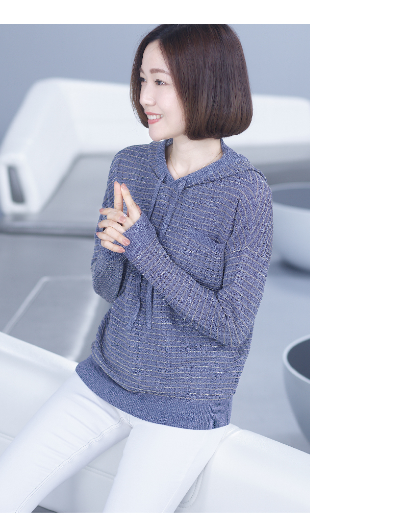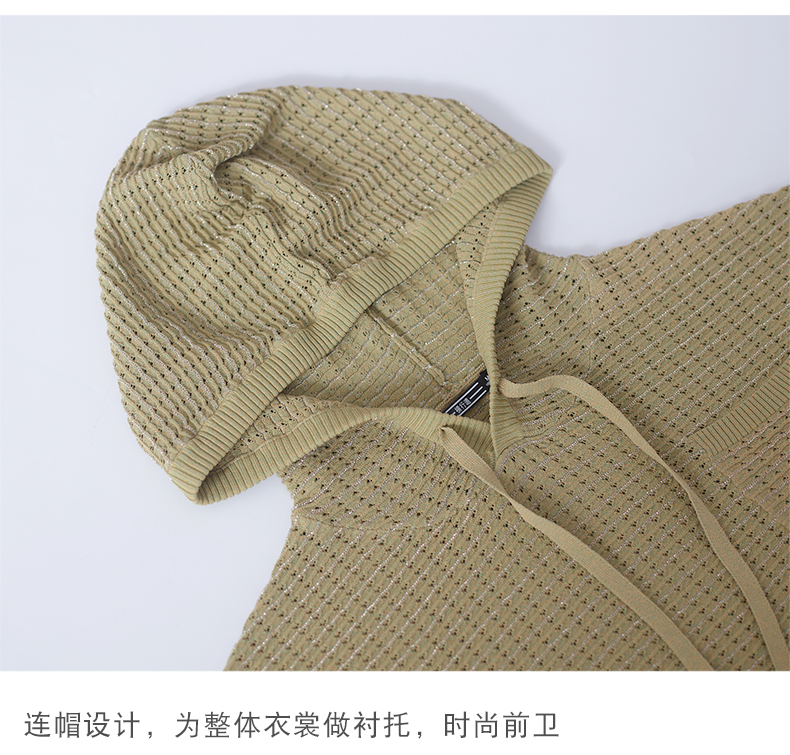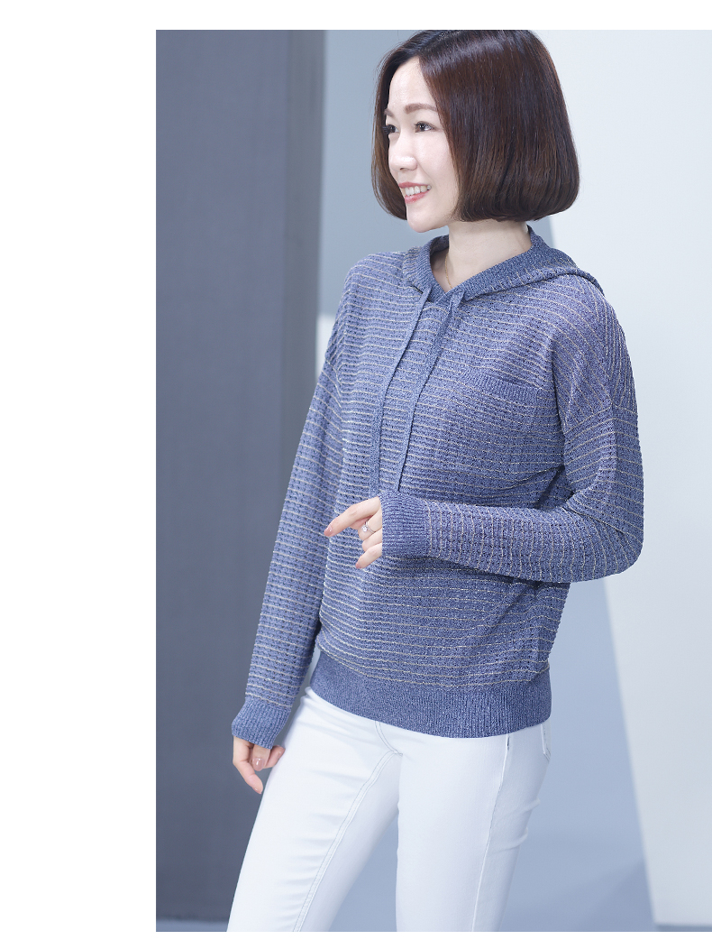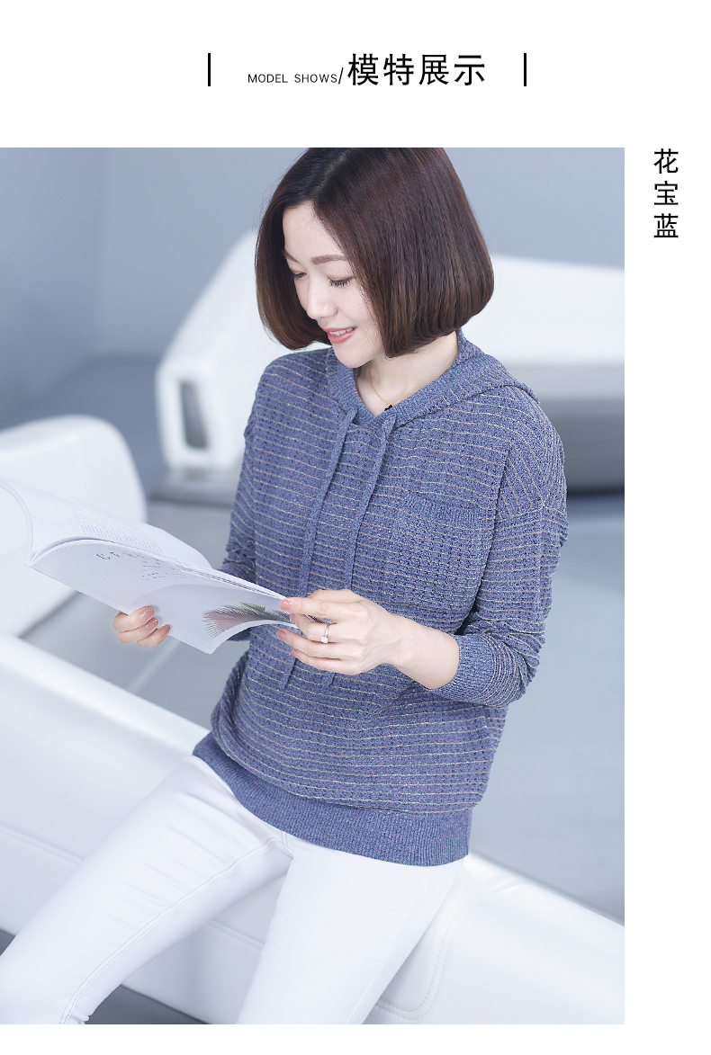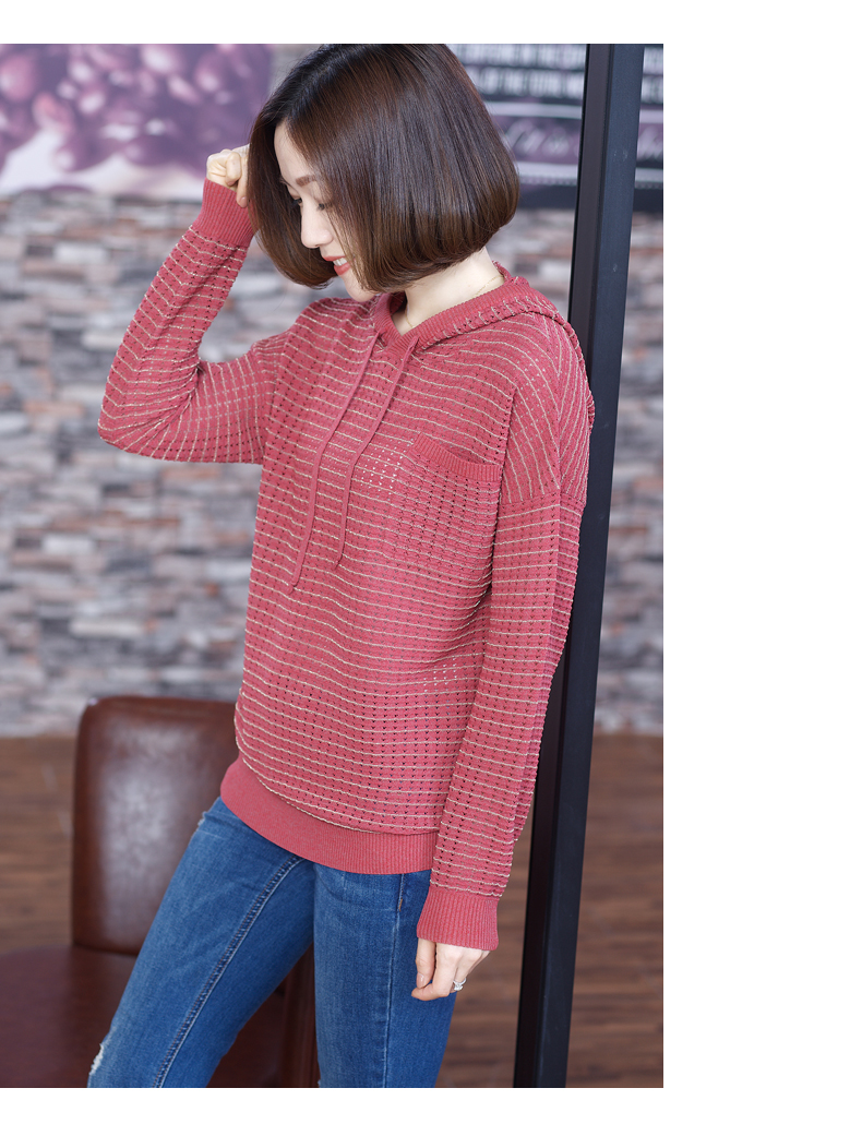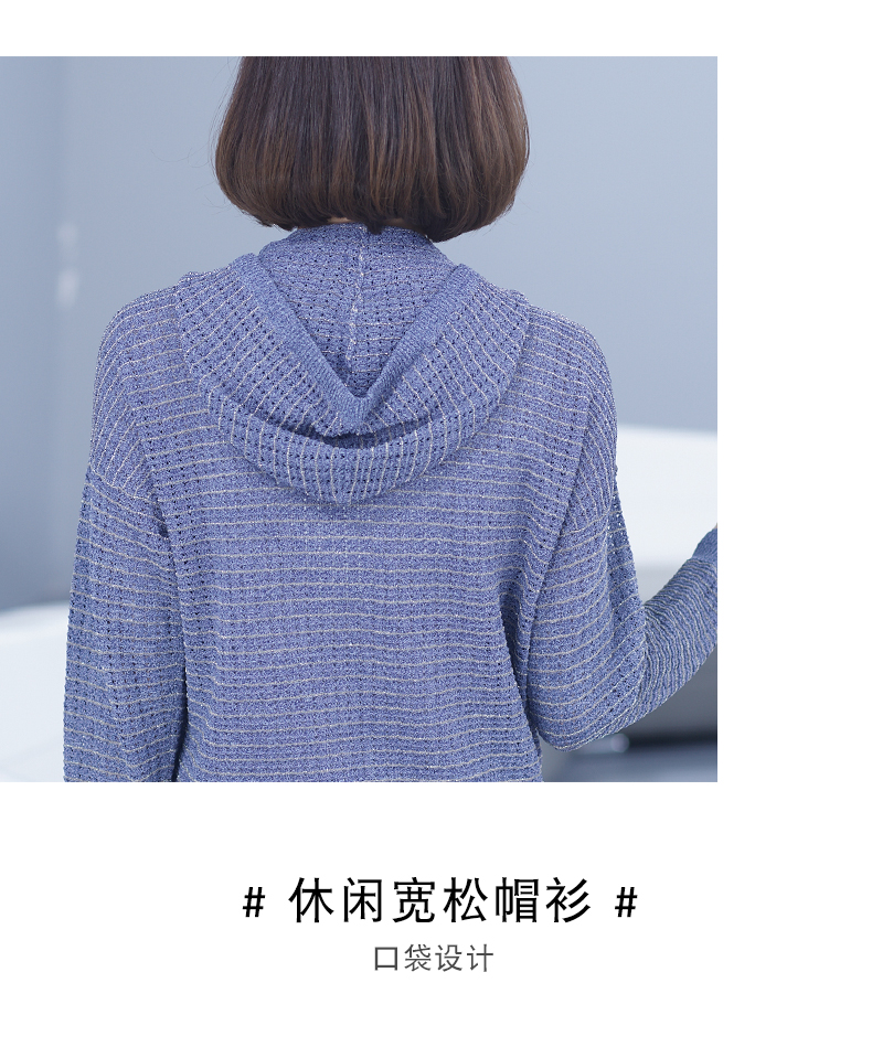 2019秋裝新款連帽寬松鏤空大碼女裝長袖針織衫連帽打底衫上衣外穿1入