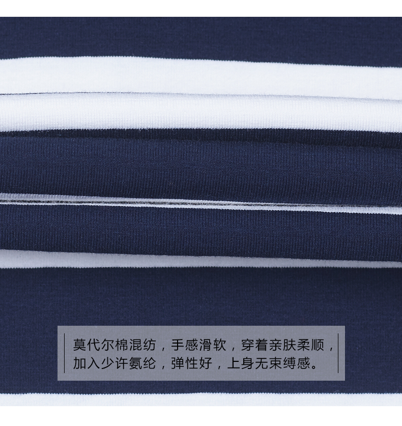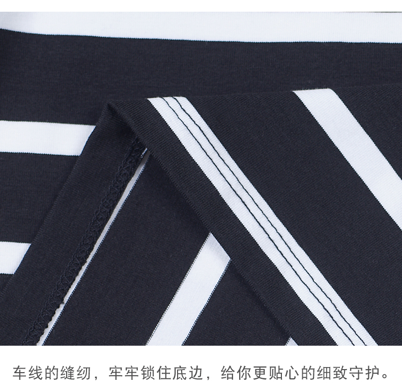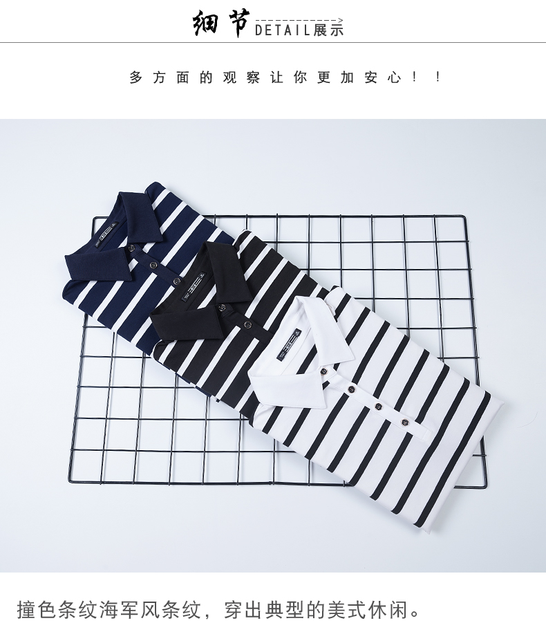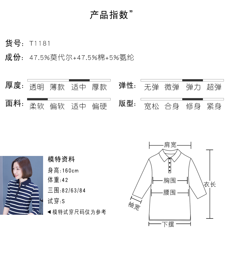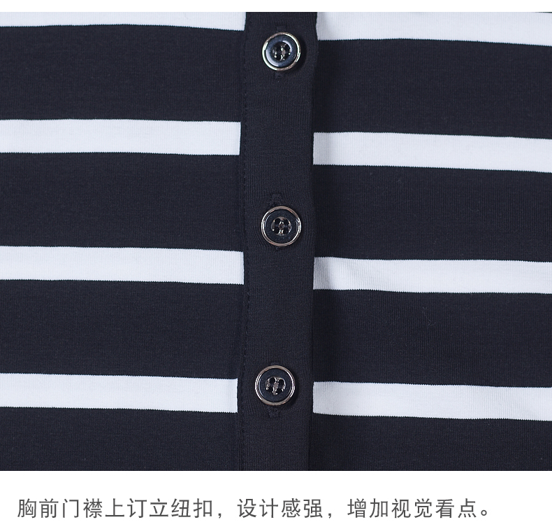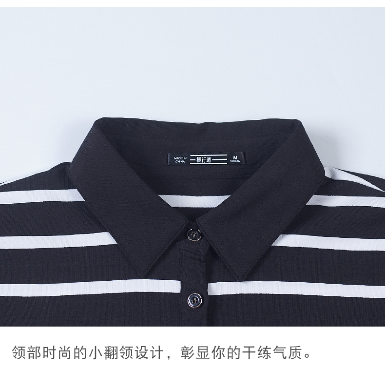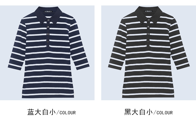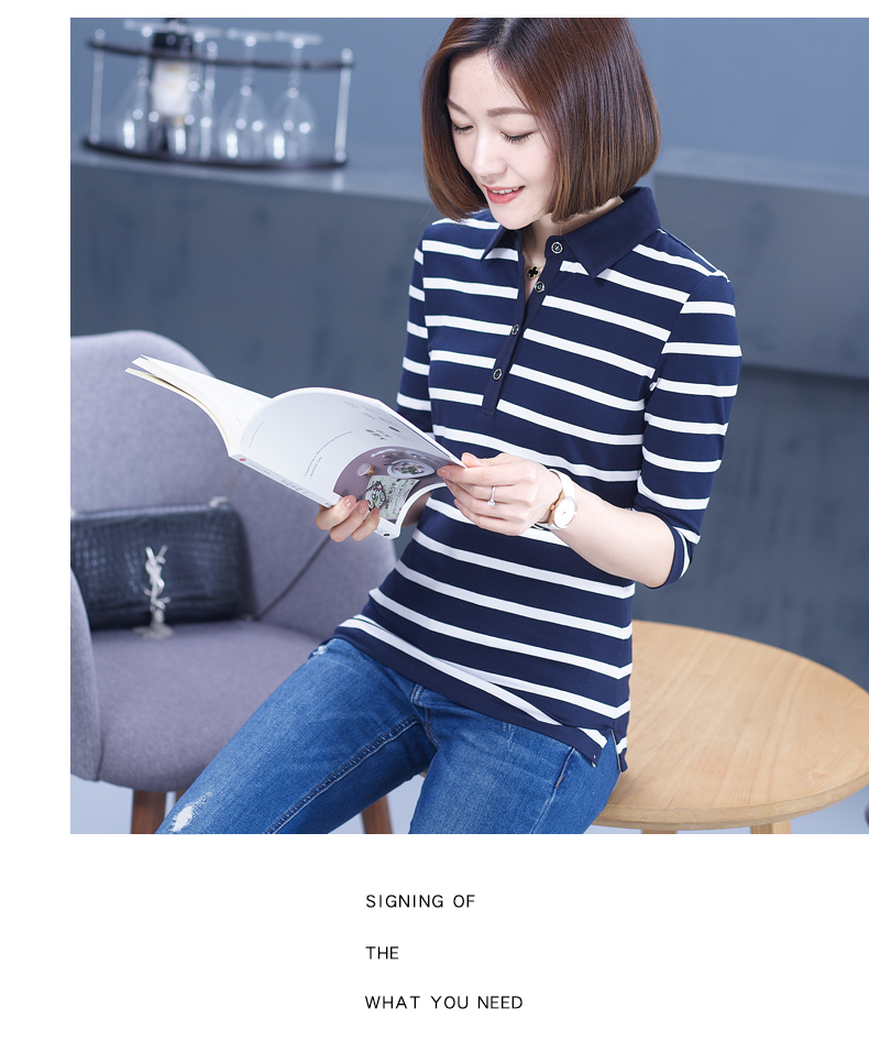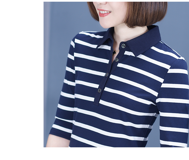 2019秋季女裝襯衫領條紋七分袖翻領半截袖體恤中袖打底衫t恤上衣1入