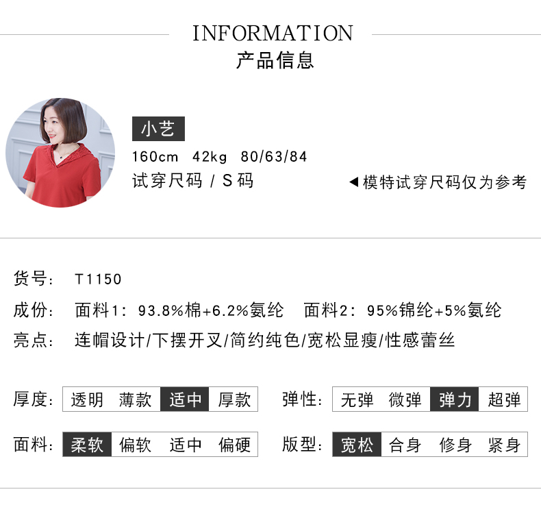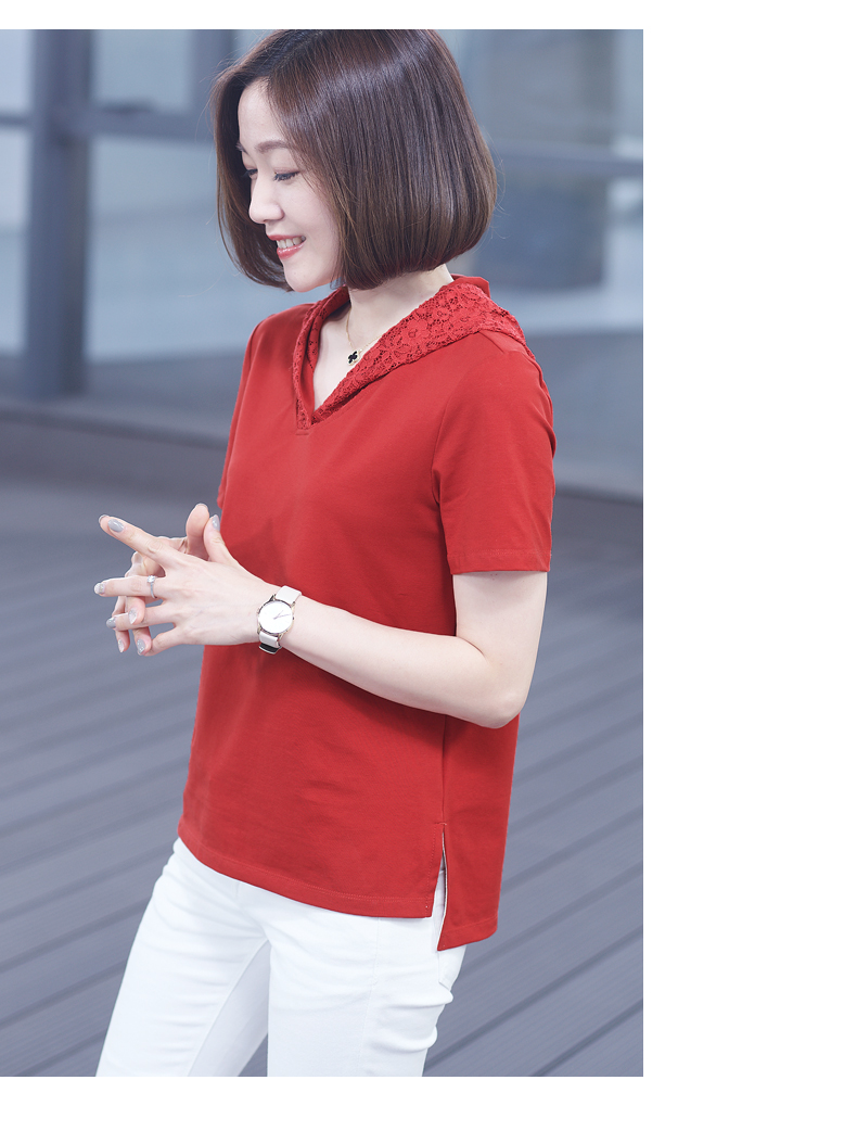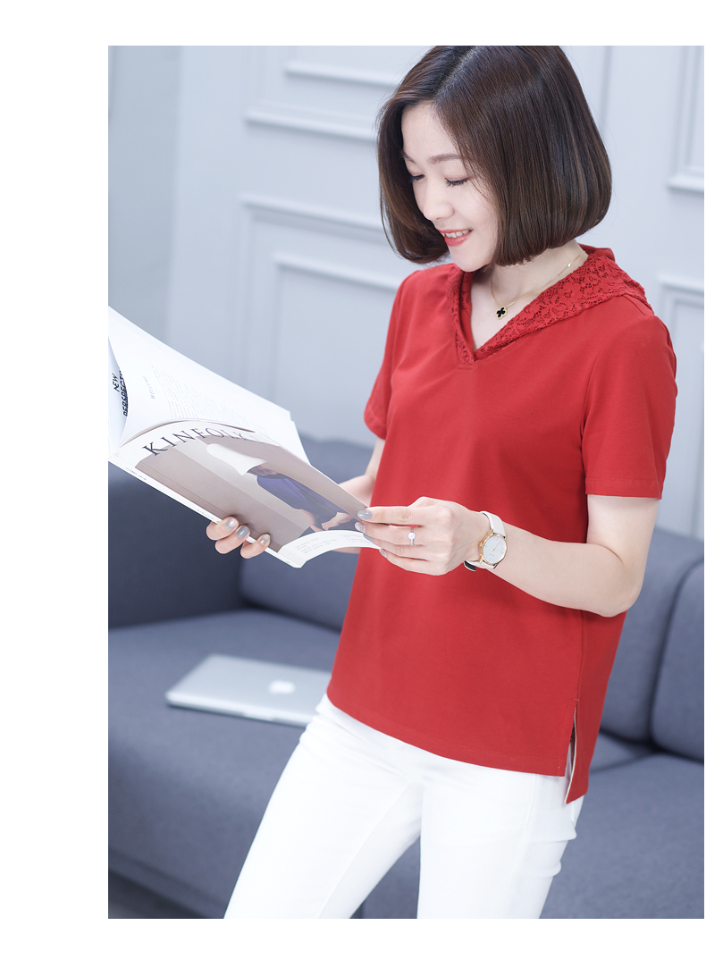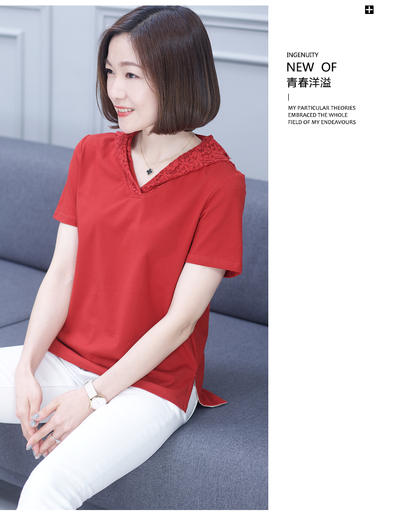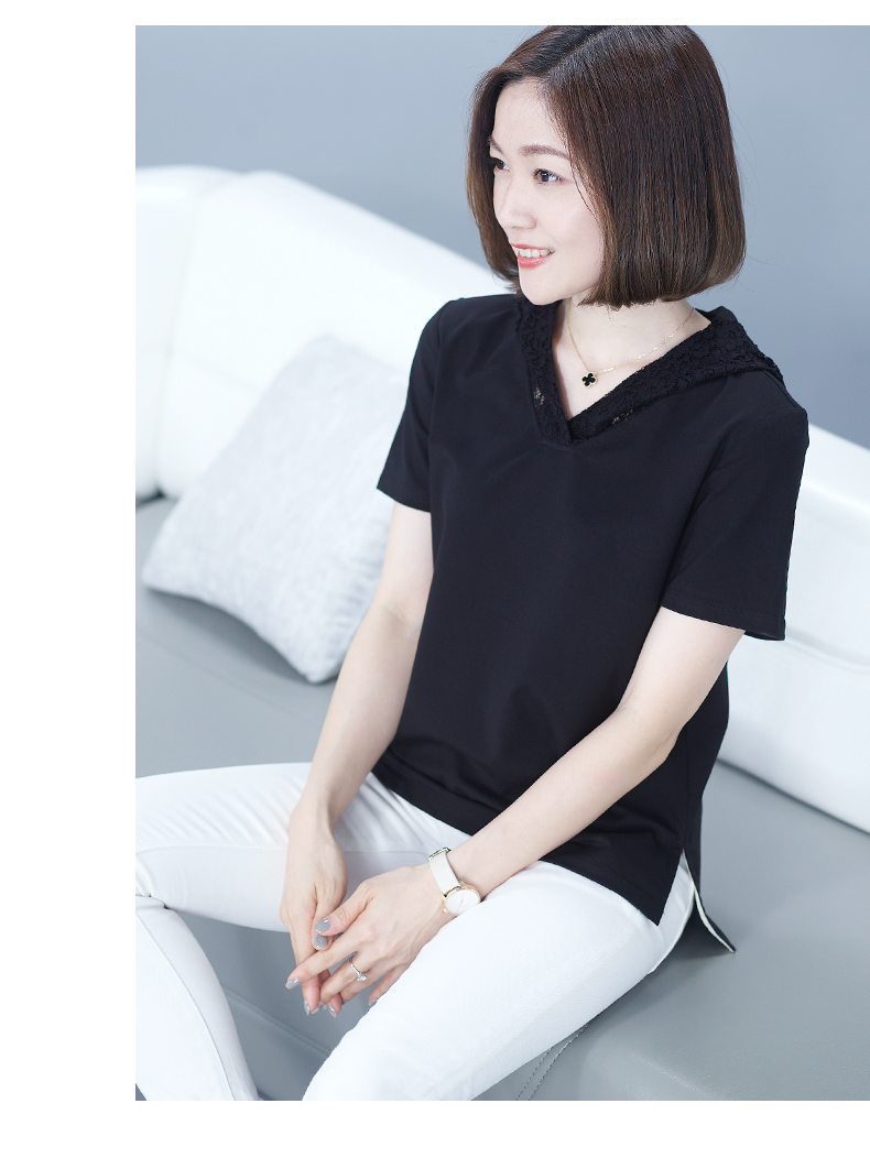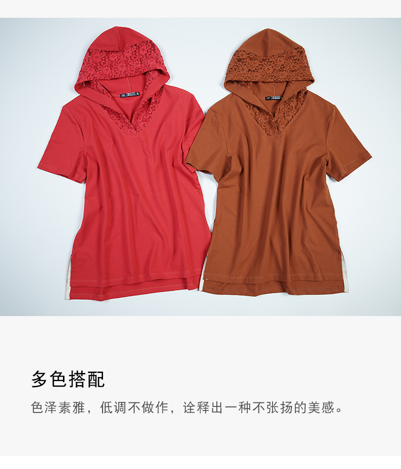 2019新款短袖t恤女寬松夏季蕾絲白色上衣服黑色連帽半袖體恤打底1入
