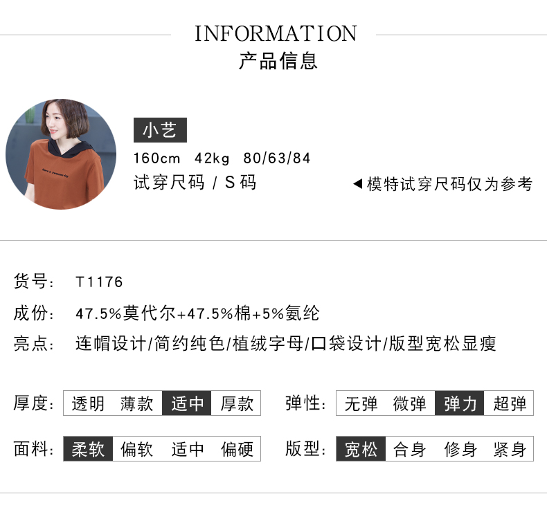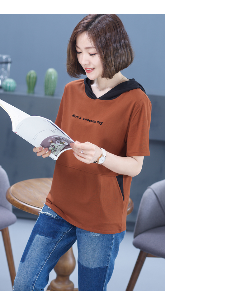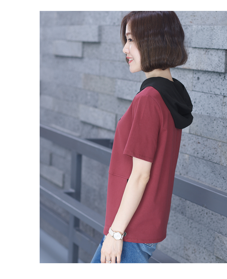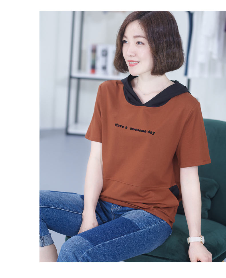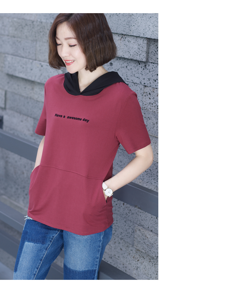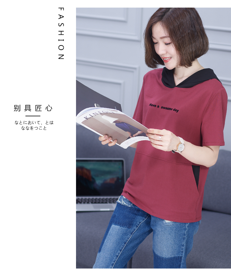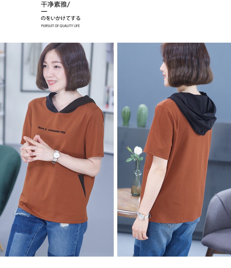 連帽短袖t恤女士2019夏裝新款寬松白色半袖字母印花上衣服打底衫1入
