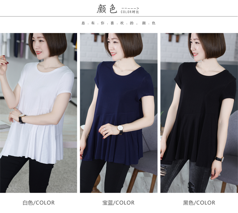 上衣服女裝中長款不規則下擺短袖休閑寬松大碼夏裝新款打底衫T恤1入