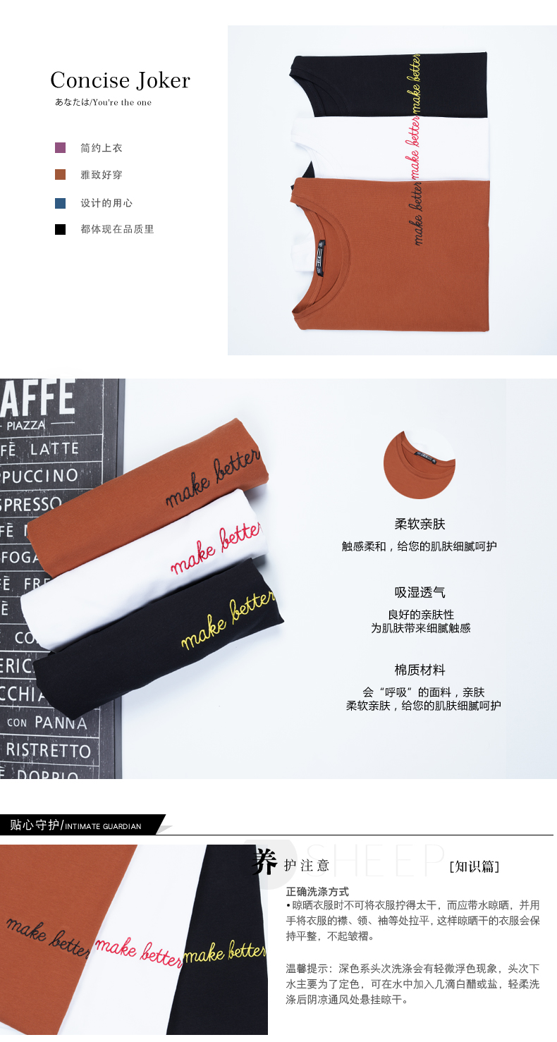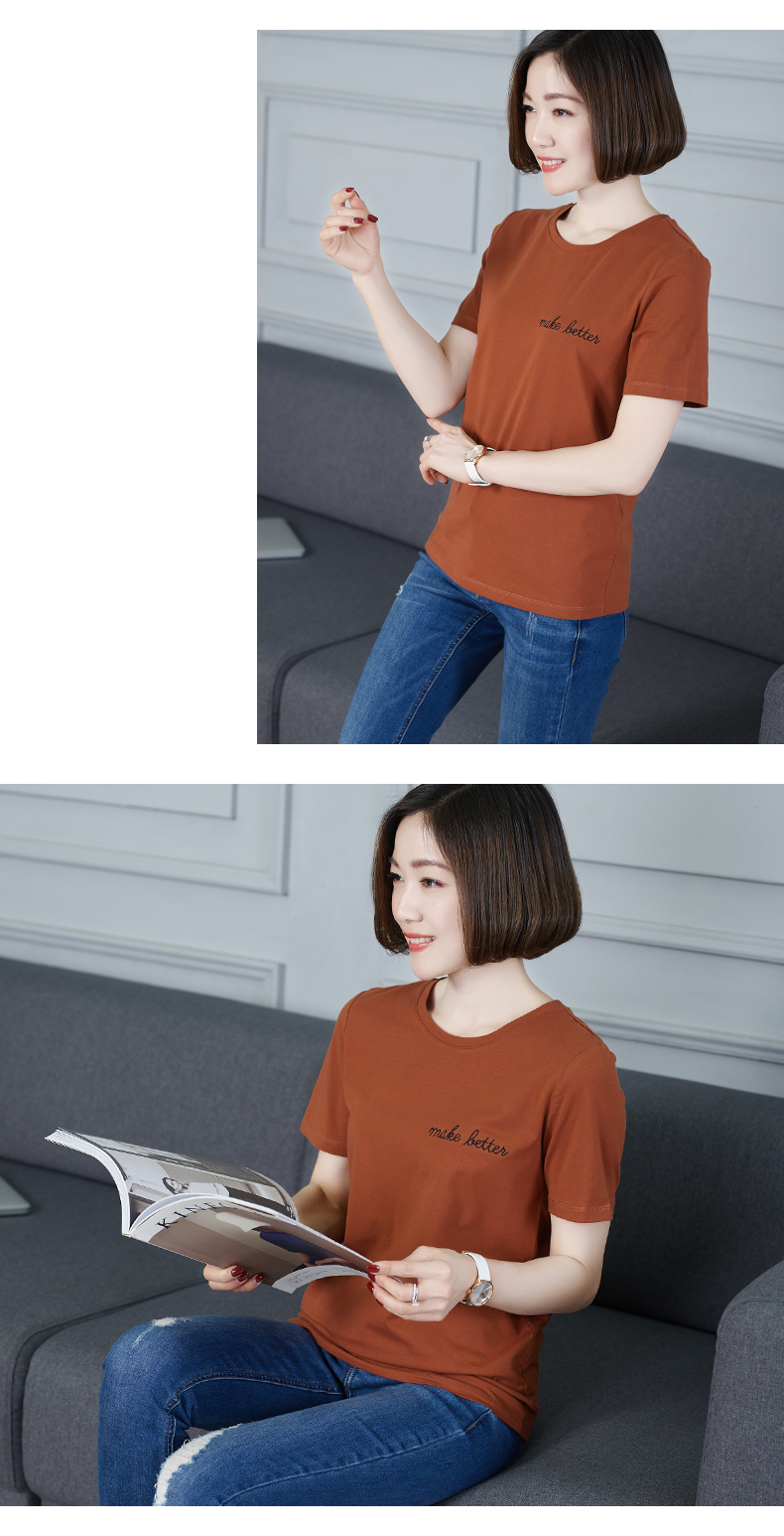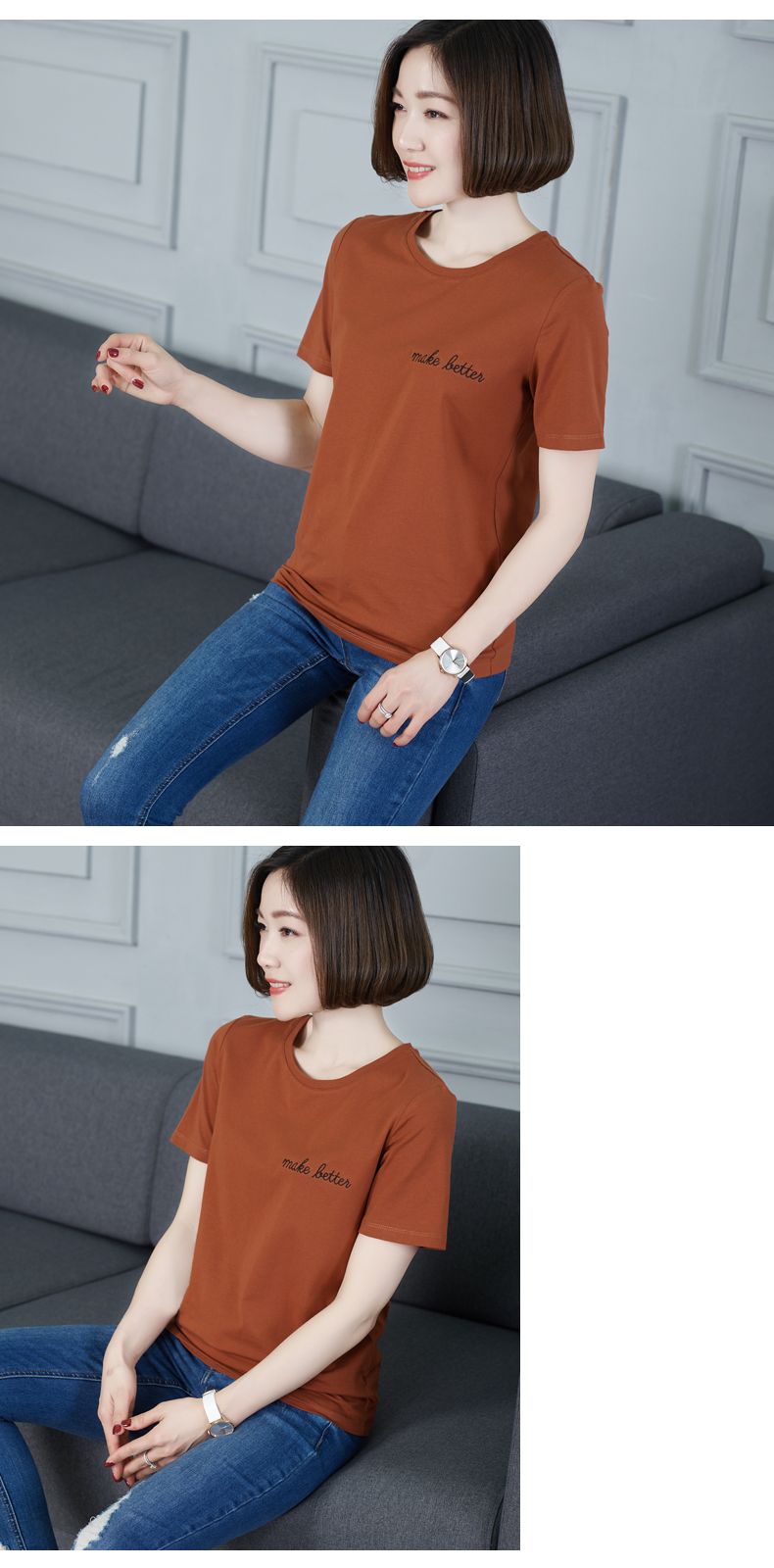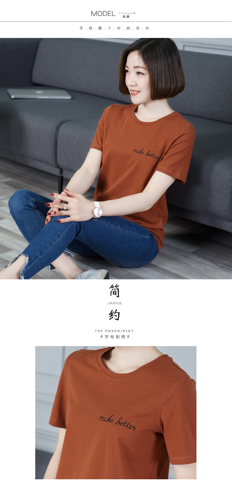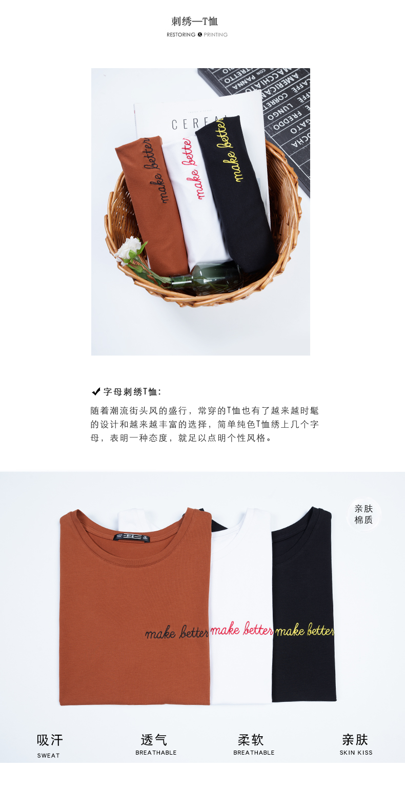 2019夏裝短袖t恤女裝韓版短袖字母刺繡上衣服白色寬松純色打底衫1入