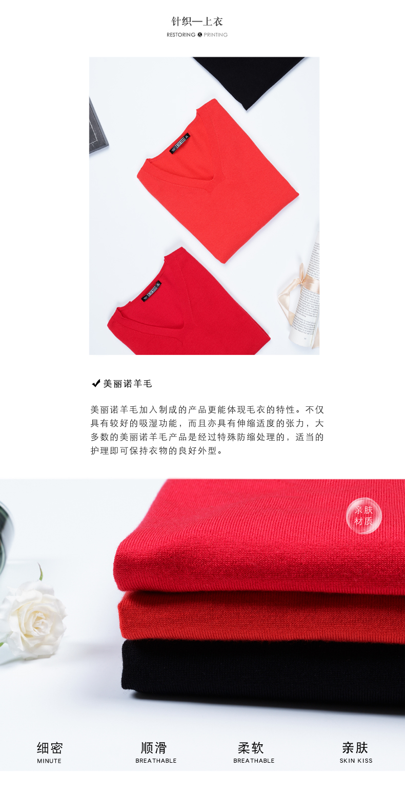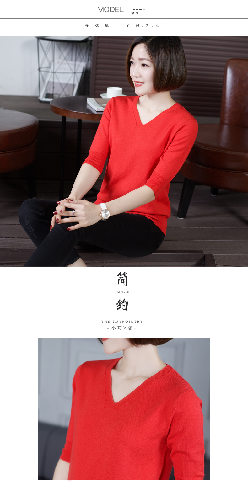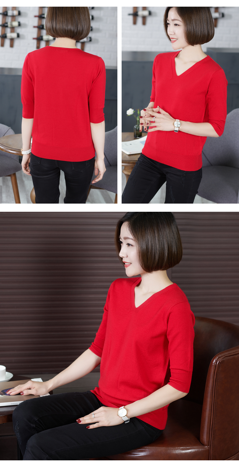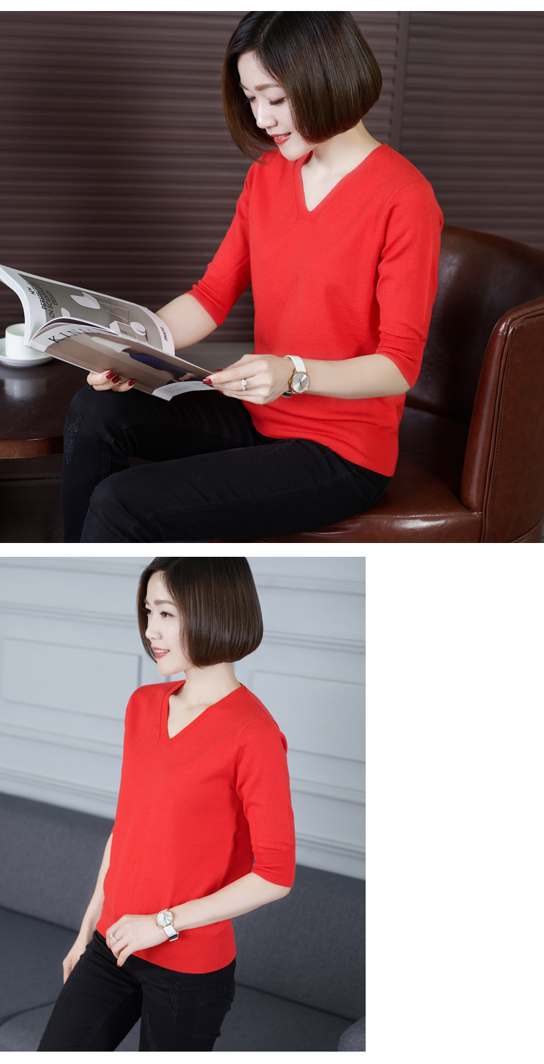 2019秋季新款韓版女裝V領中袖純色打底衫寬松羊毛衣針織衫七分袖1入
