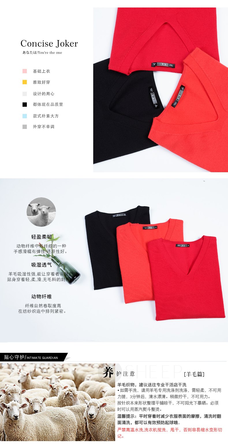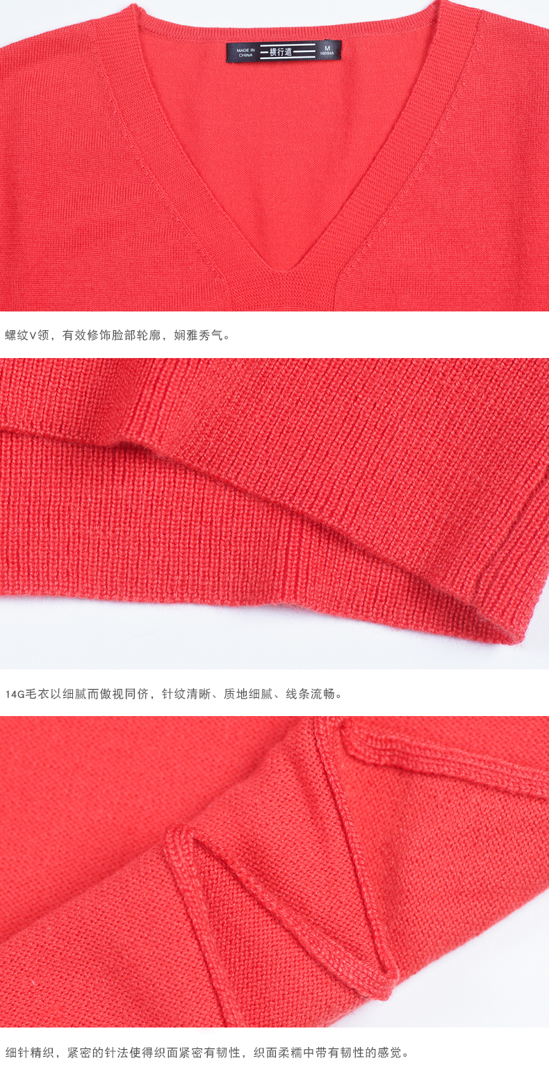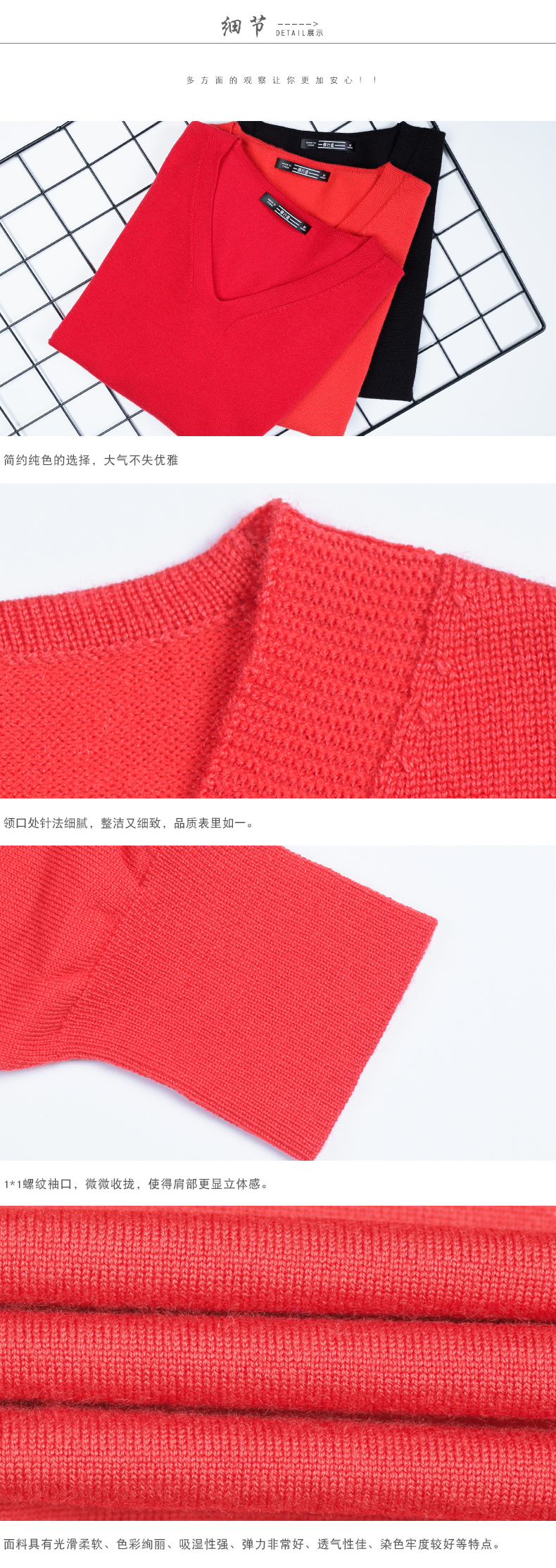 2019秋季新款韓版女裝V領中袖純色打底衫寬松羊毛衣針織衫七分袖1入