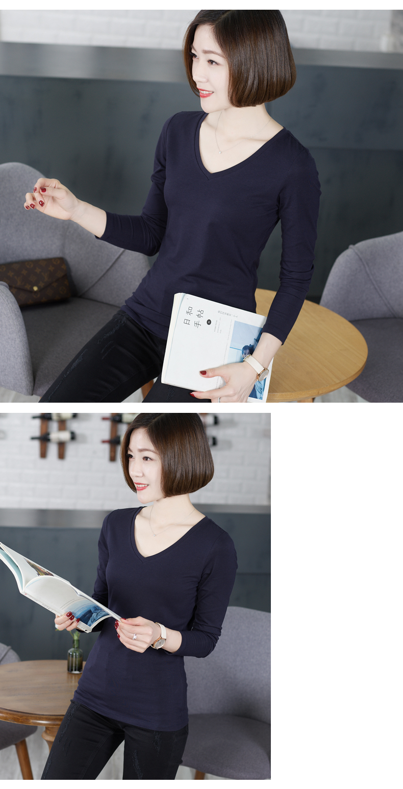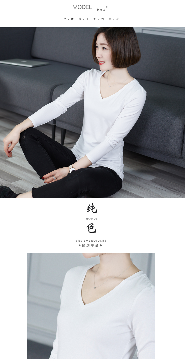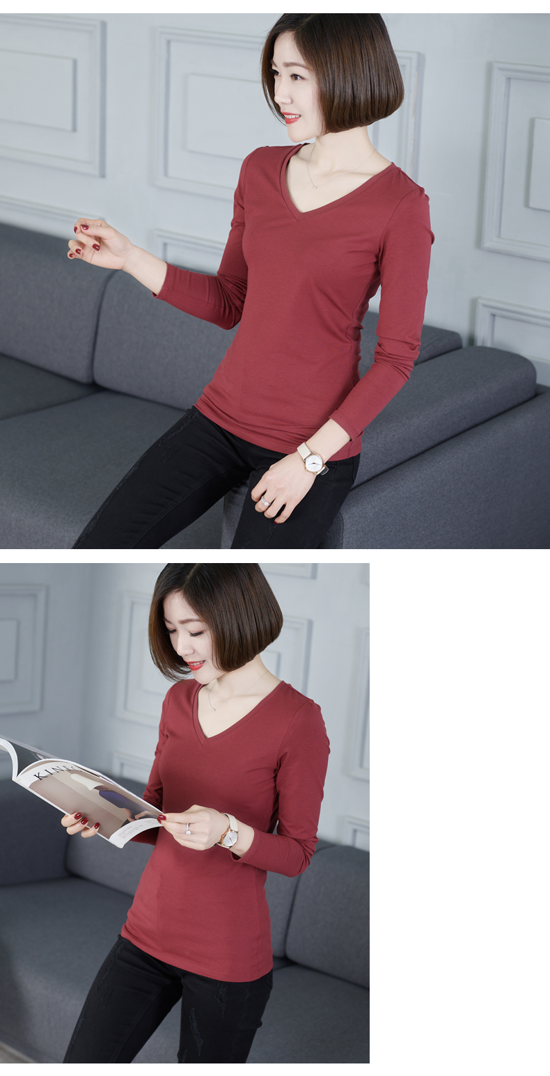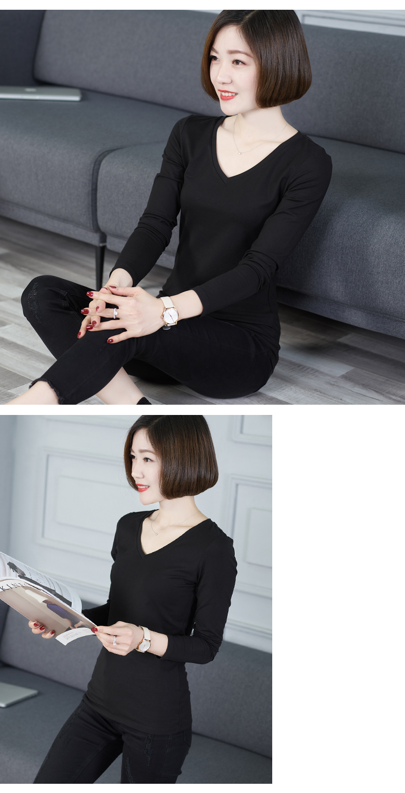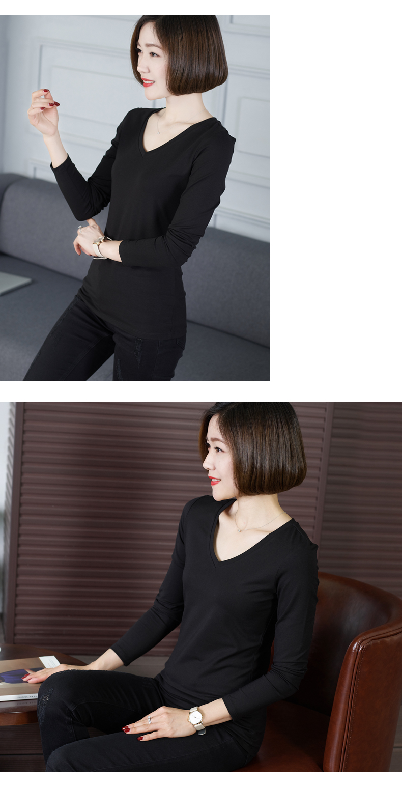 2019秋季女裝純色V領莫代爾打底衫韓版簡約上衣服T恤內搭韓版體恤1入