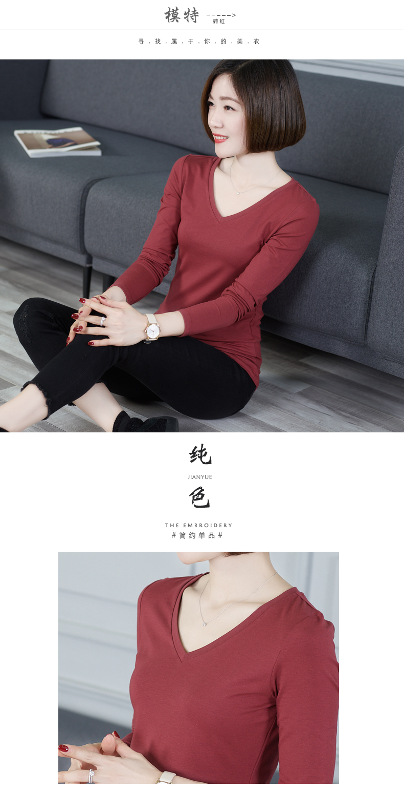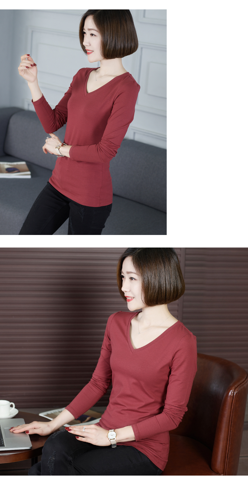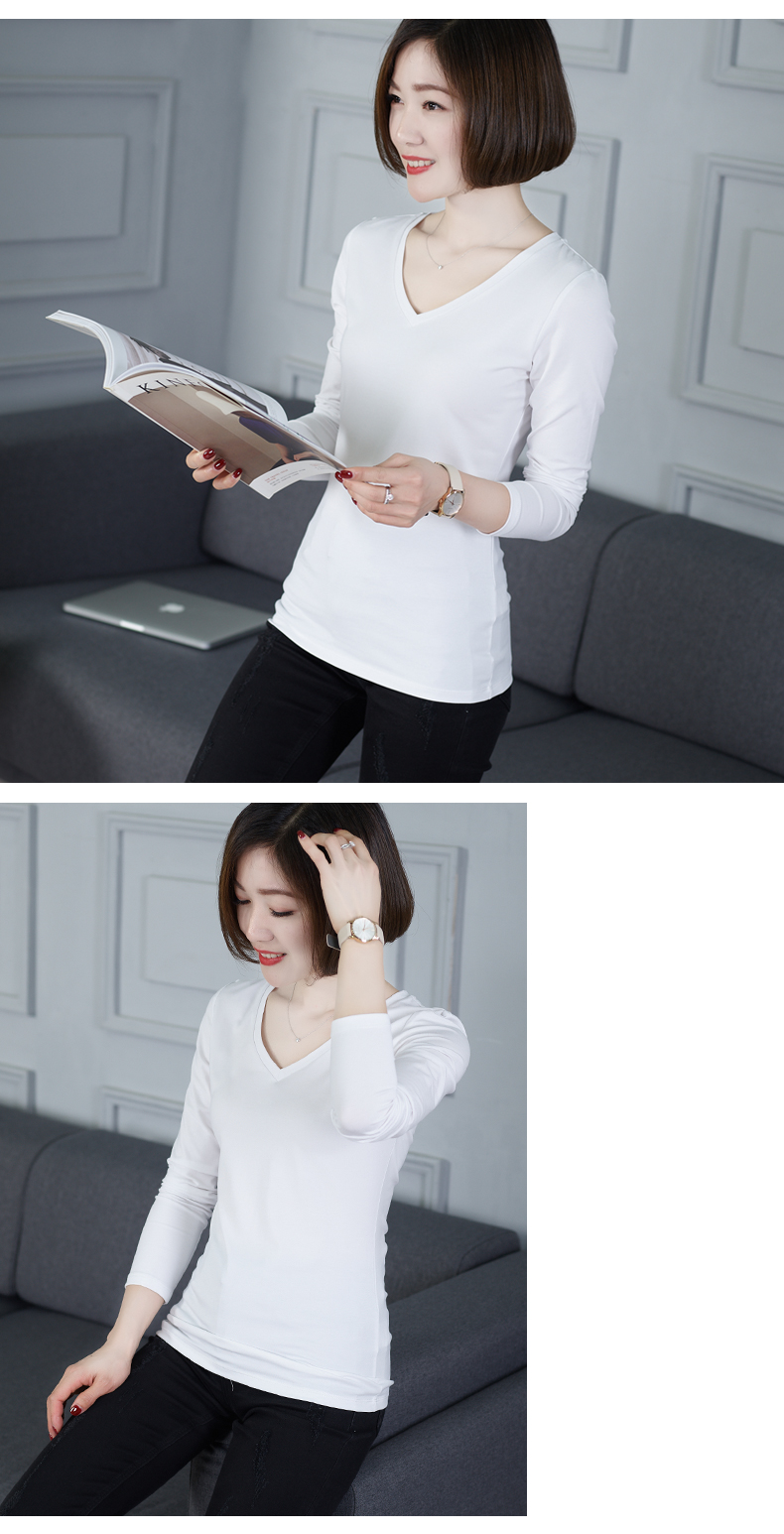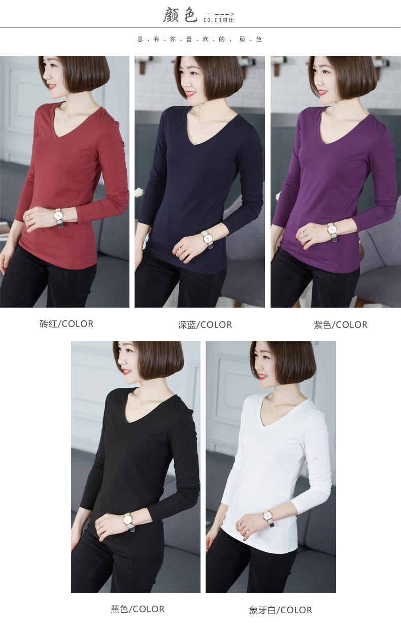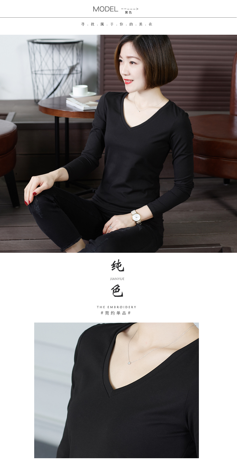 2019秋季女裝純色V領莫代爾打底衫韓版簡約上衣服T恤內搭韓版體恤1入