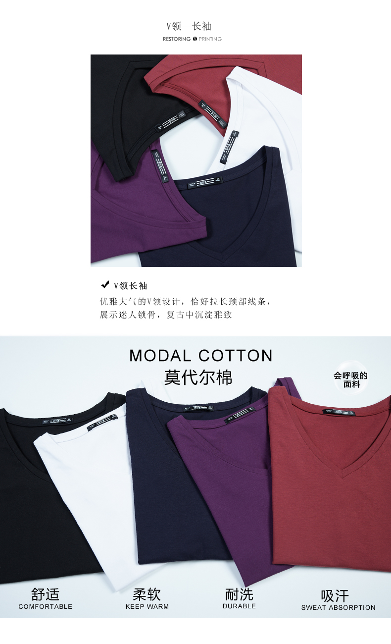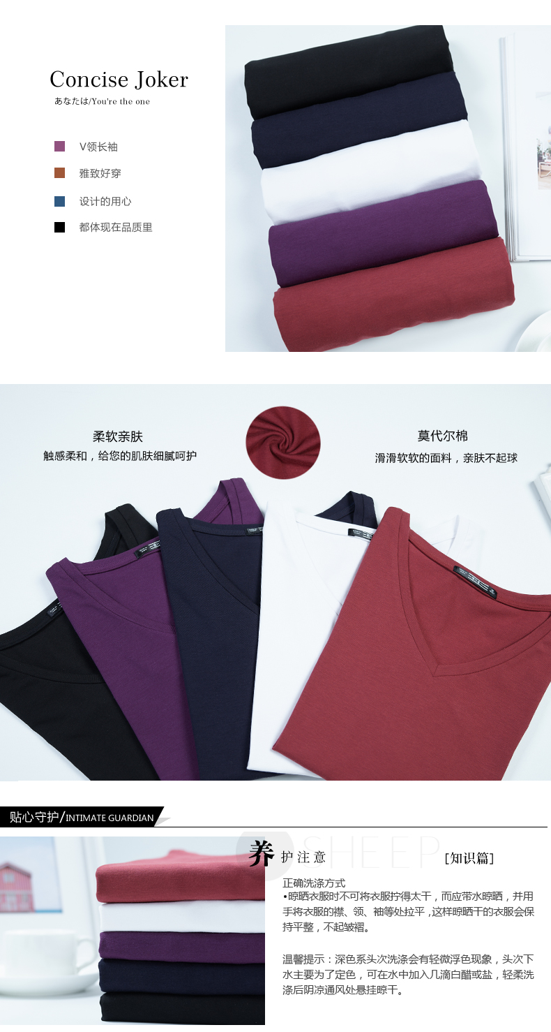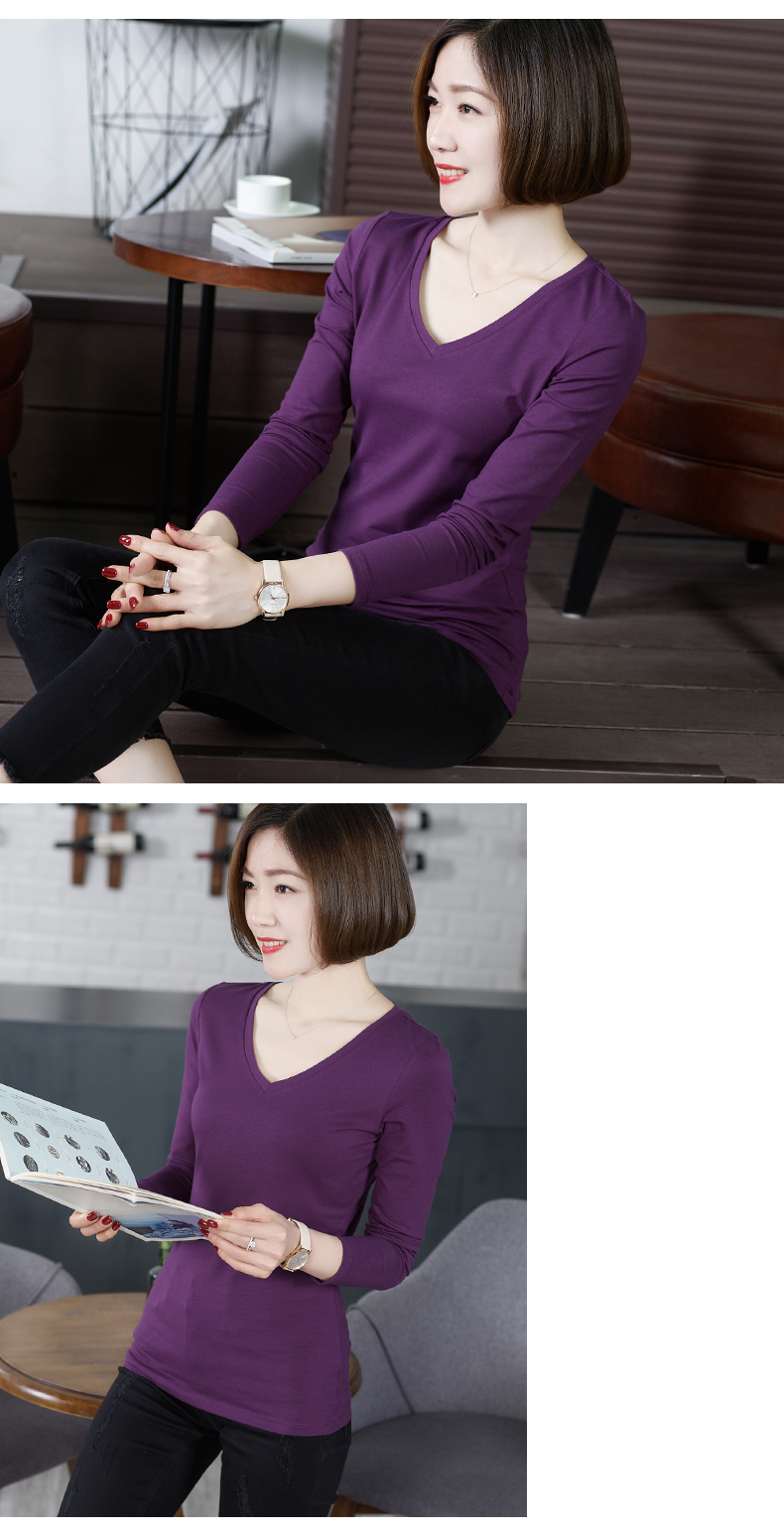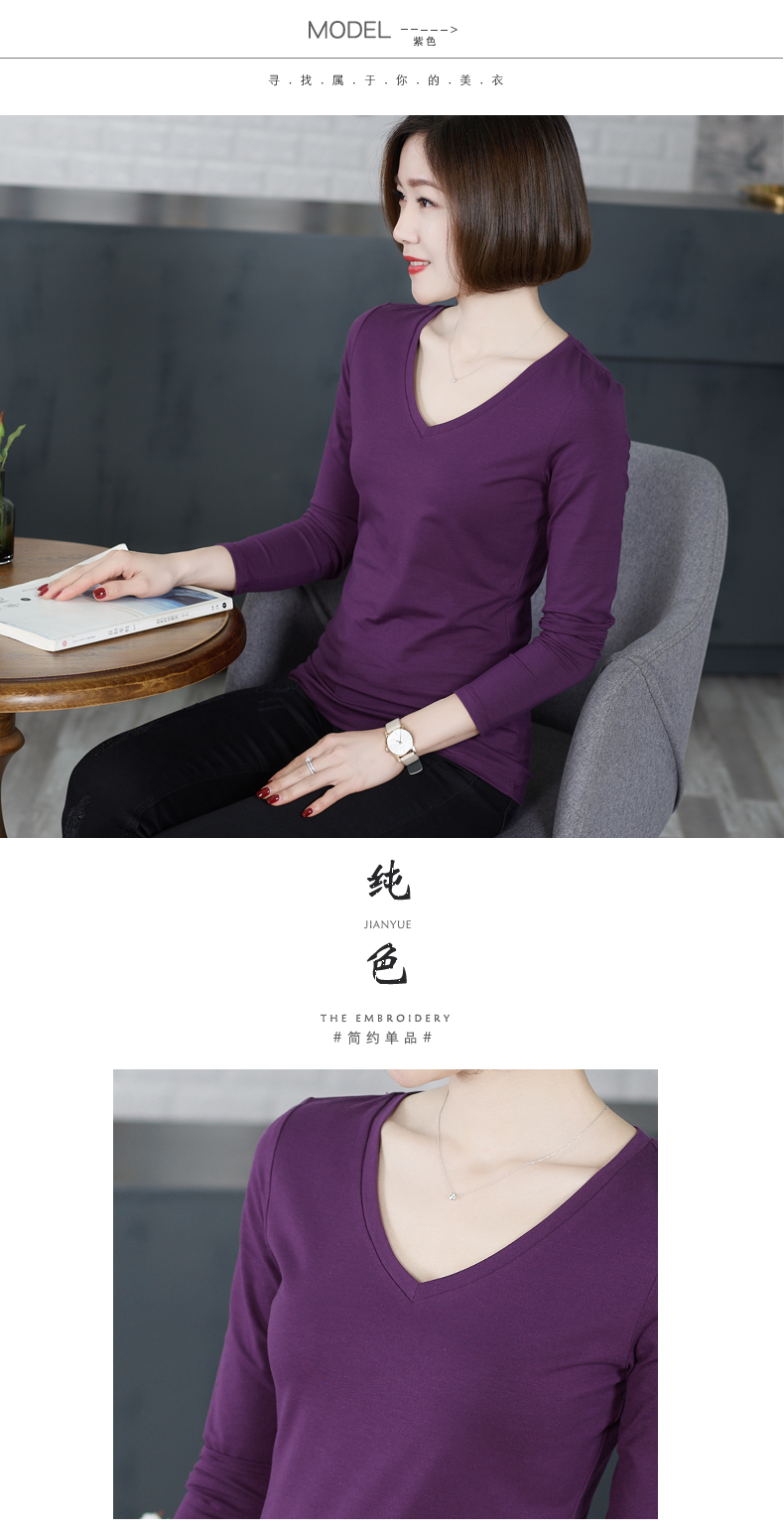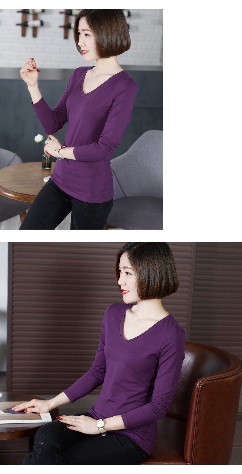 2019秋季女裝純色V領莫代爾打底衫韓版簡約上衣服T恤內搭韓版體恤1入