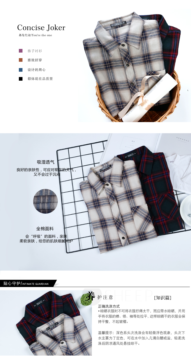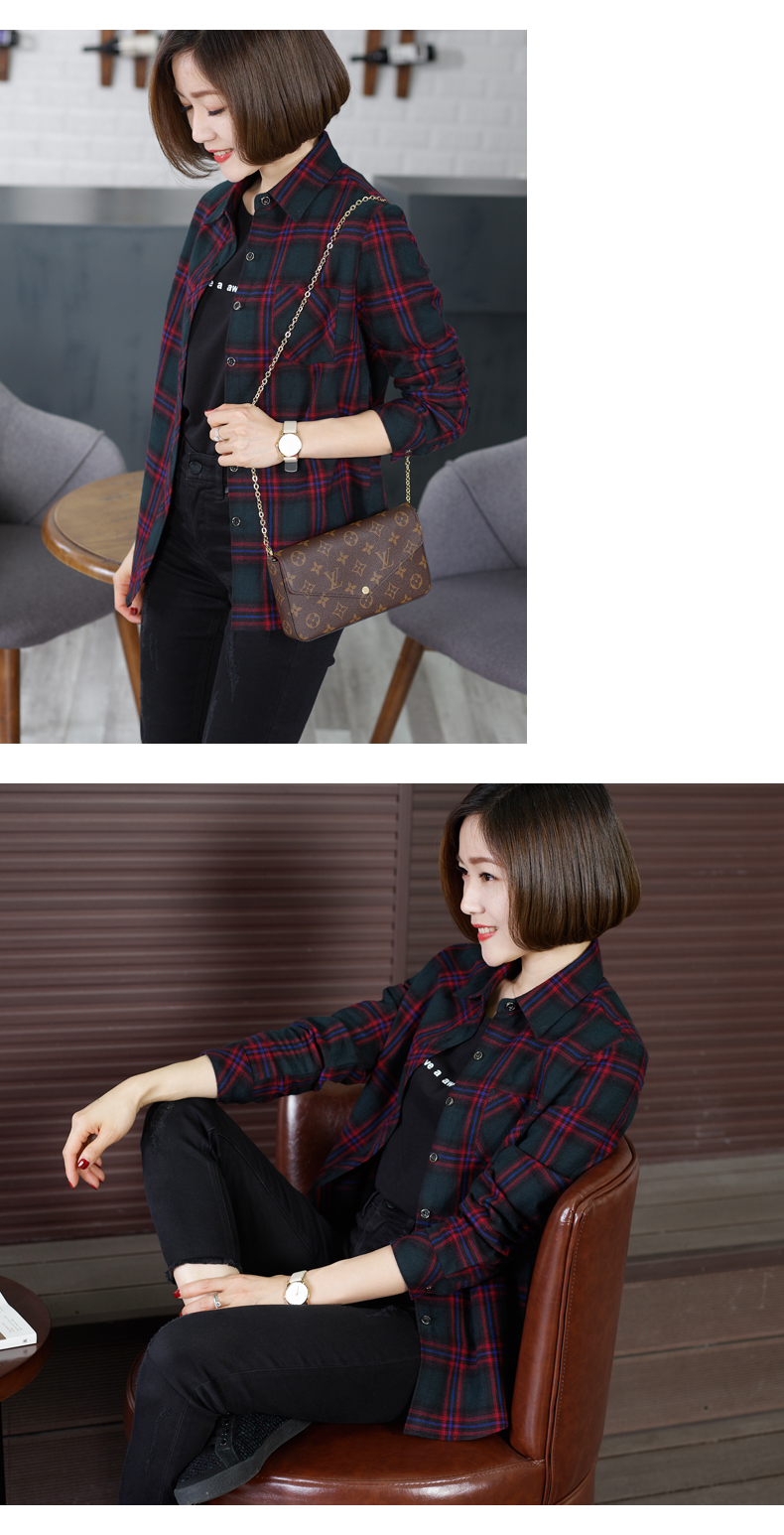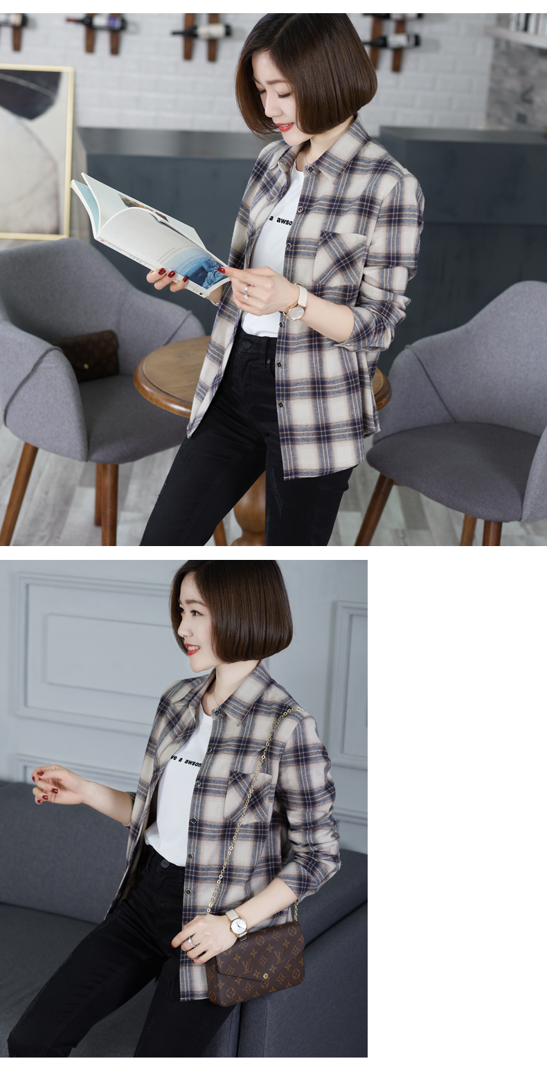 2019秋裝新款全棉復古格子襯衫女小眾休閑寬松長袖純棉大碼上衣服1入