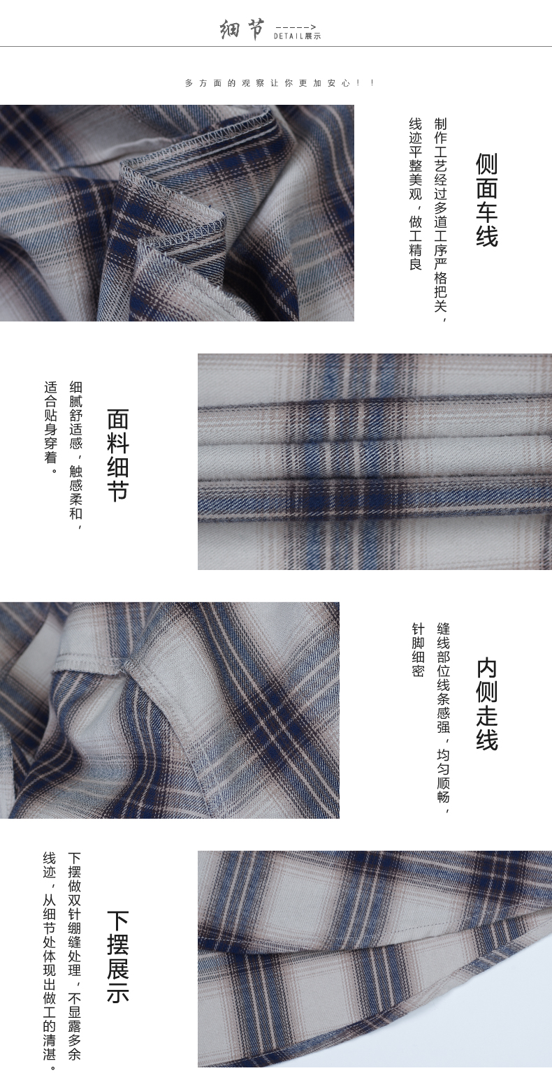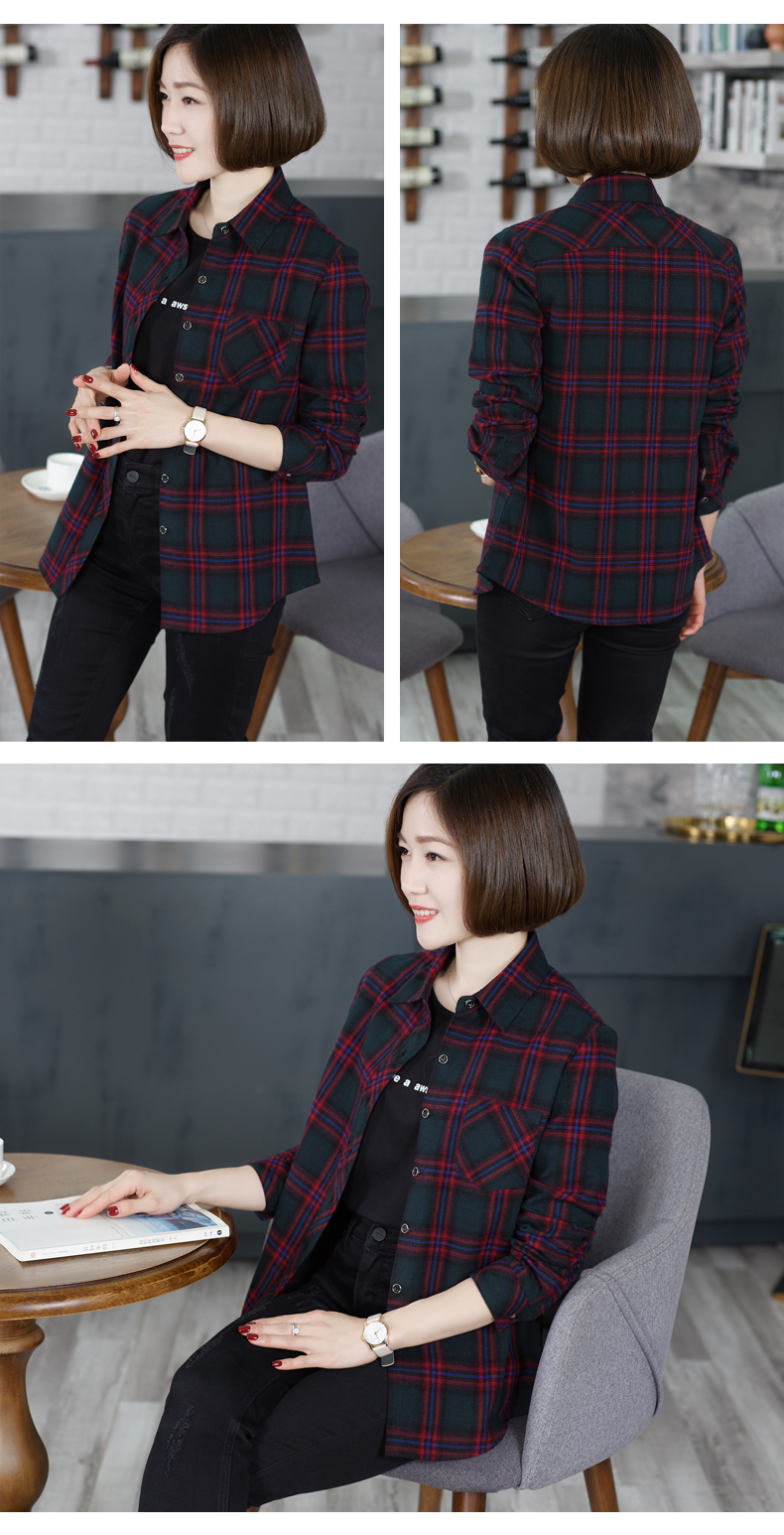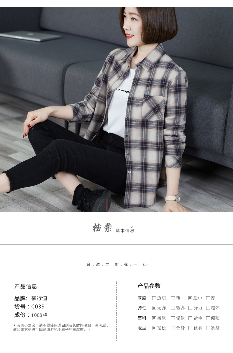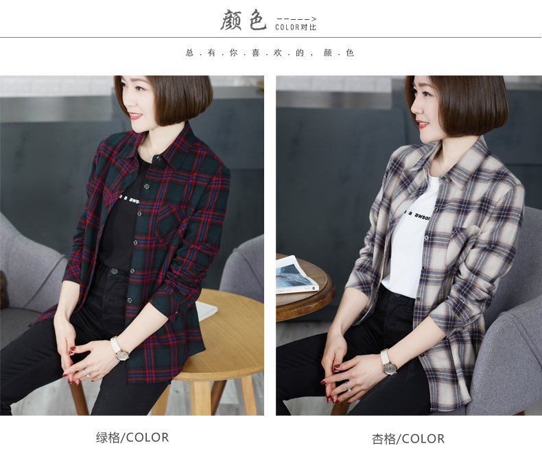 2019秋裝新款全棉復古格子襯衫女小眾休閑寬松長袖純棉大碼上衣服1入