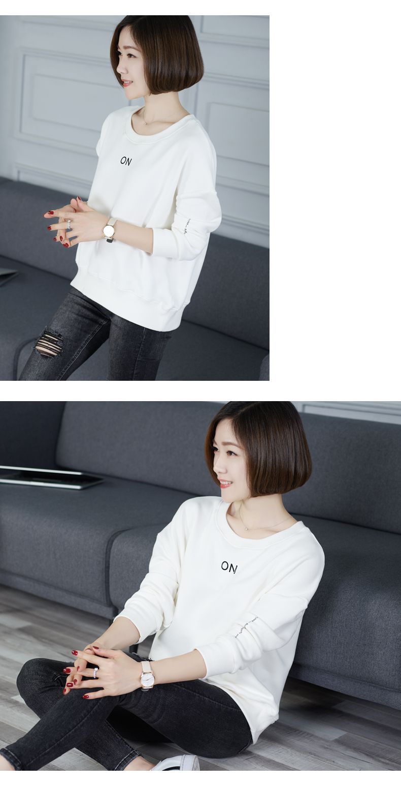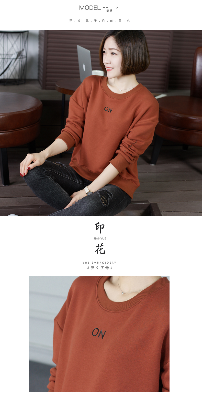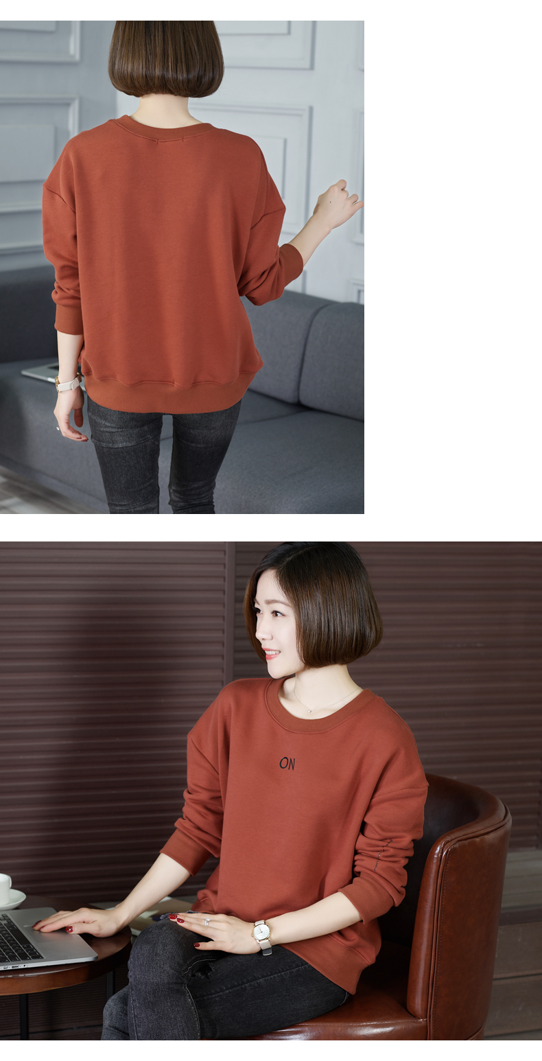 2019秋裝新款大碼女裝圓領字母印花寬松長袖套頭衛衣純色韓版上衣1入