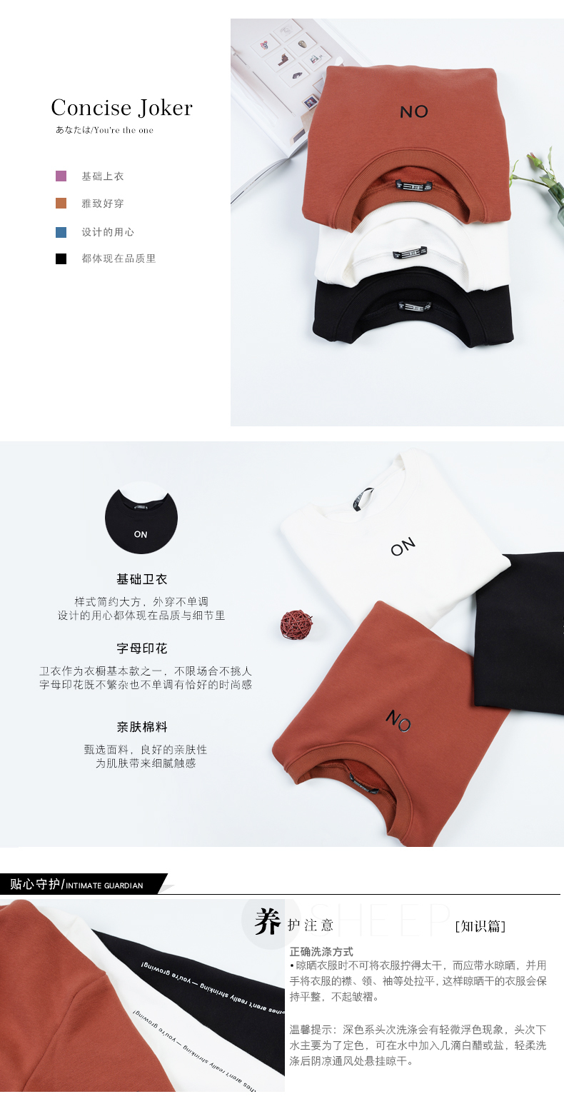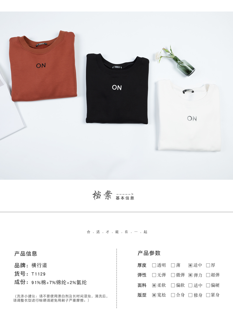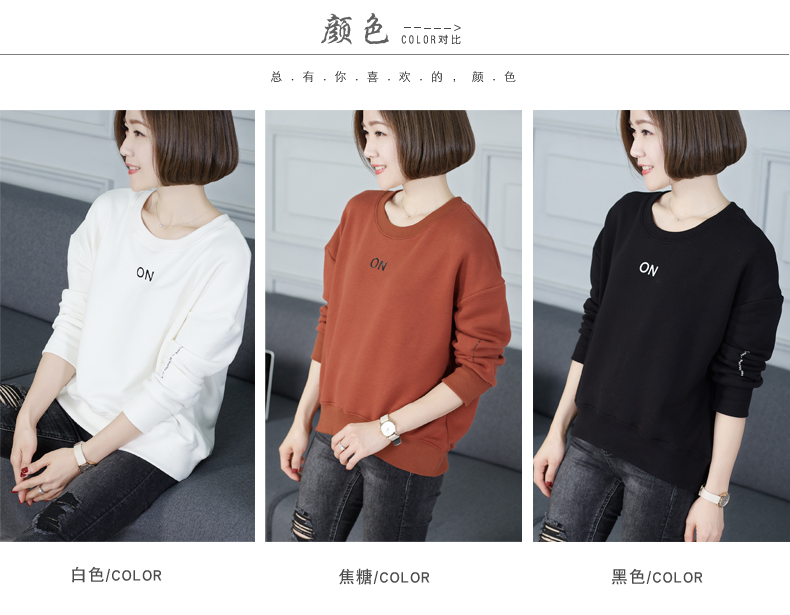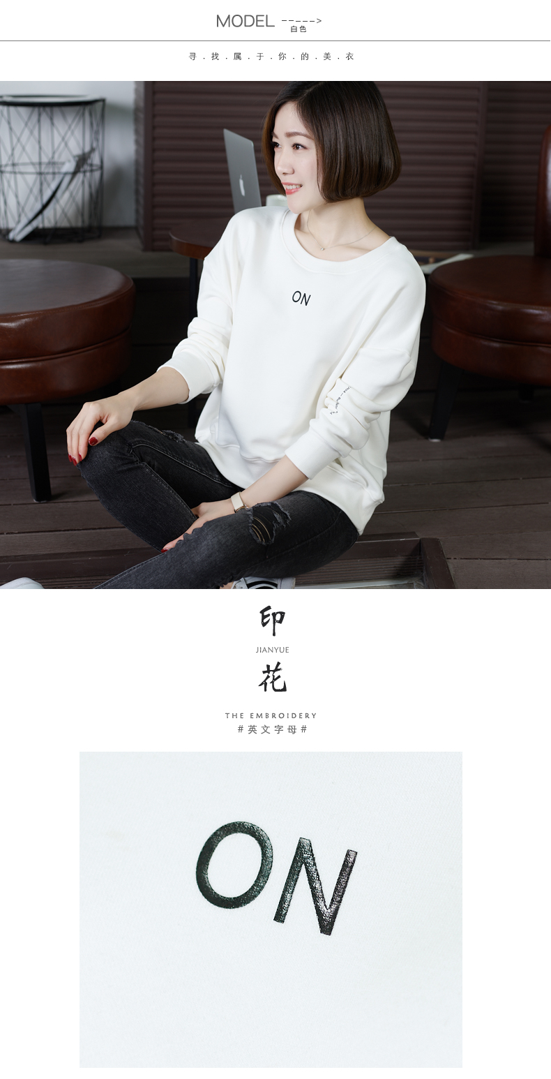2019秋裝新款大碼女裝圓領字母印花寬松長袖套頭衛衣純色韓版上衣1入