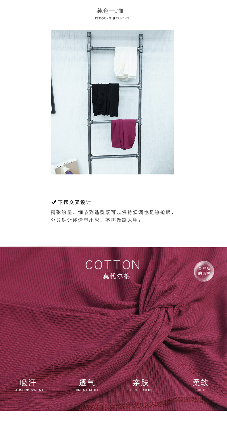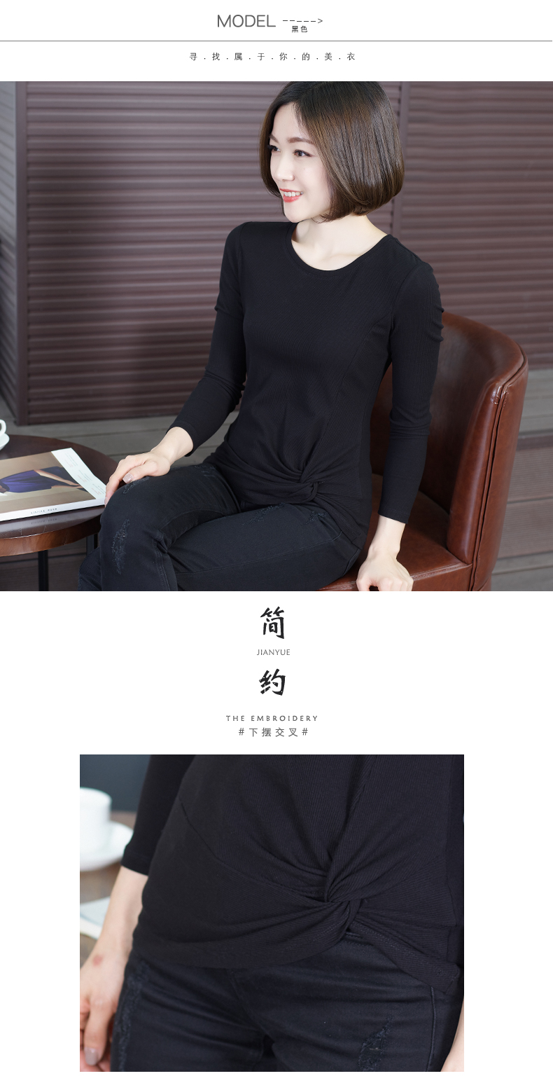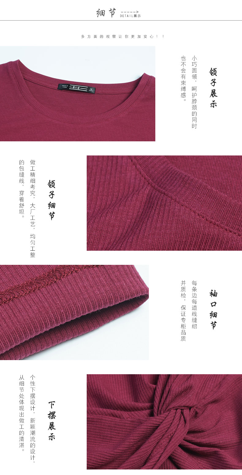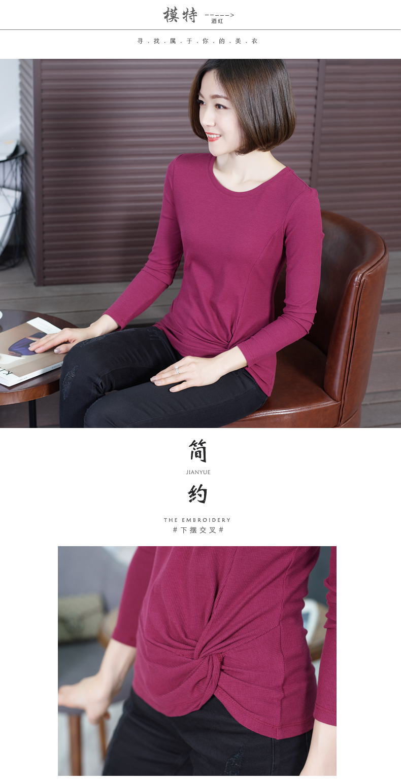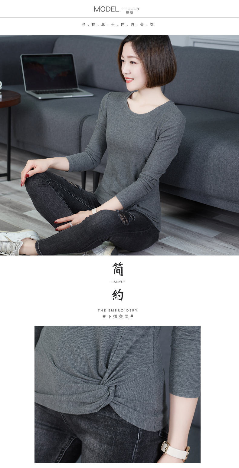 韓版女裝修身長袖圓領純色上衣服洋氣打底衫蝴蝶結莫代爾秋裝T恤1入