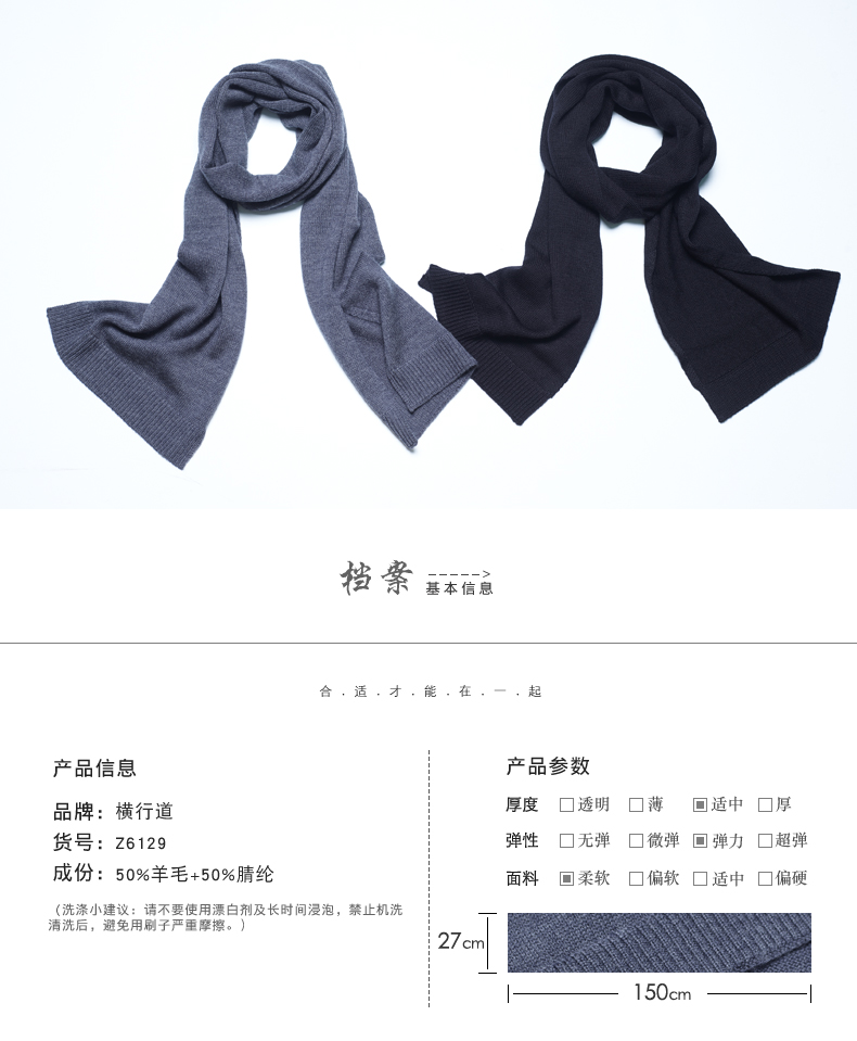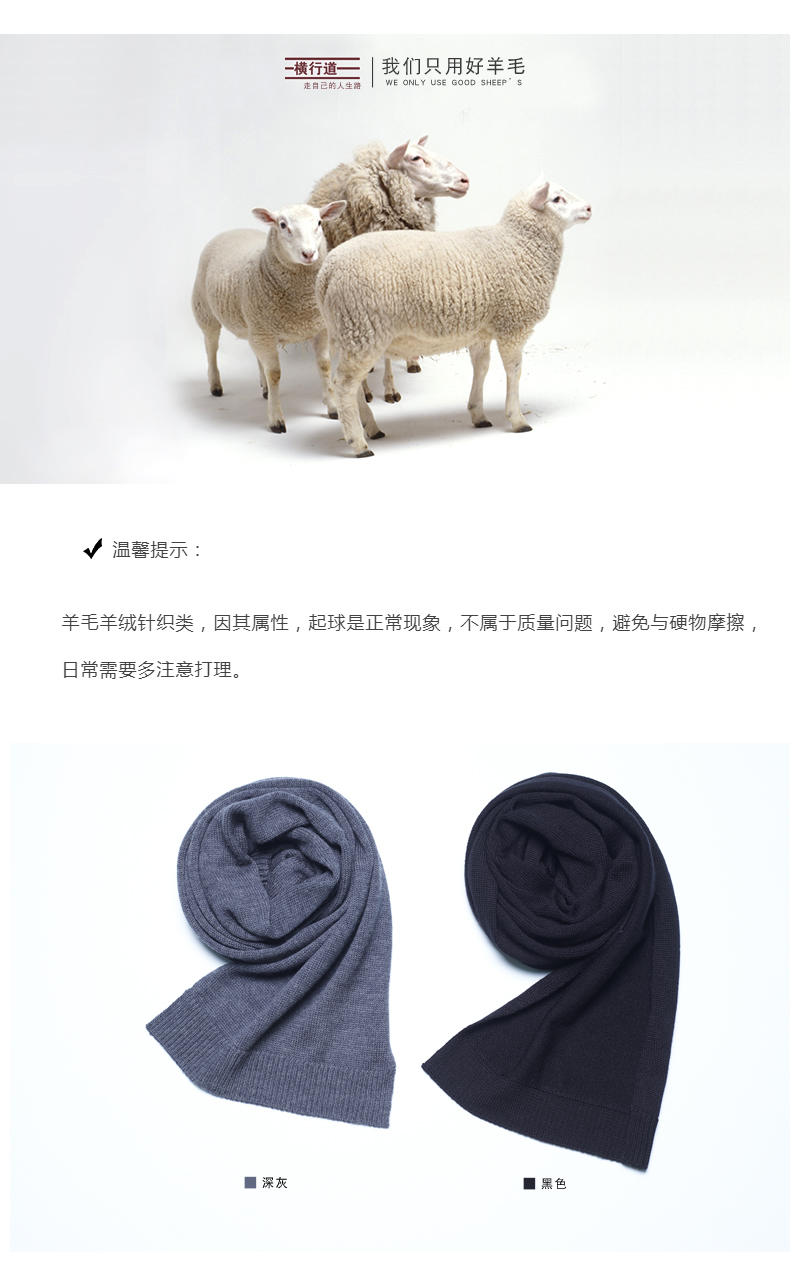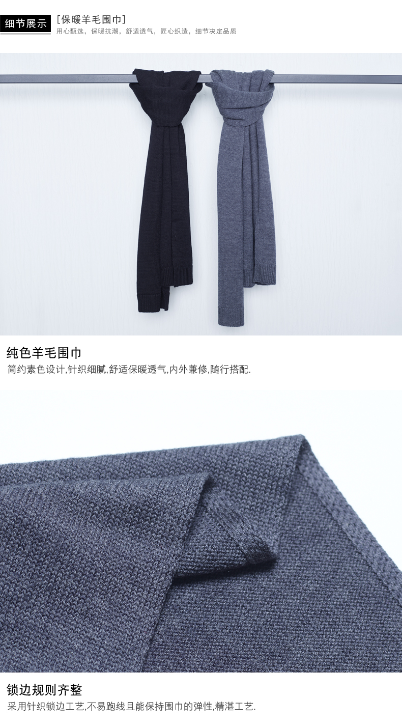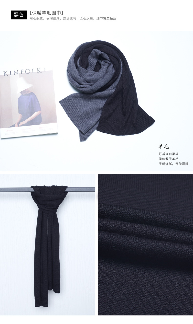 2019春季新款含羊毛女士圍巾黑色冬季韓版簡約保暖針織毛線圍脖1入