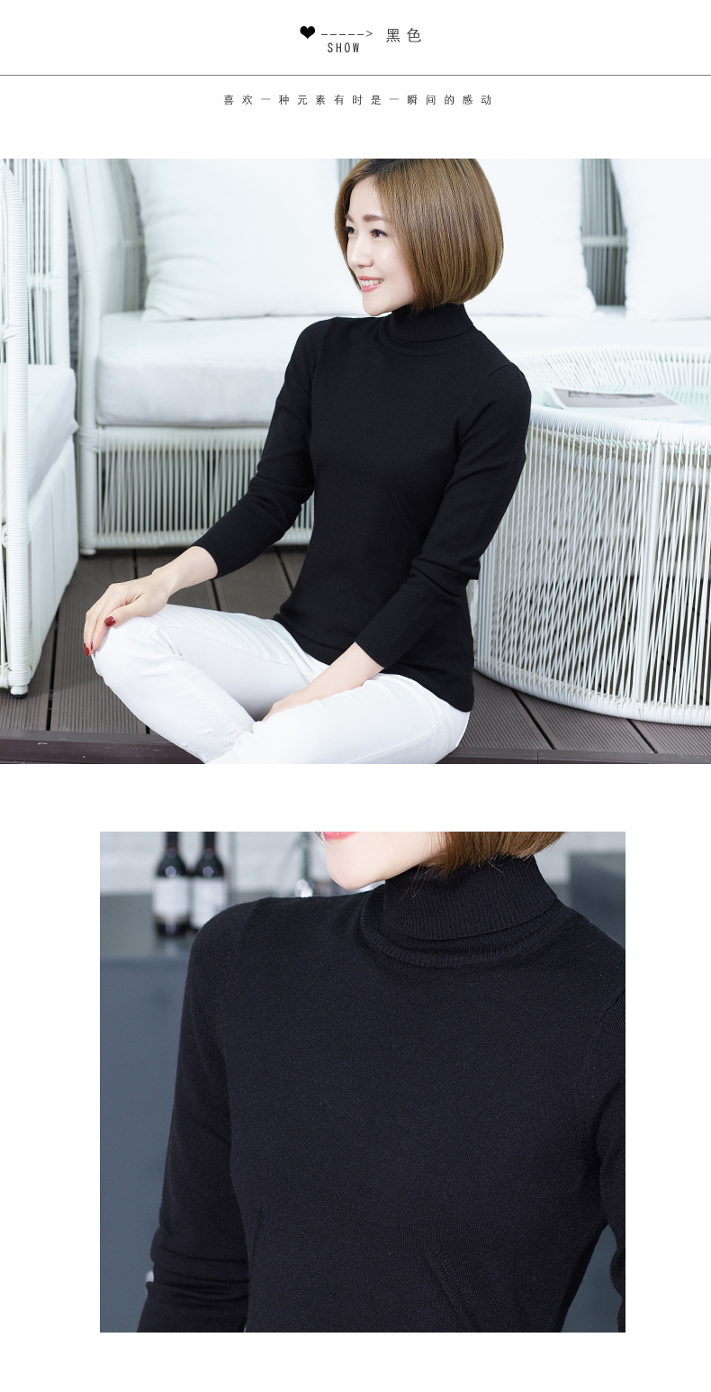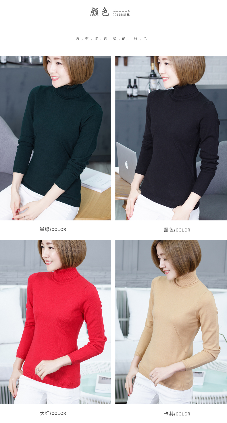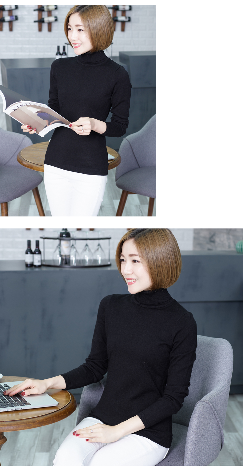 2019秋裝高領長袖羊毛衣針織衫純色套頭韓版女裝胖MM上衣服打底1入