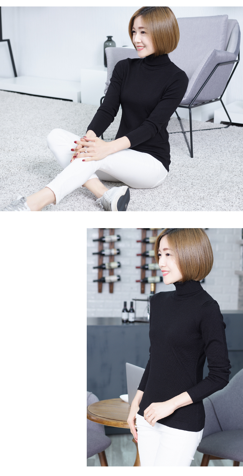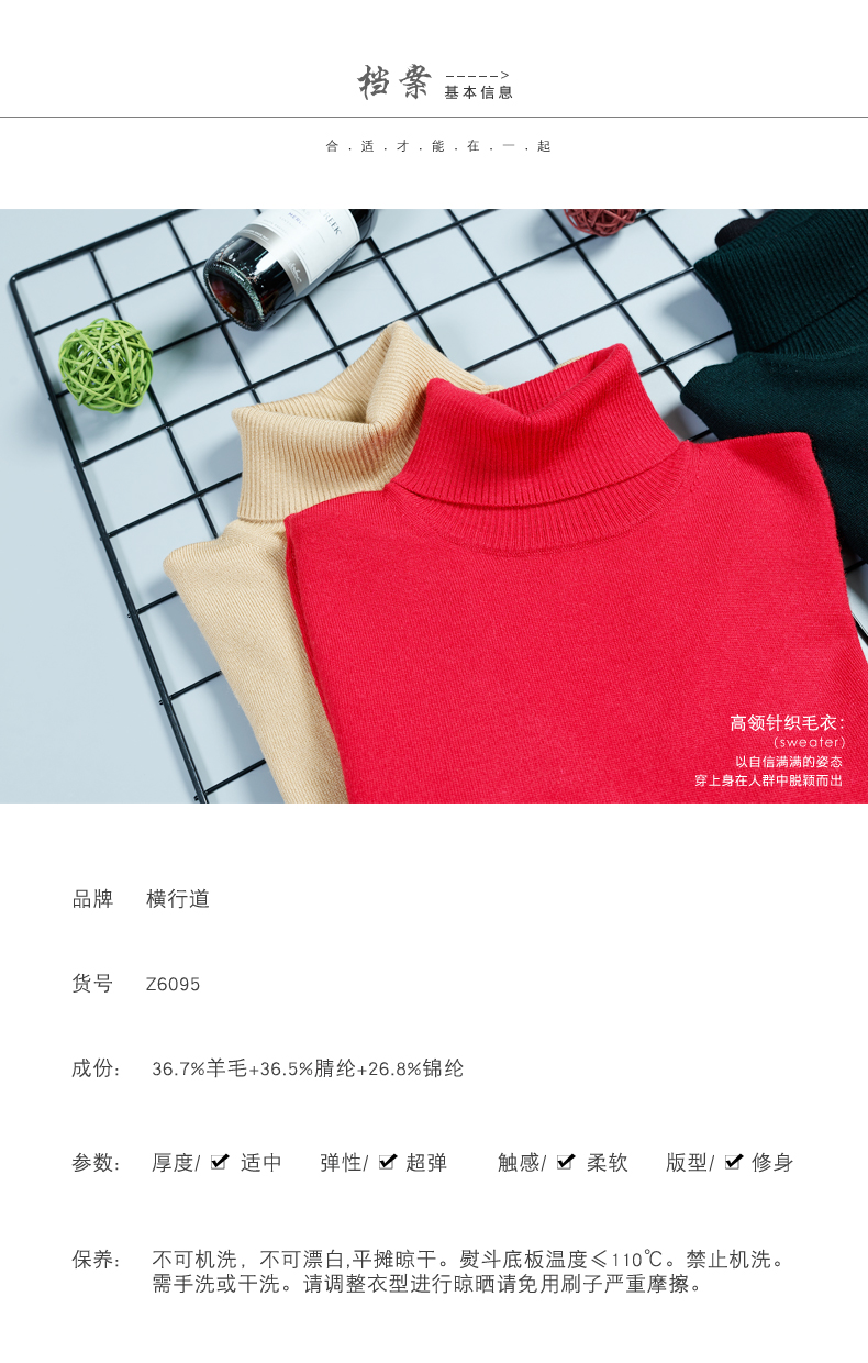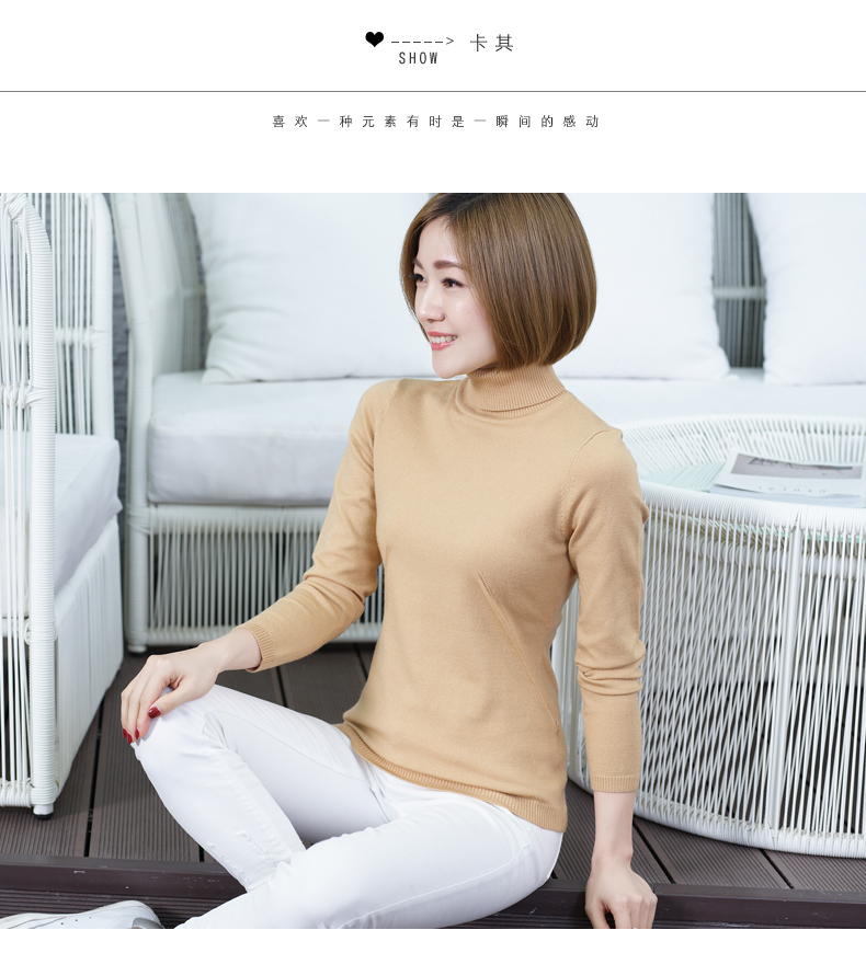 2019秋裝高領長袖羊毛衣針織衫純色套頭韓版女裝胖MM上衣服打底1入