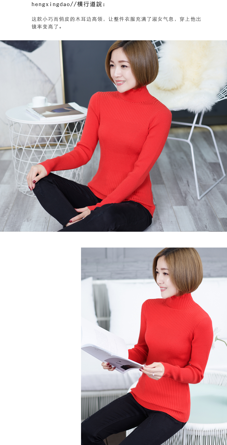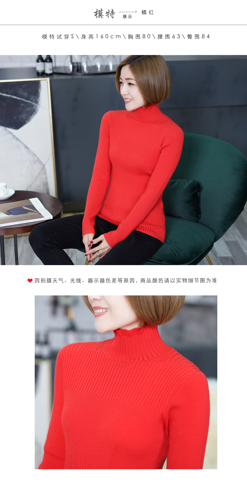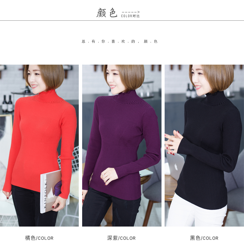 2019秋冬季加厚高領針織衫純色羊毛衣內搭上衣女裝長袖秋裝打底衫1入