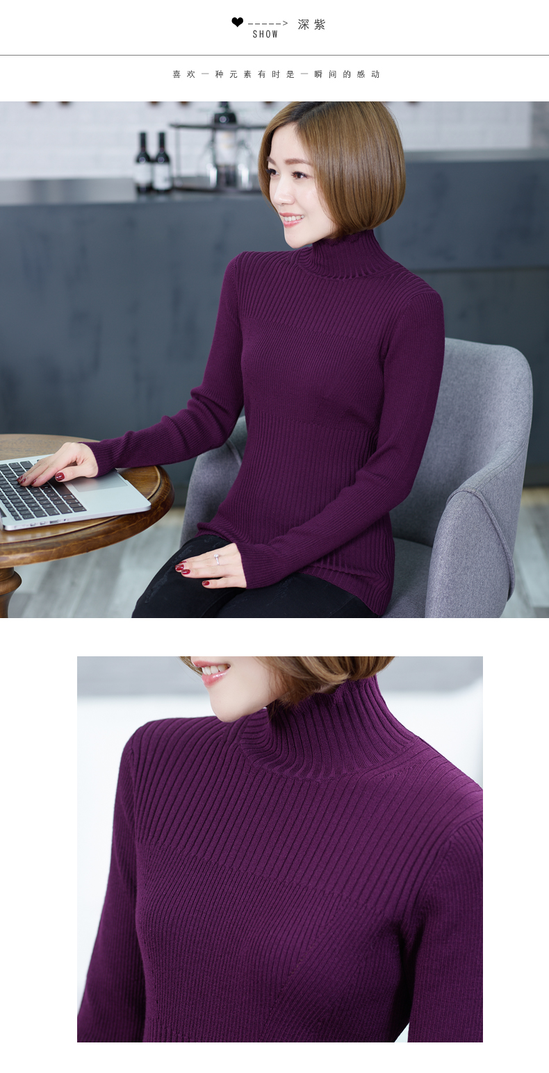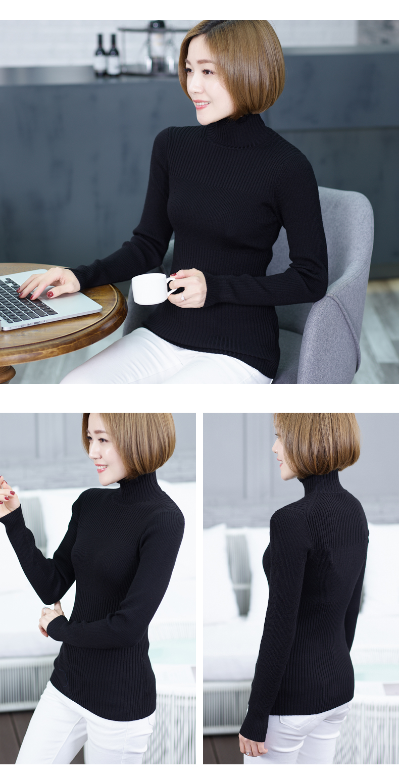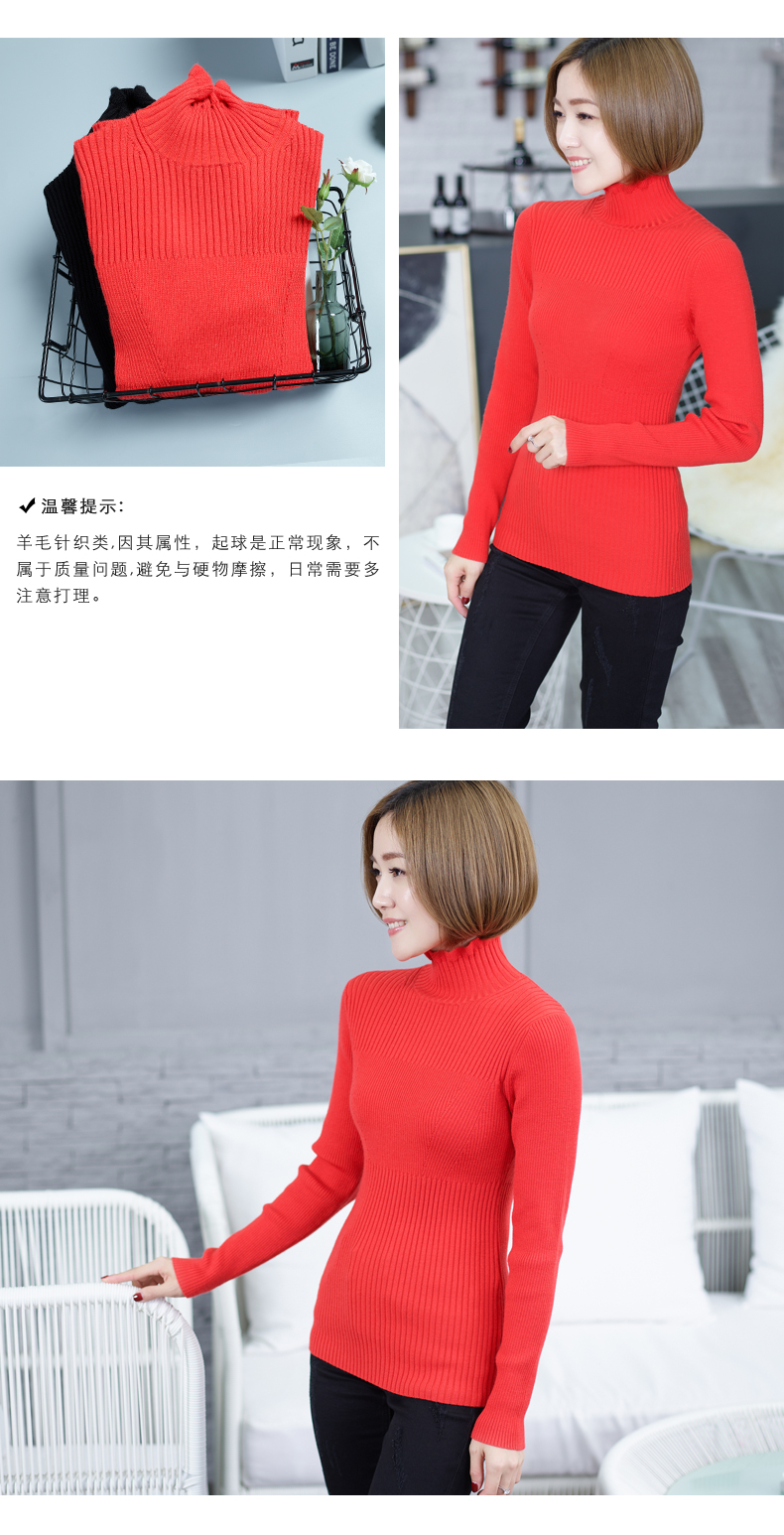 2019秋冬季加厚高領針織衫純色羊毛衣內搭上衣女裝長袖秋裝打底衫1入