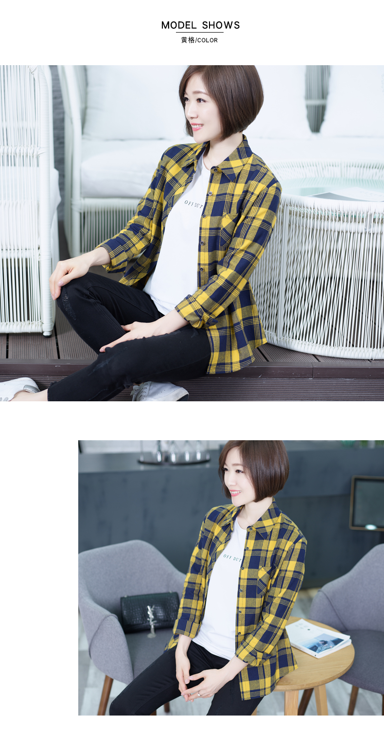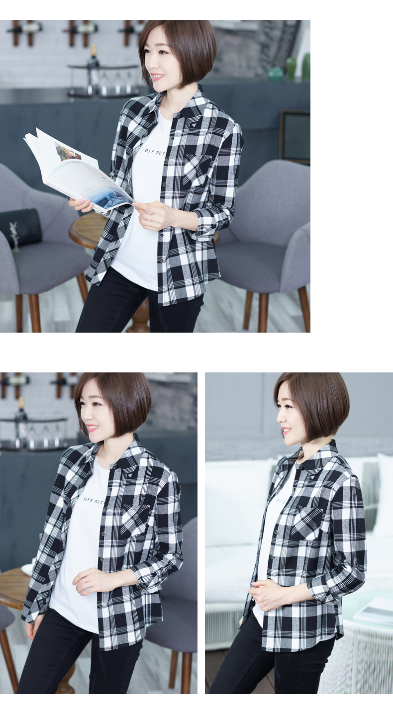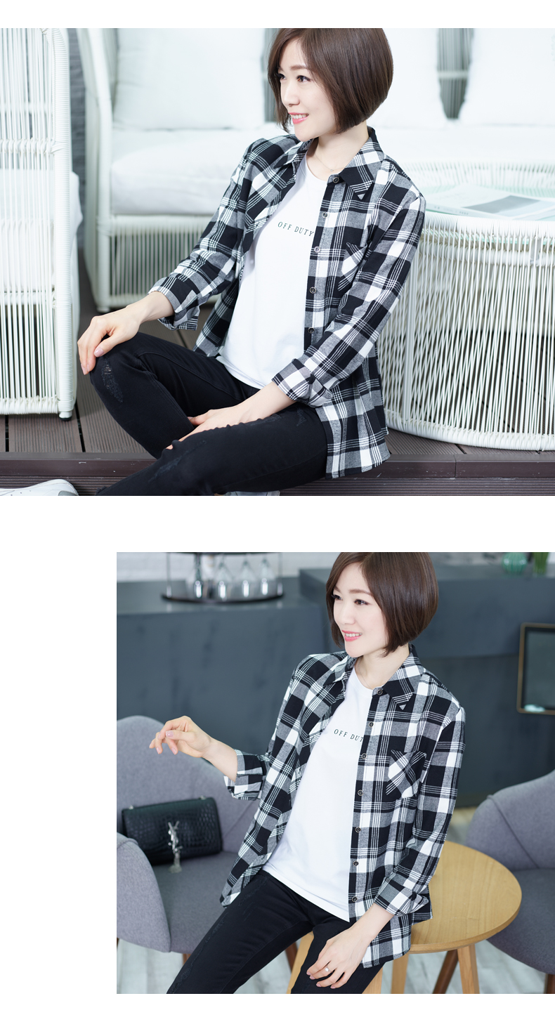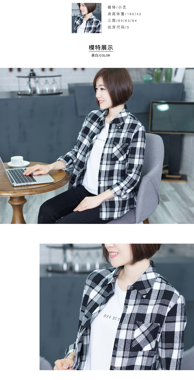 2019秋季女裝黑白格子襯衫休閑外套韓版秋裝寬松長袖襯衣外穿外套1入