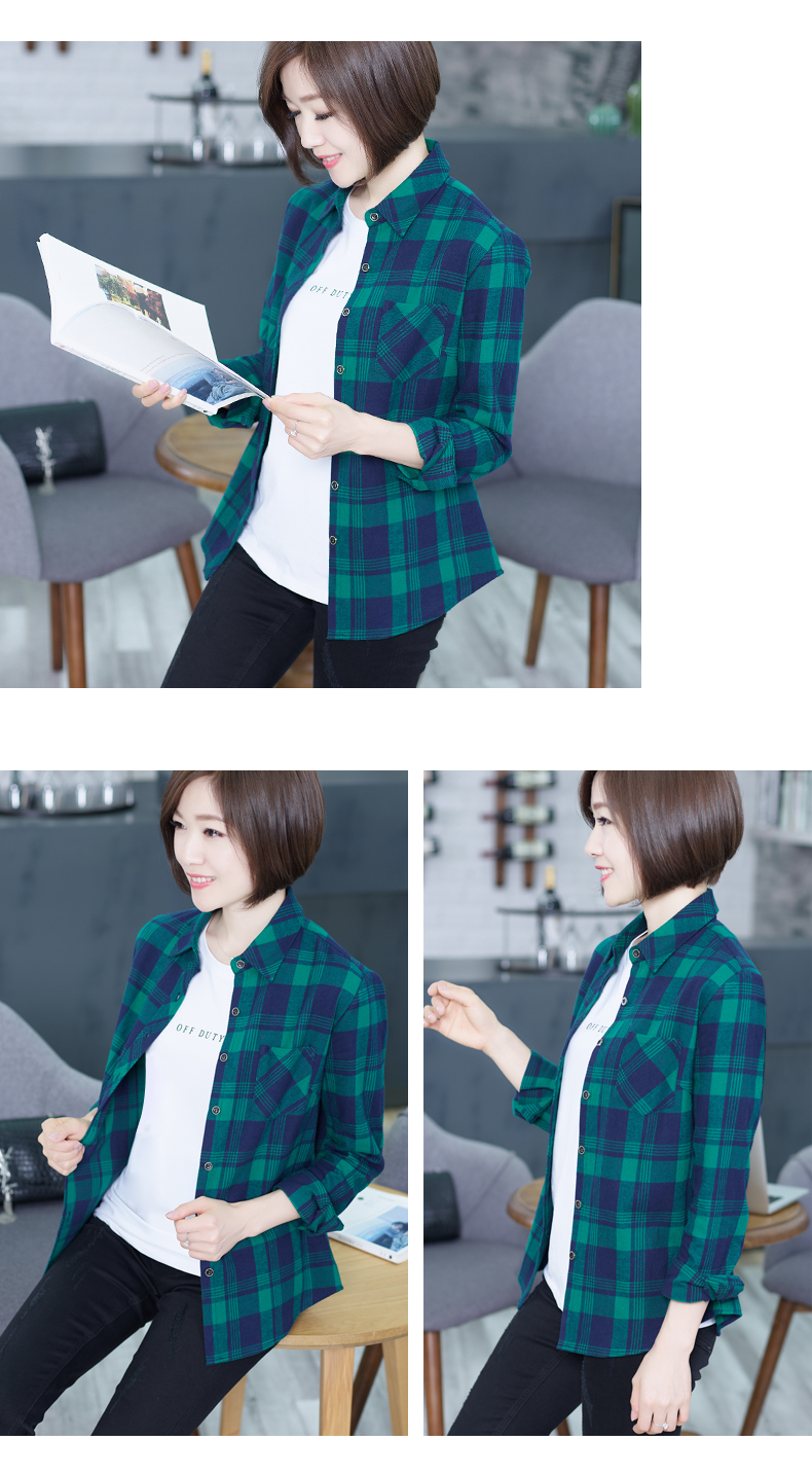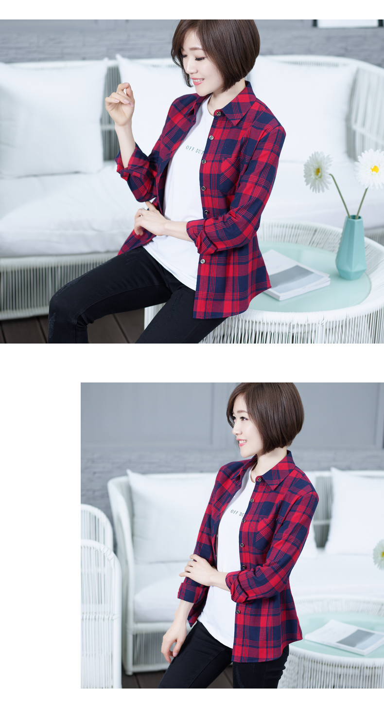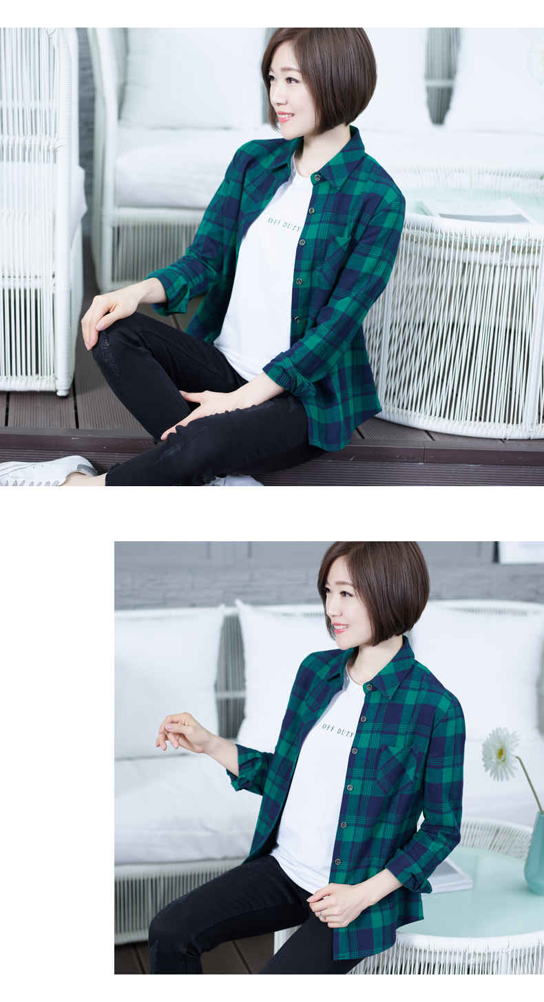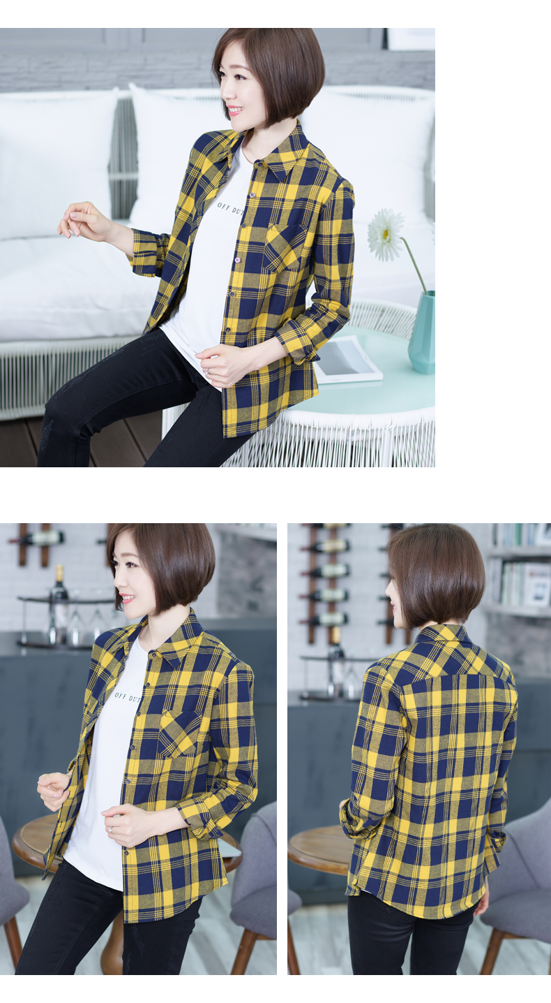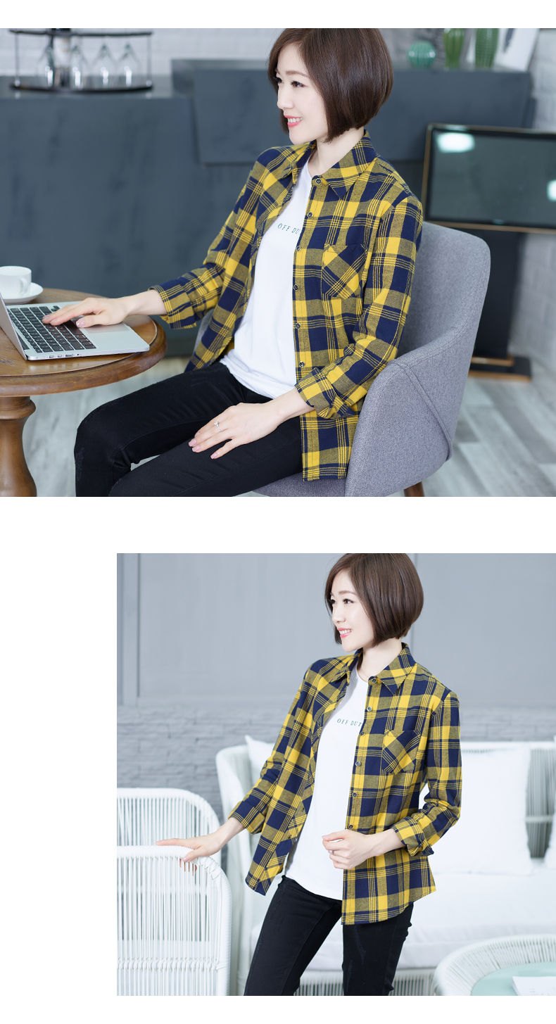 2019秋季女裝黑白格子襯衫休閑外套韓版秋裝寬松長袖襯衣外穿外套1入