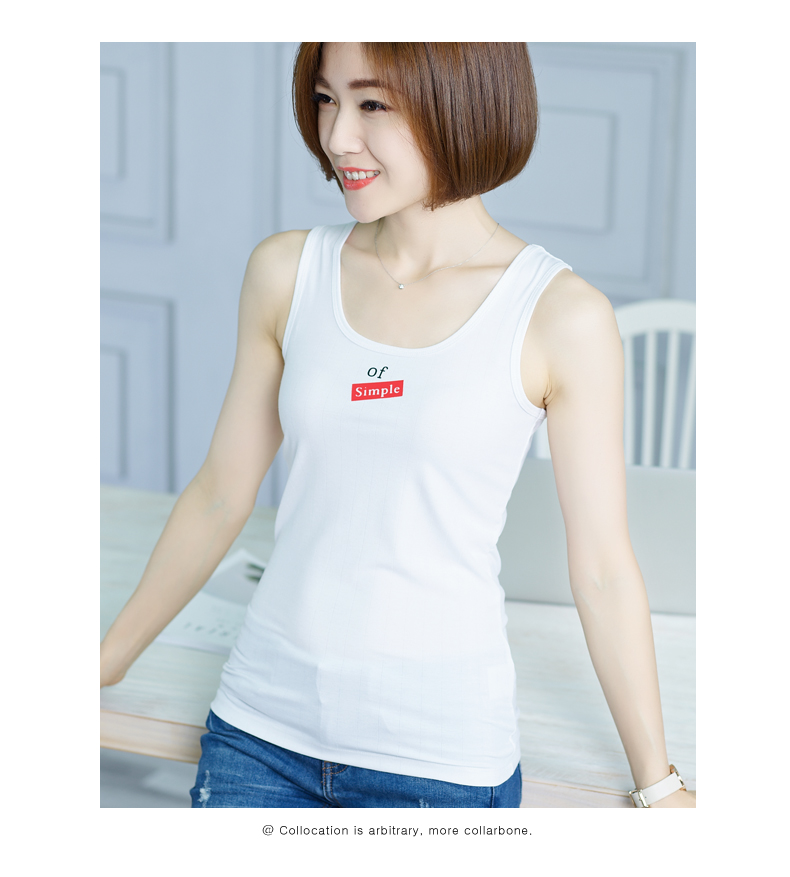 韓范字母印花圓領純色小背心女寬肩吊帶打底衫黑色外穿上衣服夏裝1入