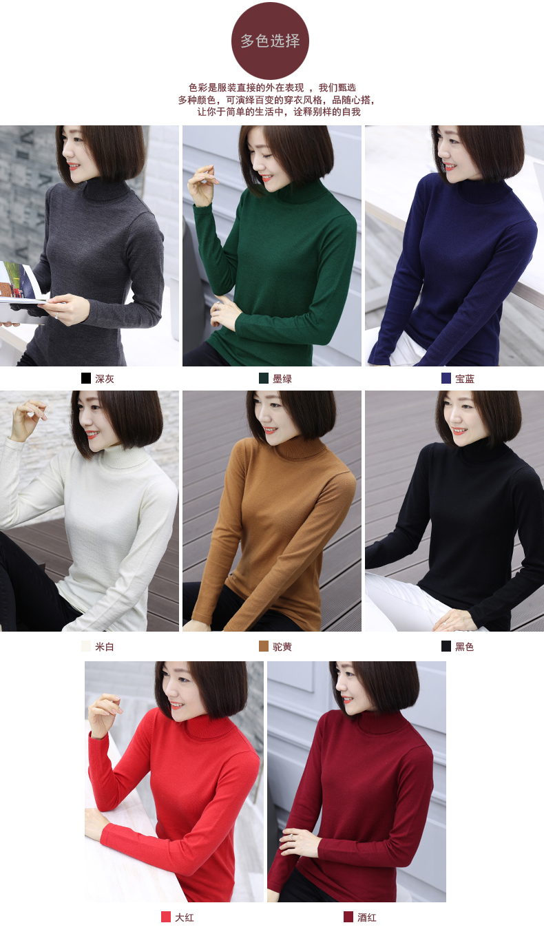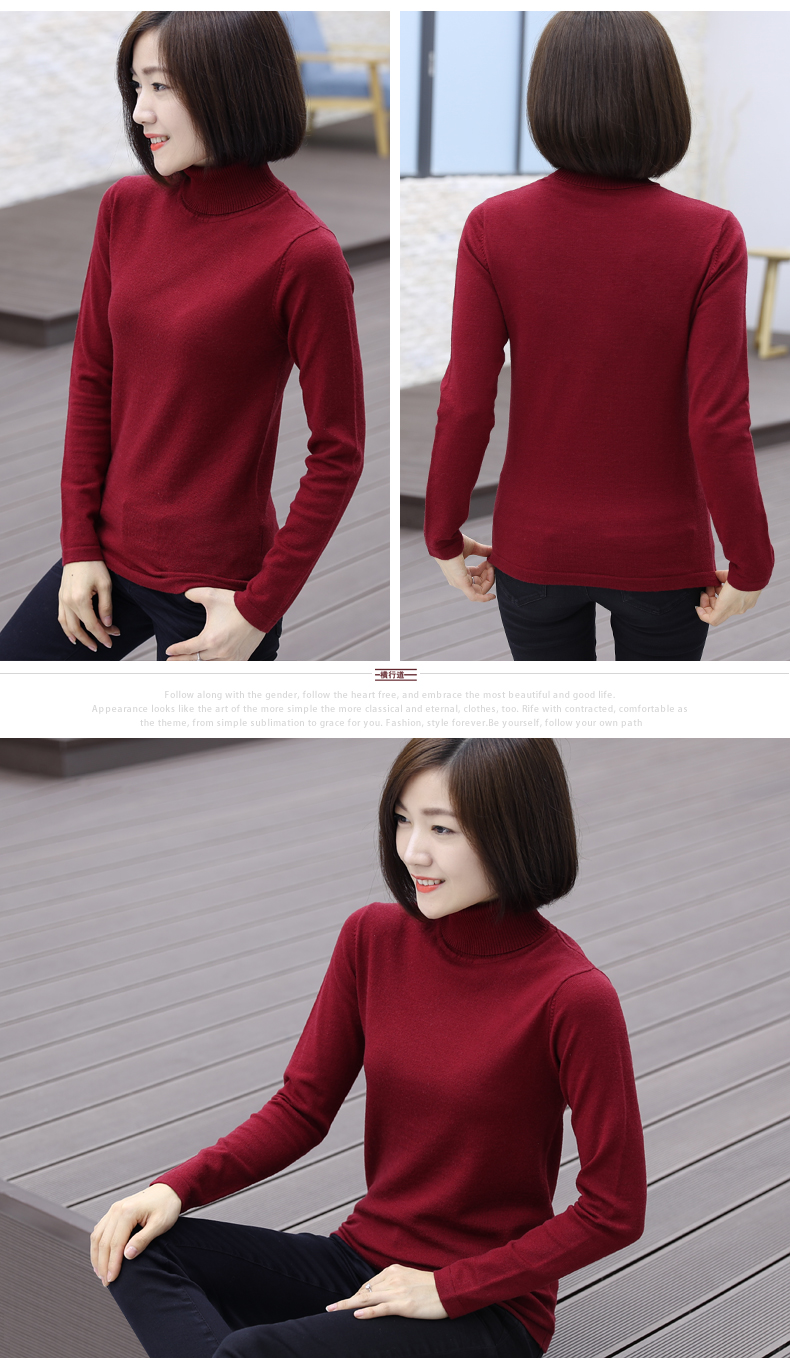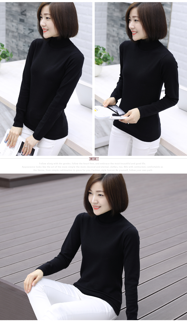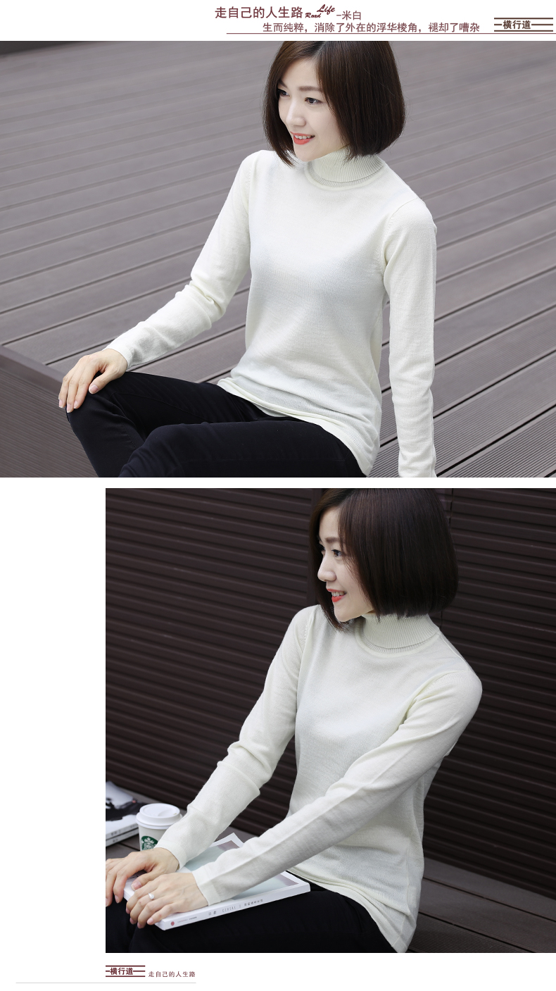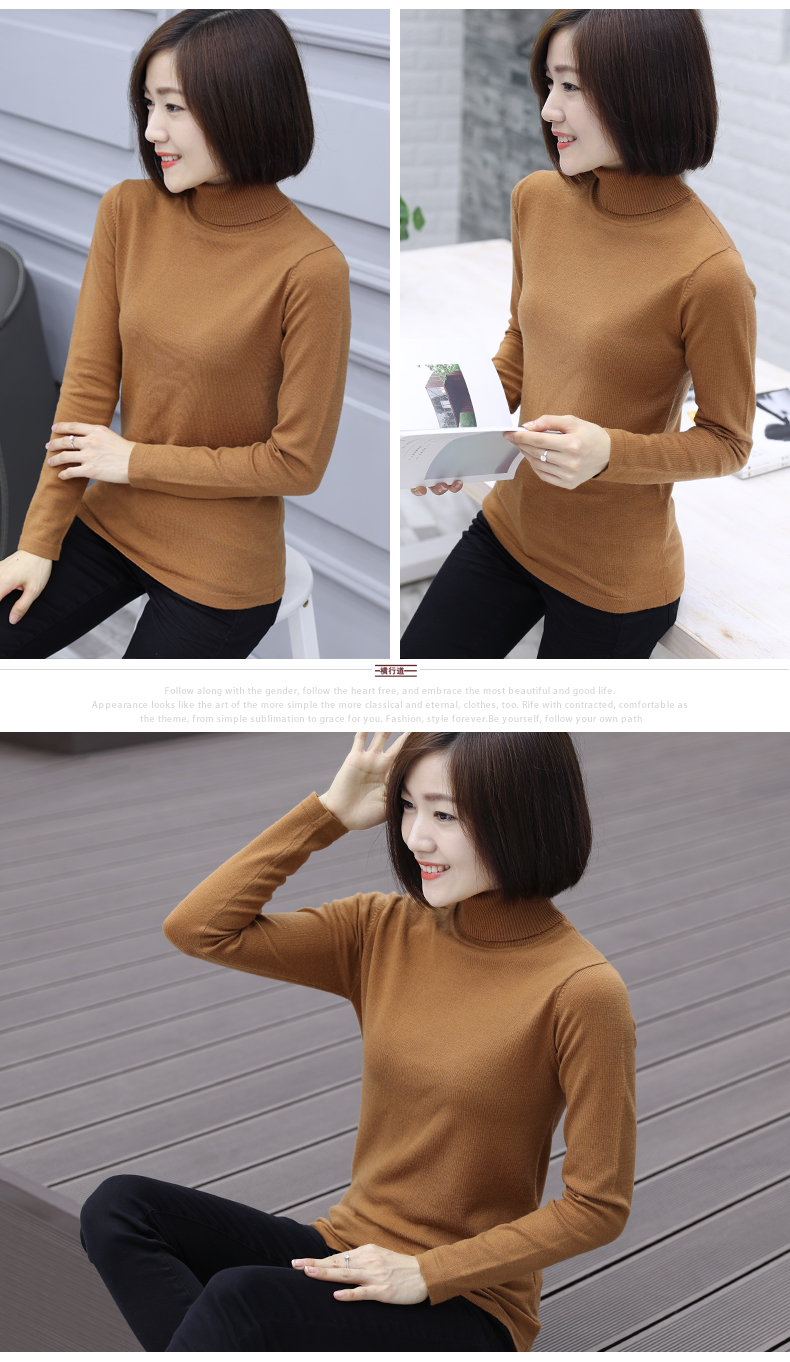 2019秋裝羊毛衫針織衫高領打底衫寬松套頭毛衣純色長袖上衣服女裝1入