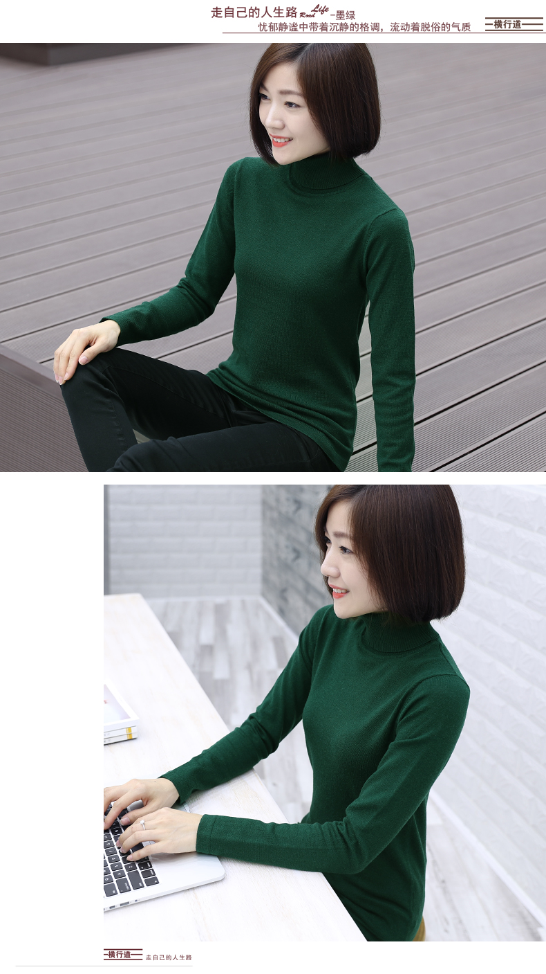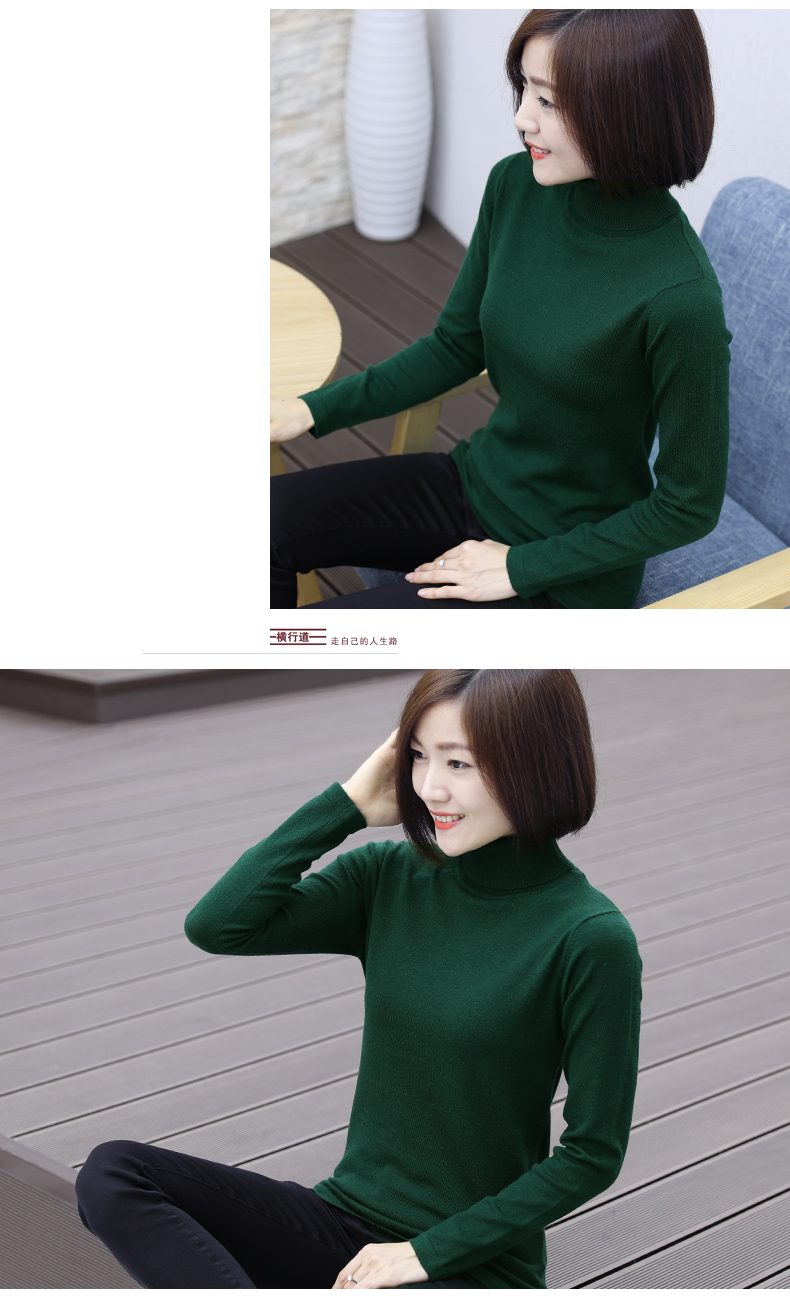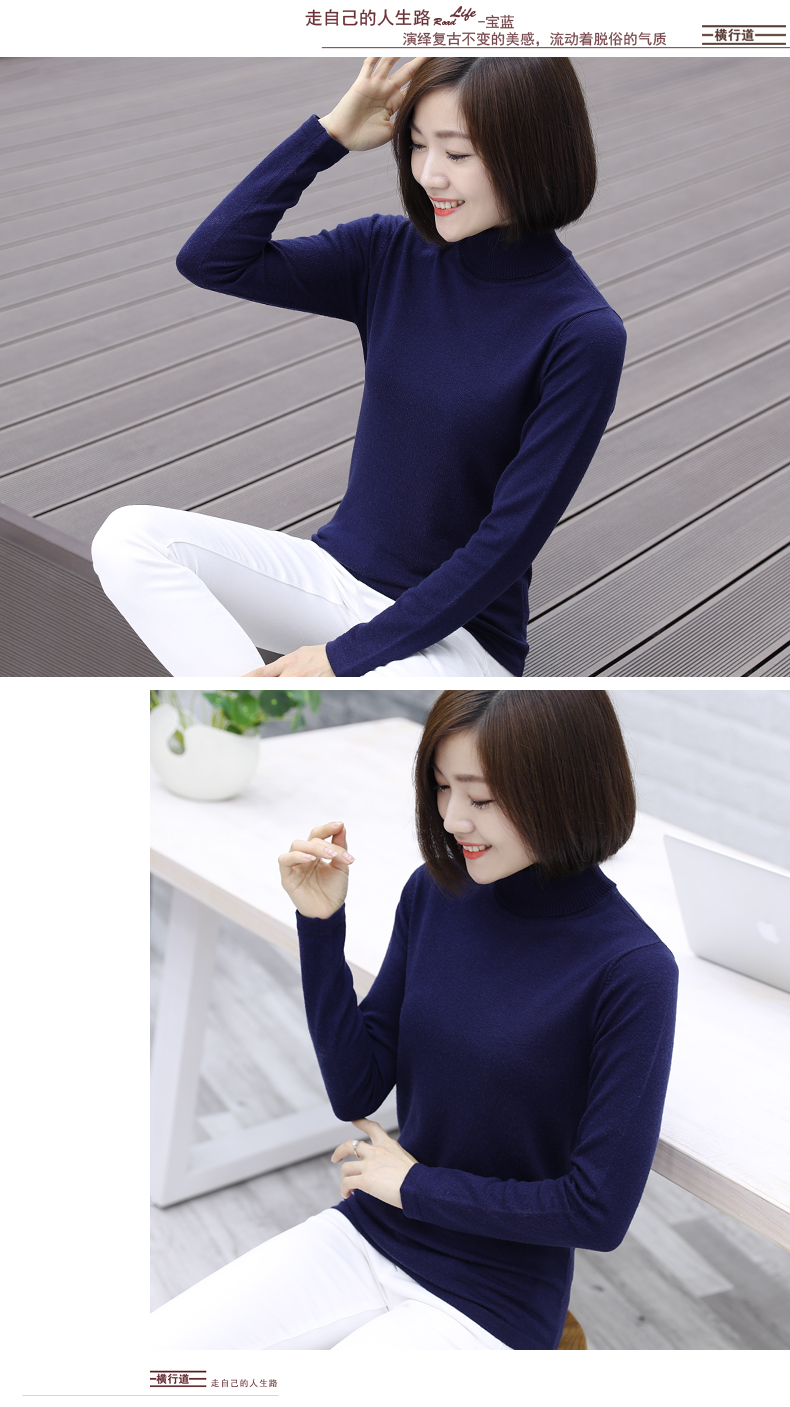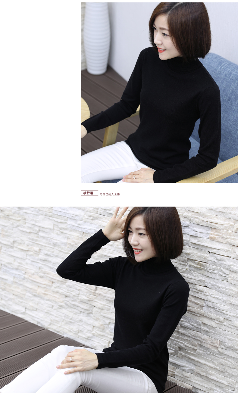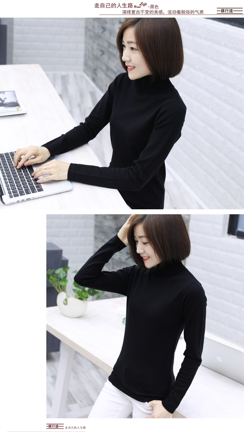 2019秋裝羊毛衫針織衫高領打底衫寬松套頭毛衣純色長袖上衣服女裝1入